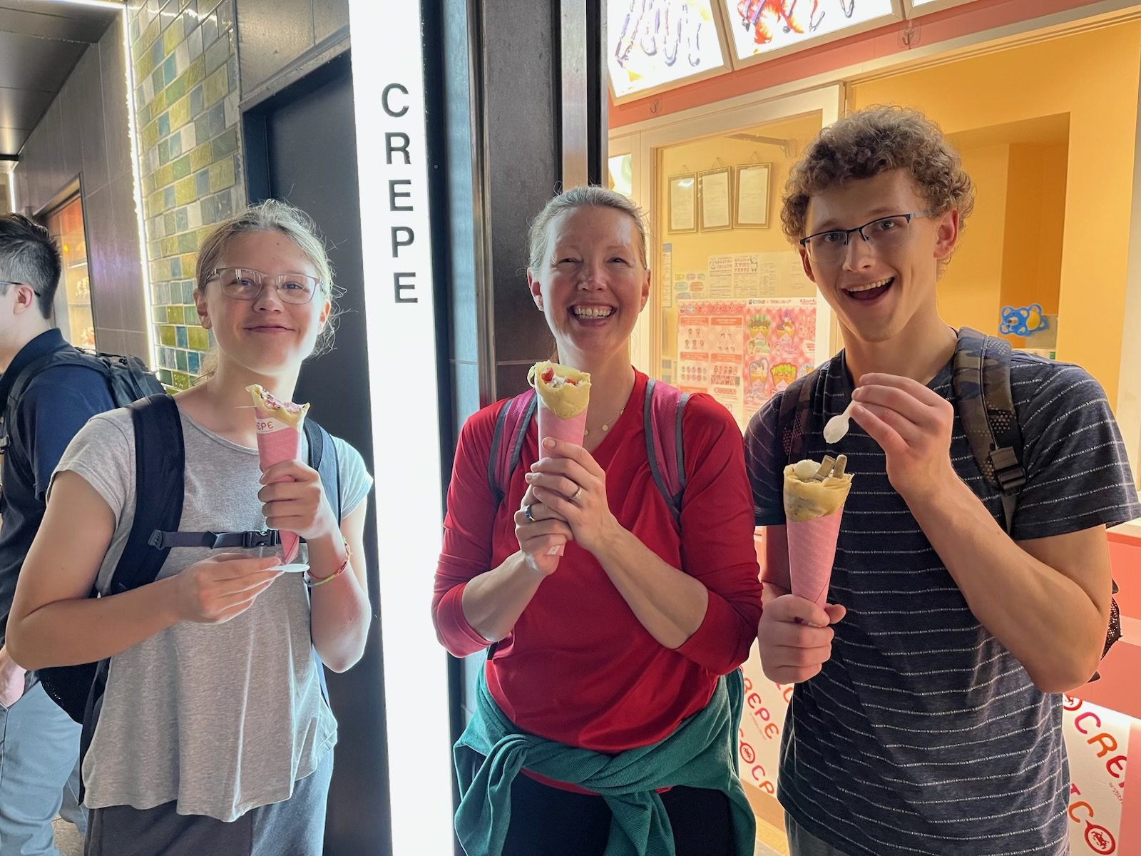 Having a crepe before wrapping up a long day of shopping