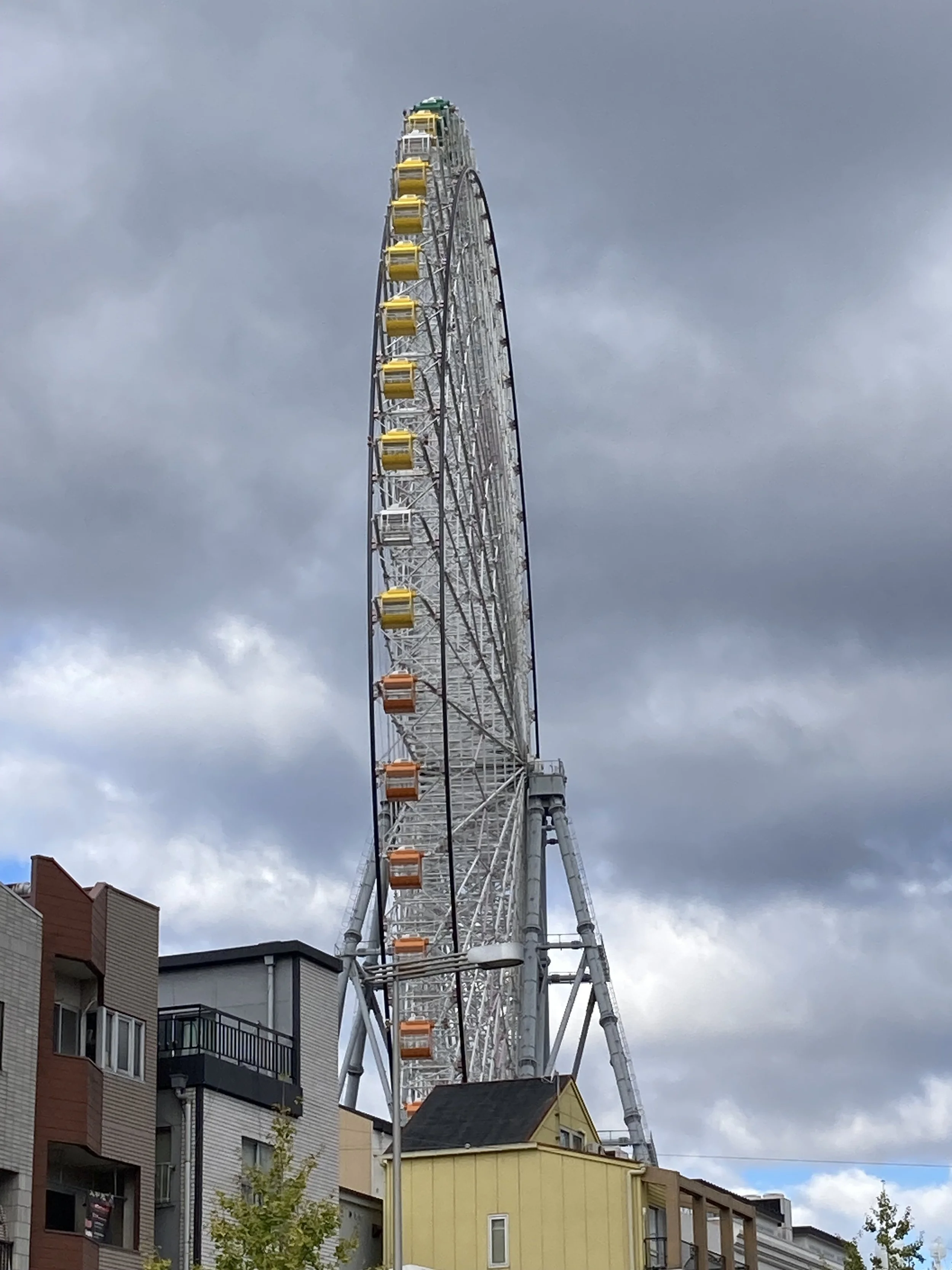 The only “advantage” of the glass bottom is that you have no obstructed view when looking out from one side. To Elena’s point, looking down you mostly see the rest of the ferris wheel and not much else except for a few parts of the ride. Oh well. In life, we live with the choices we make and Elena was willing to allow me to make this one.