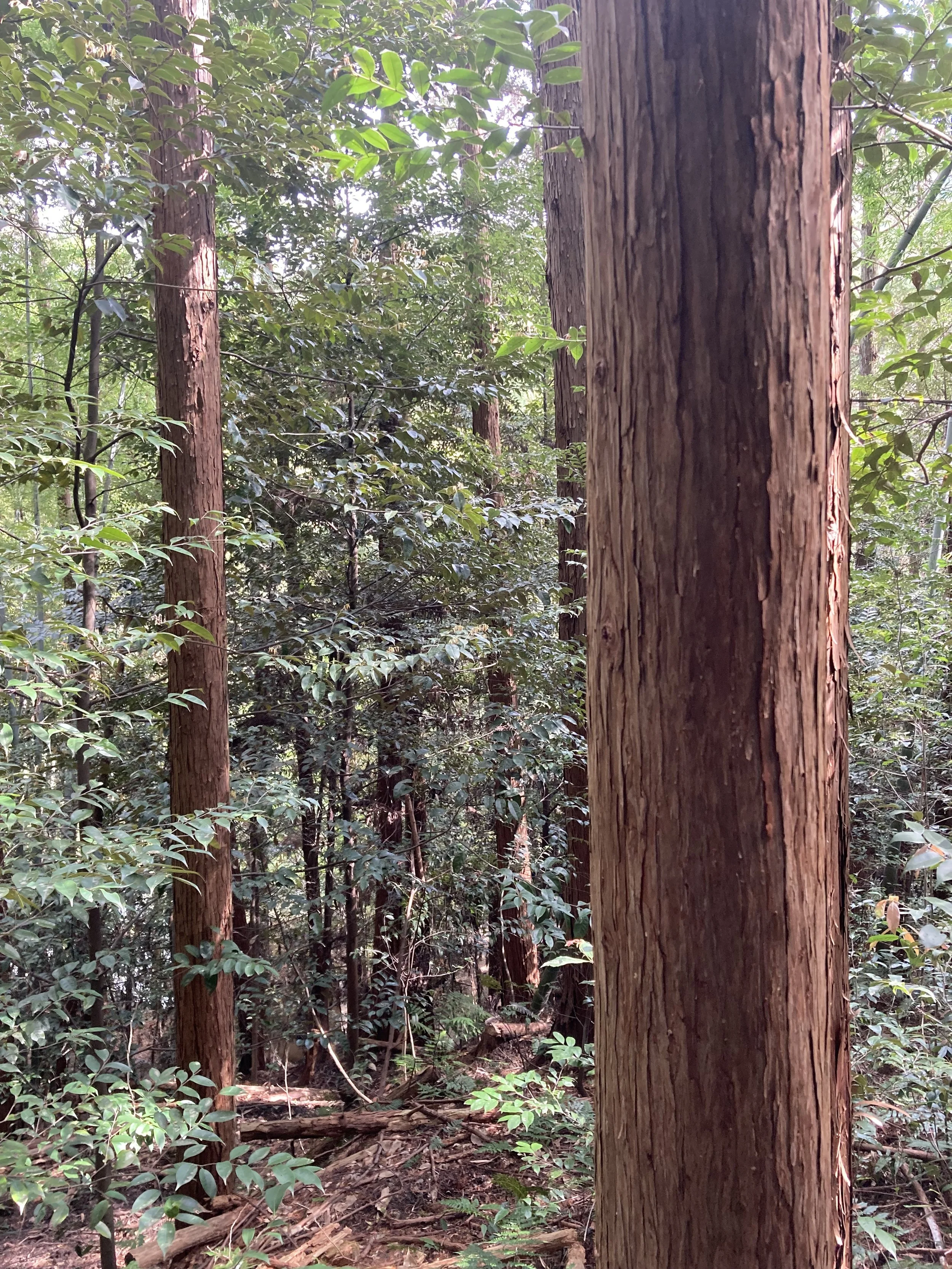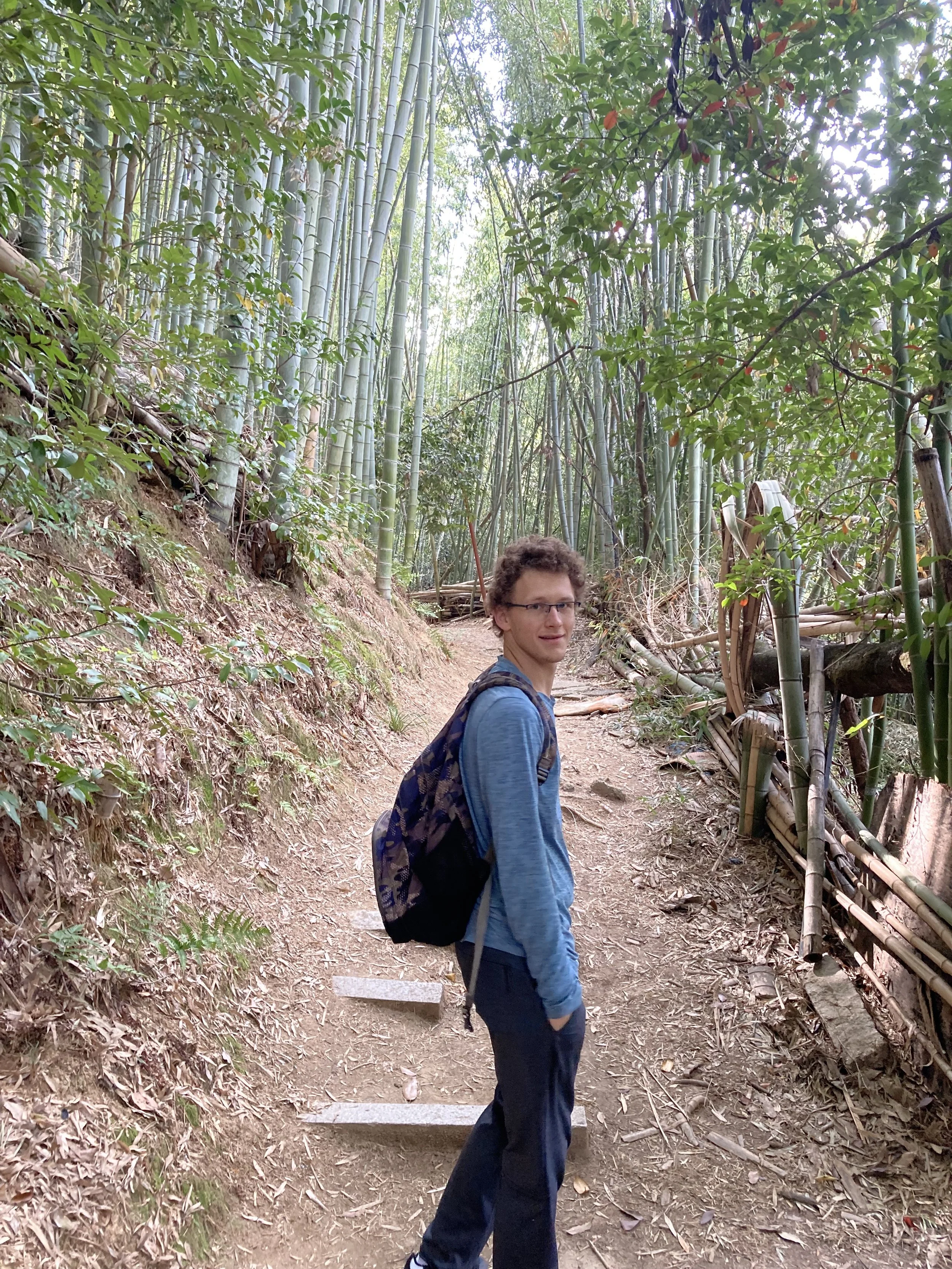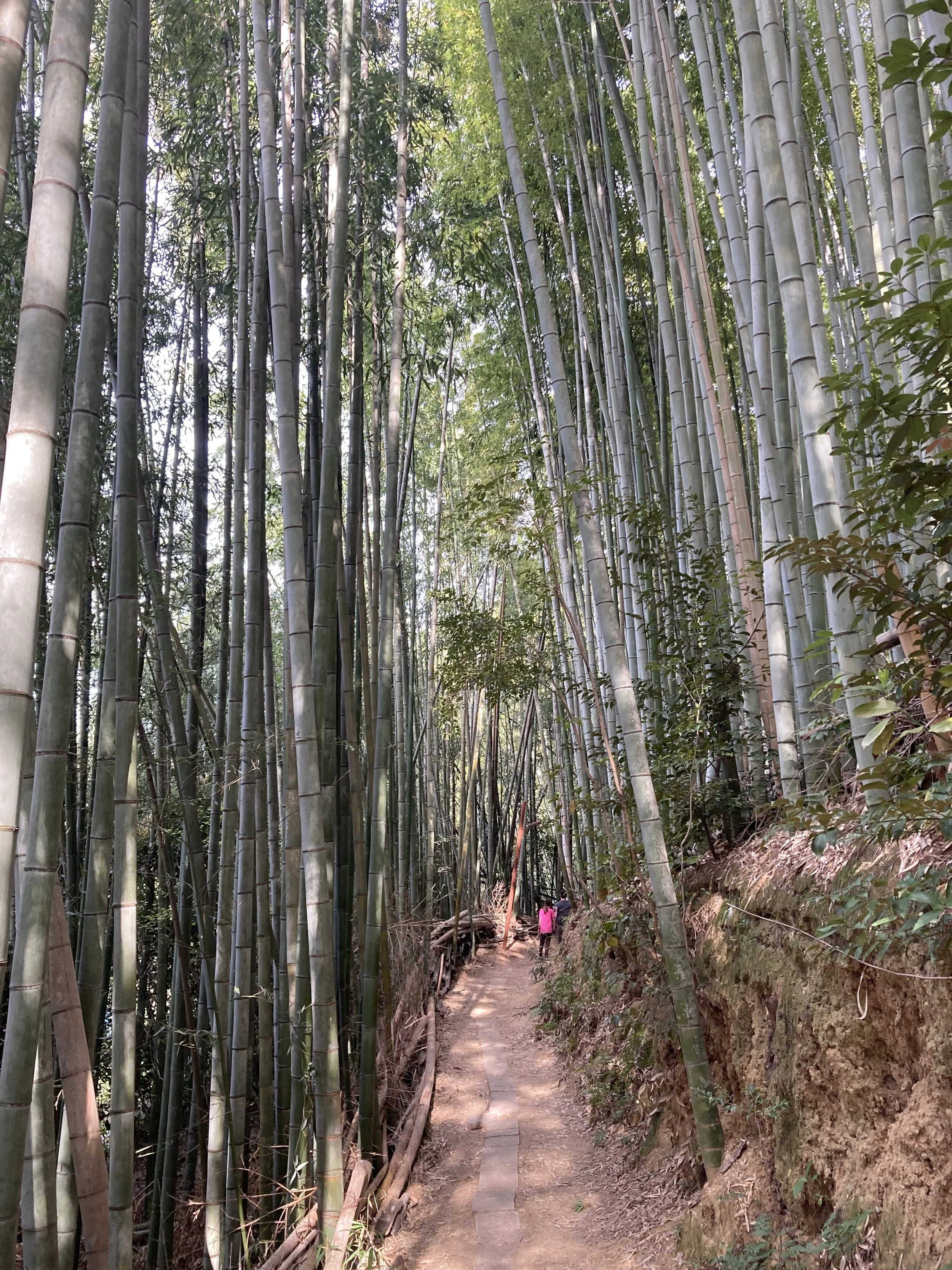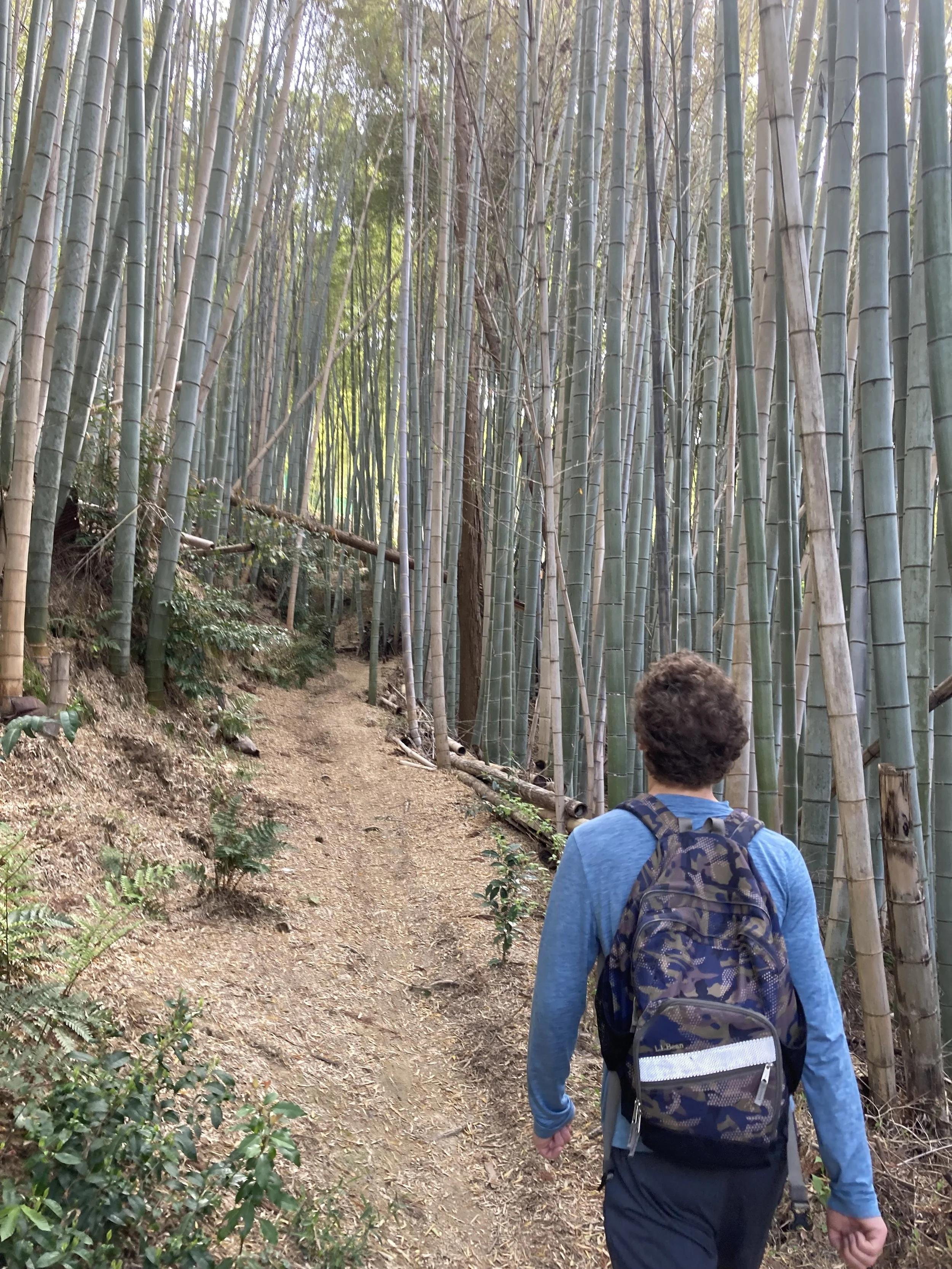Once it was clear that Violet was unable to continue, we circled back to meet up with Elena. However, we were so far off the beaten path that Will and I cut through a second forest to regroup with her. This second forest was more “traditional” in that it wasn’t full of bamboo. Instead, it look a lot more like the Redwood Forest from Northern California. Equally beautiful in its own right.