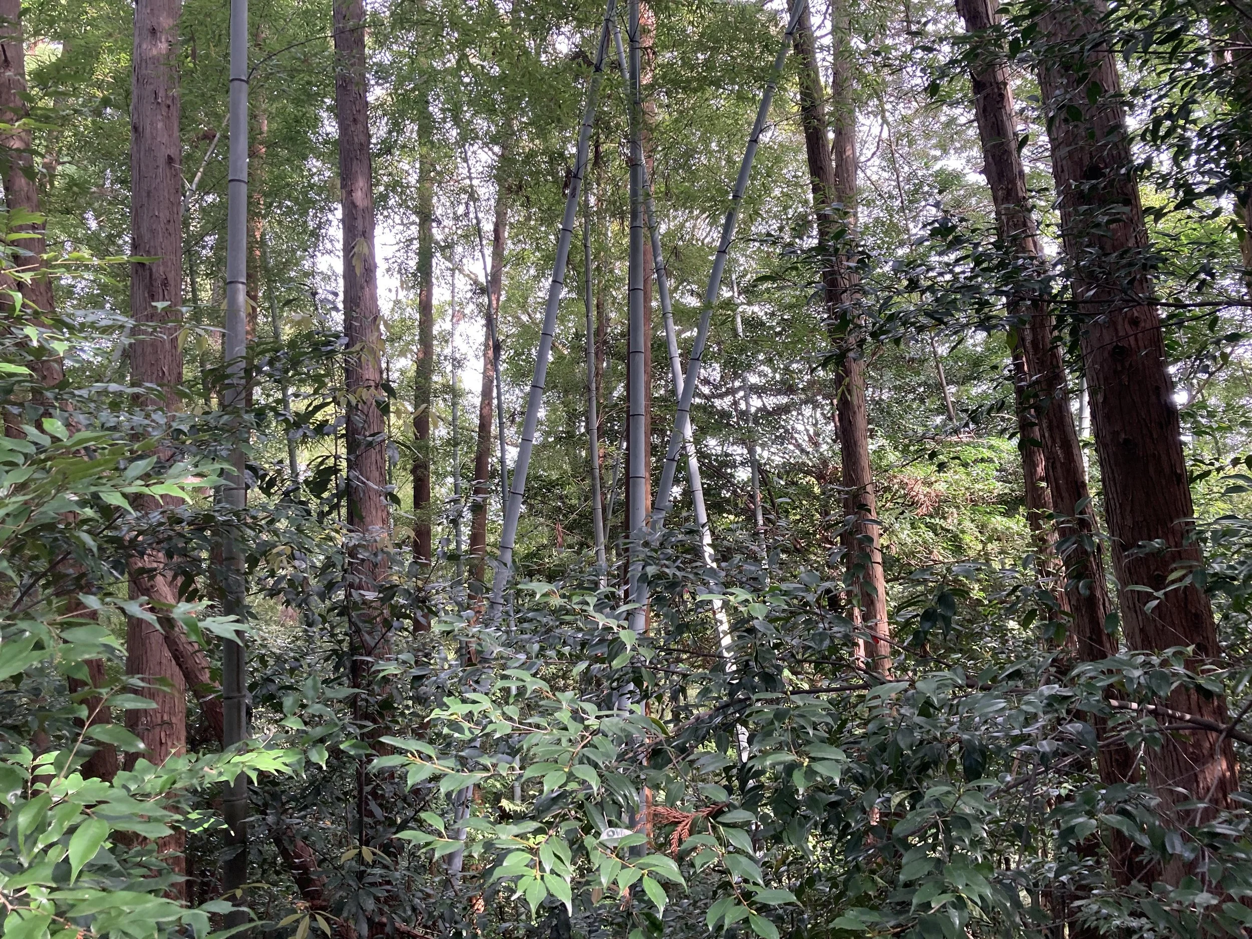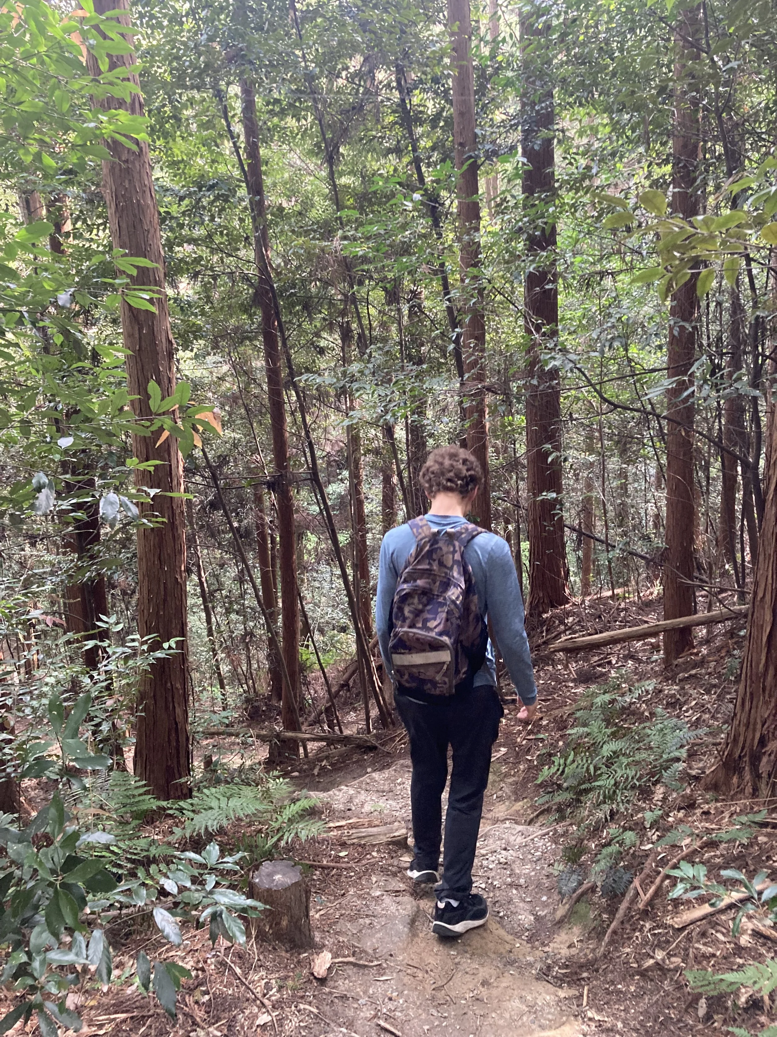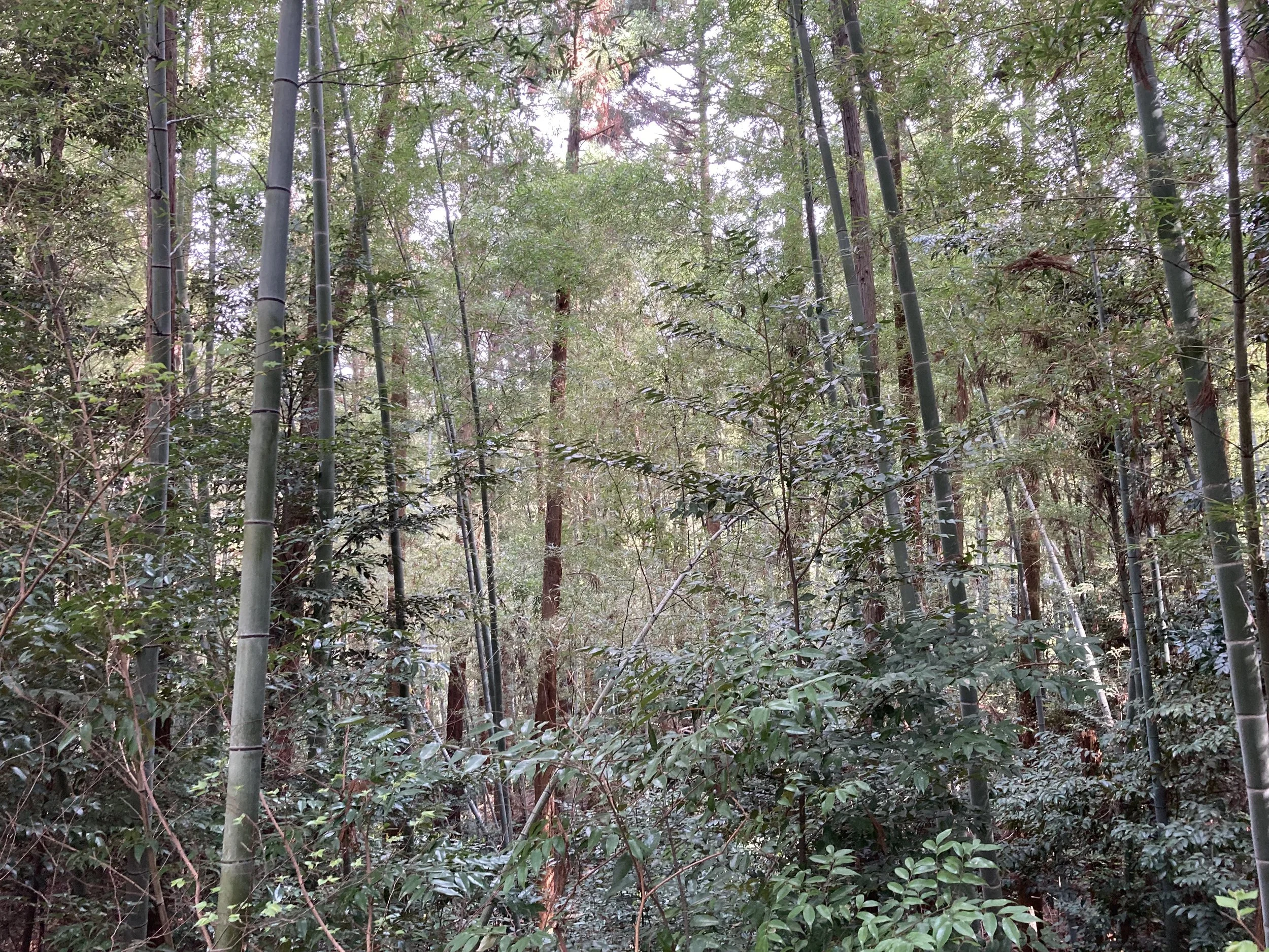 Once it was clear that Violet was unable to continue, we circled back to meet up with Elena. However, we were so far off the beaten path that Will and I cut through a second forest to regroup with her. This second forest was more “traditional” in that it wasn’t full of bamboo. Instead, it look a lot more like the Redwood Forest from Northern California. Equally beautiful in its own right.