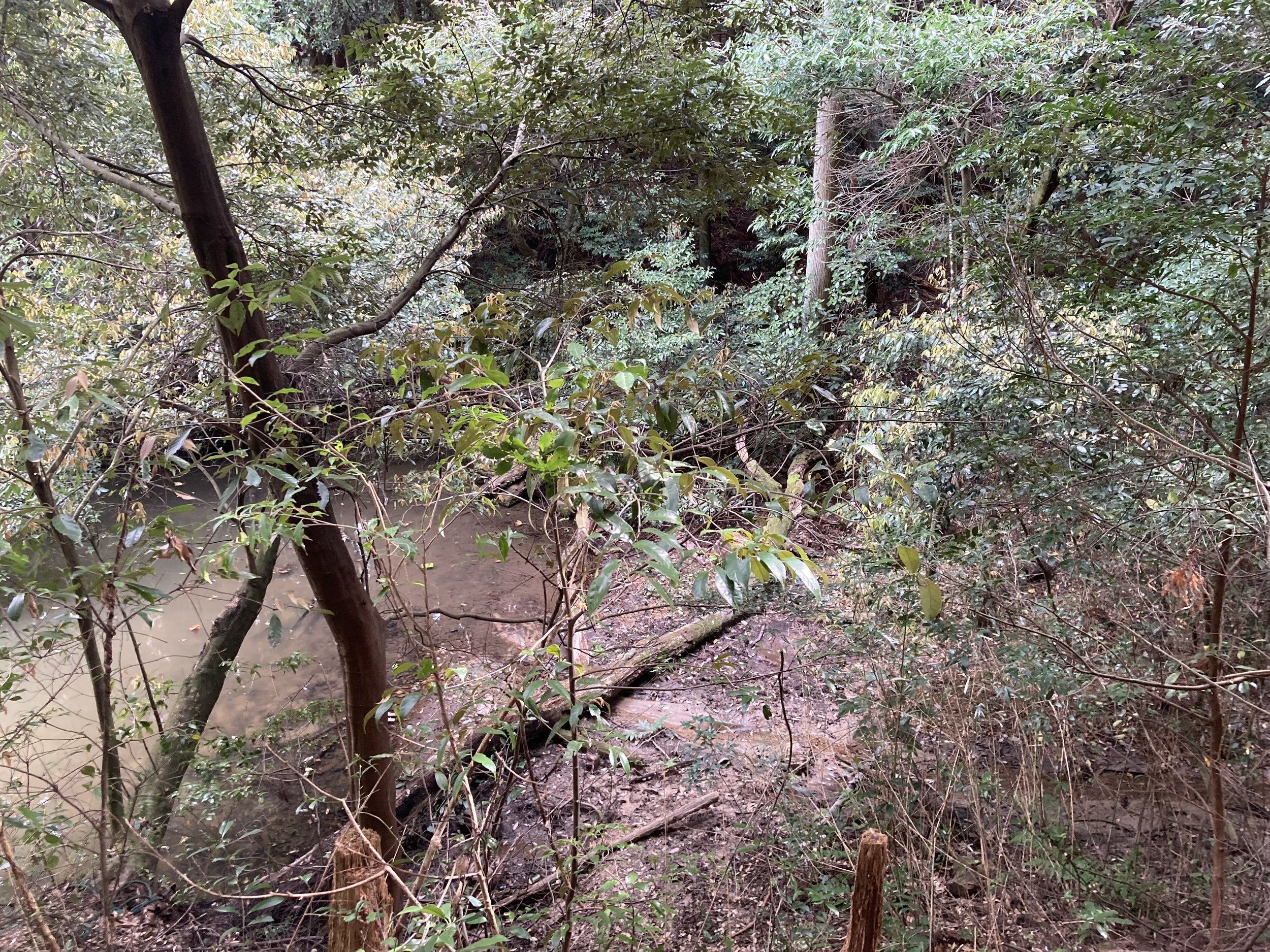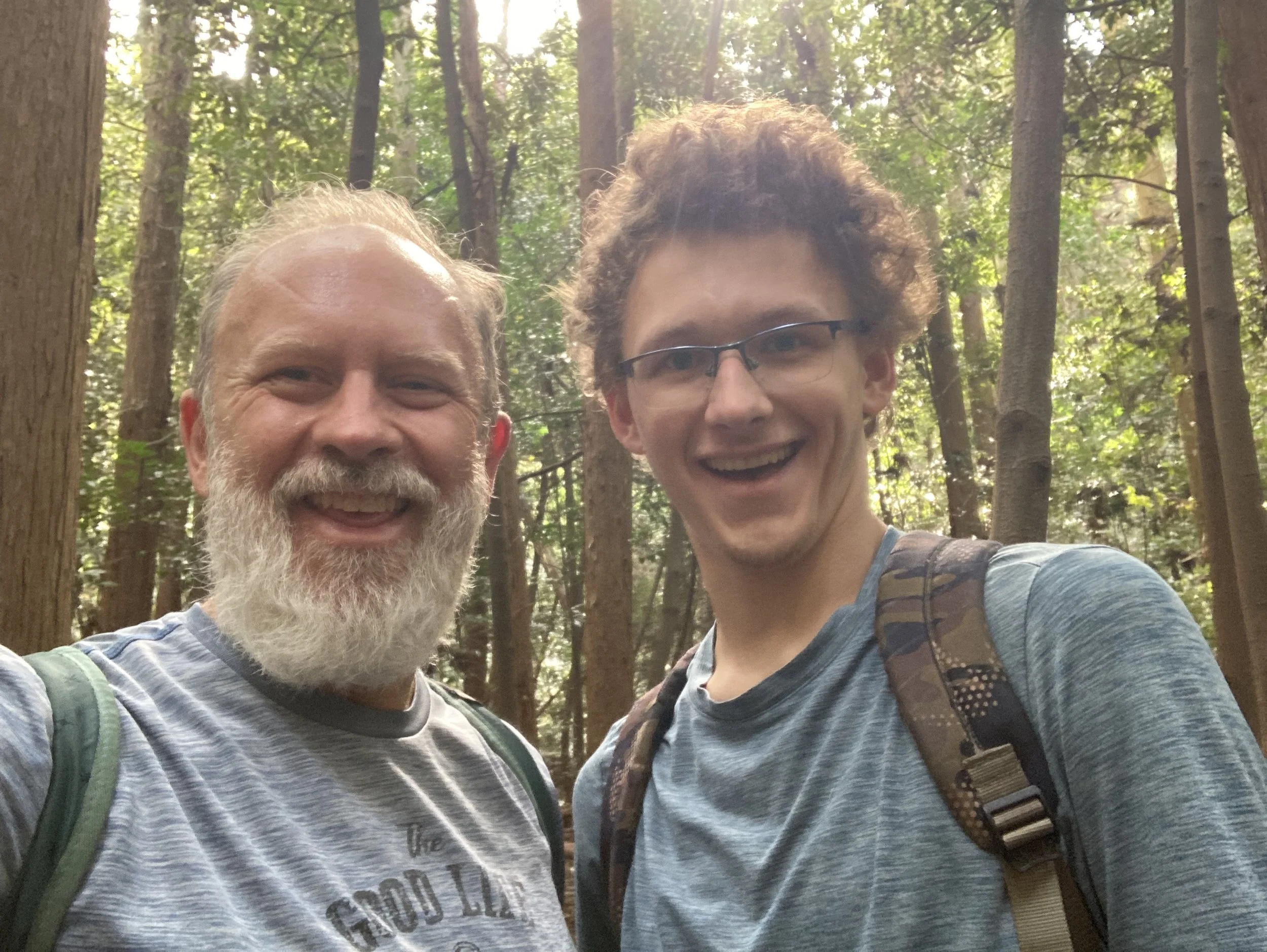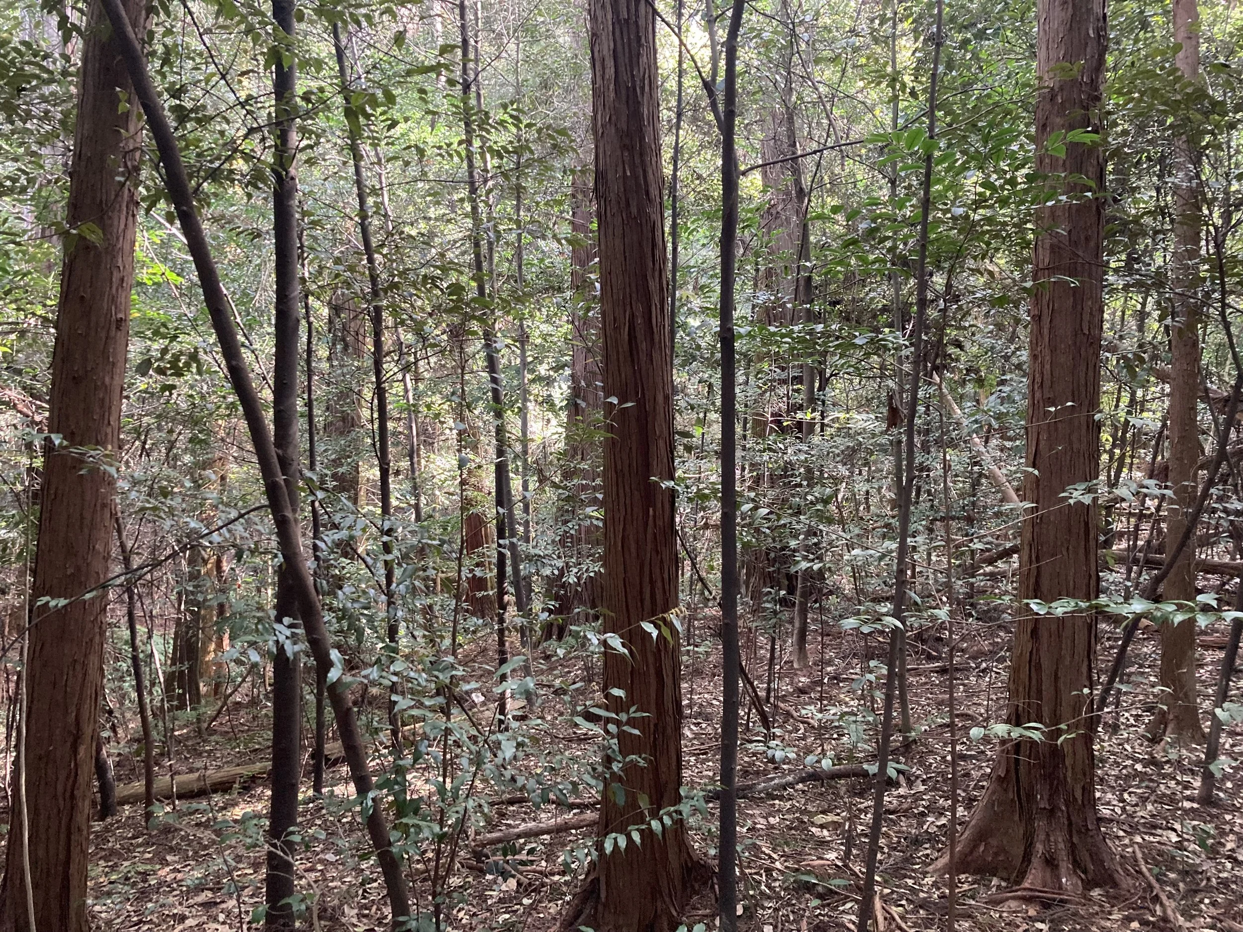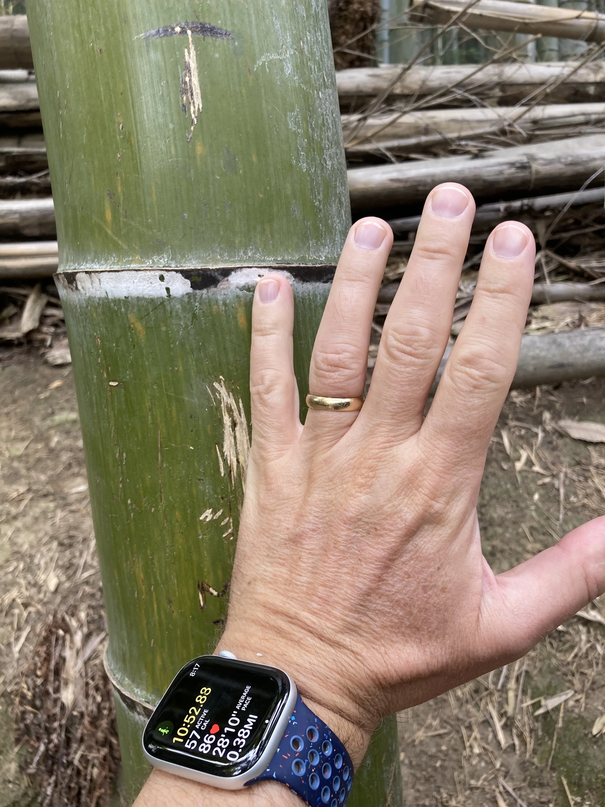 Once it was clear that Violet was unable to continue, we circled back to meet up with Elena. However, we were so far off the beaten path that Will and I cut through a second forest to regroup with her. This second forest was more “traditional” in that it wasn’t full of bamboo. Instead, it look a lot more like the Redwood Forest from Northern California. Equally beautiful in its own right.