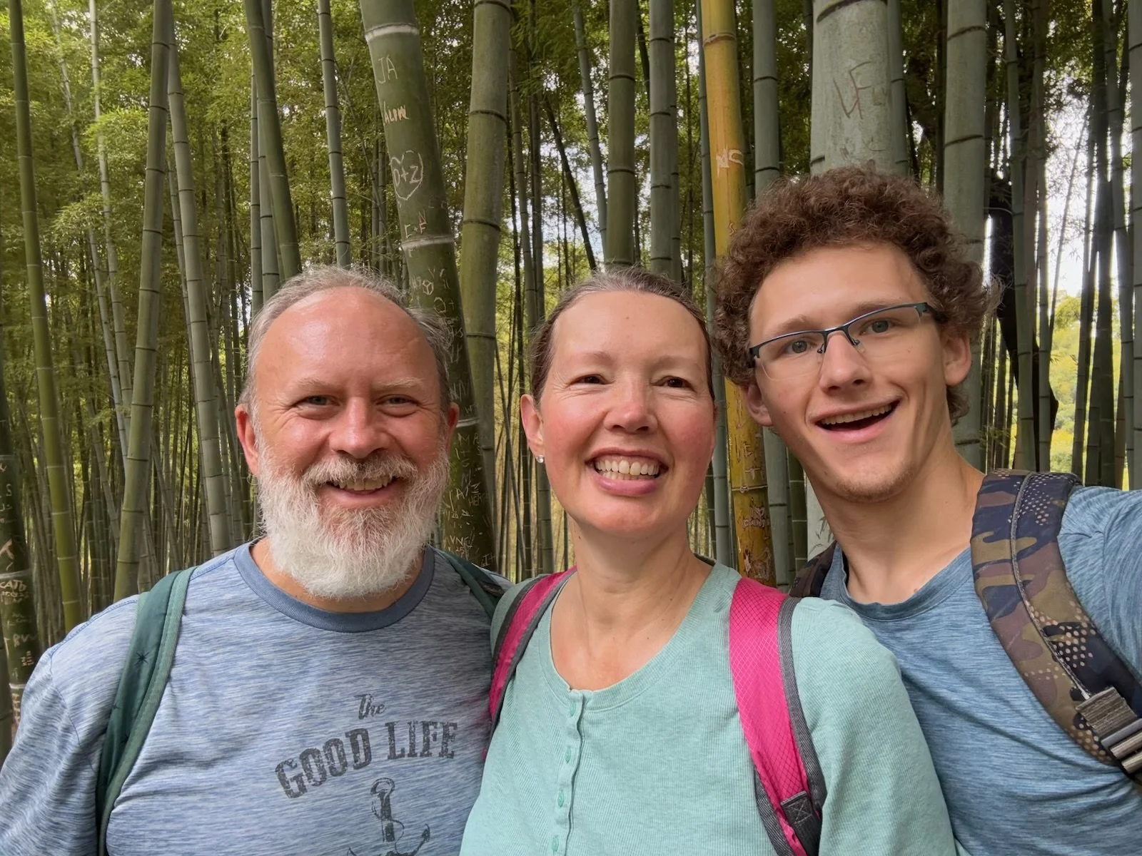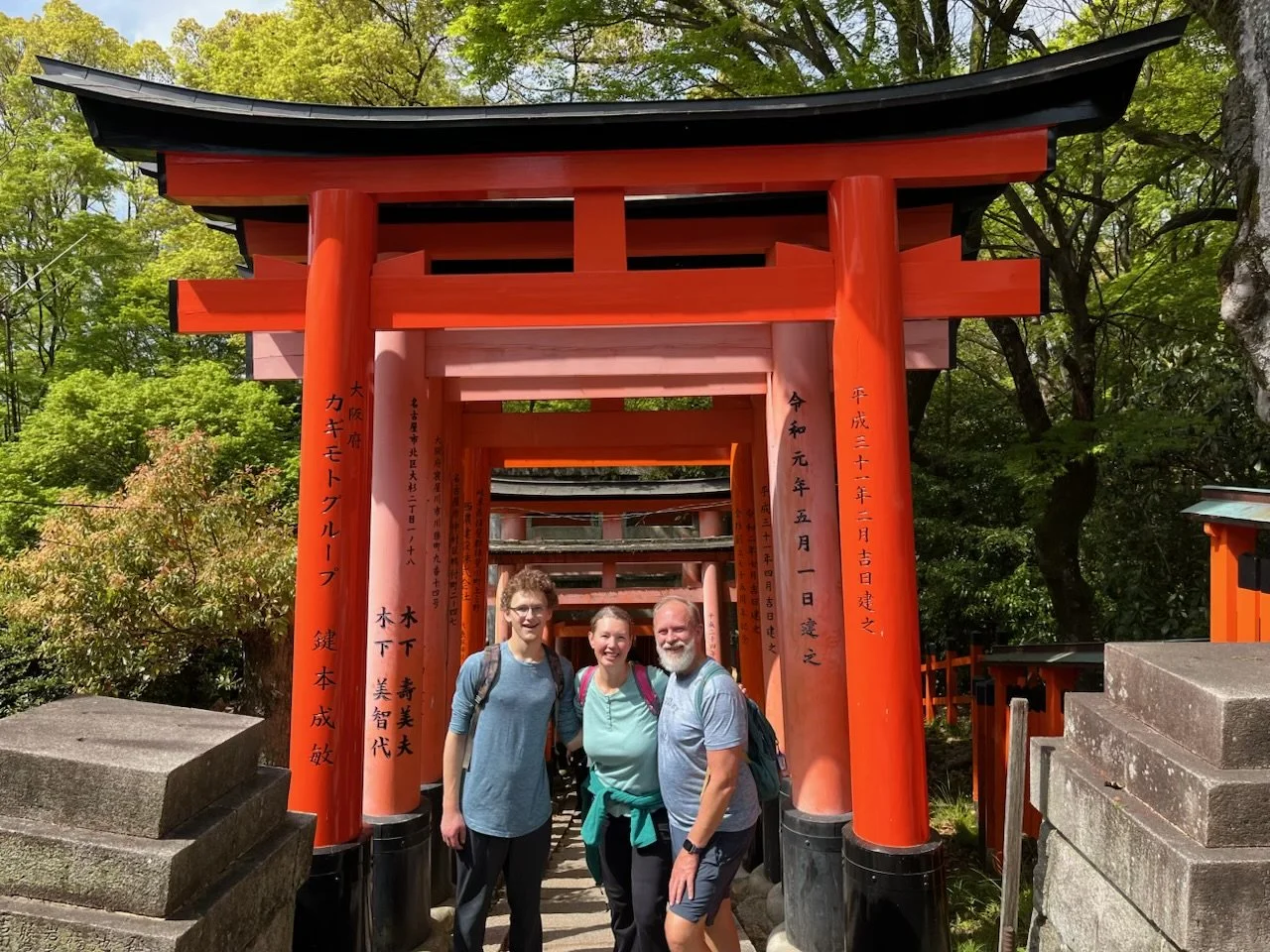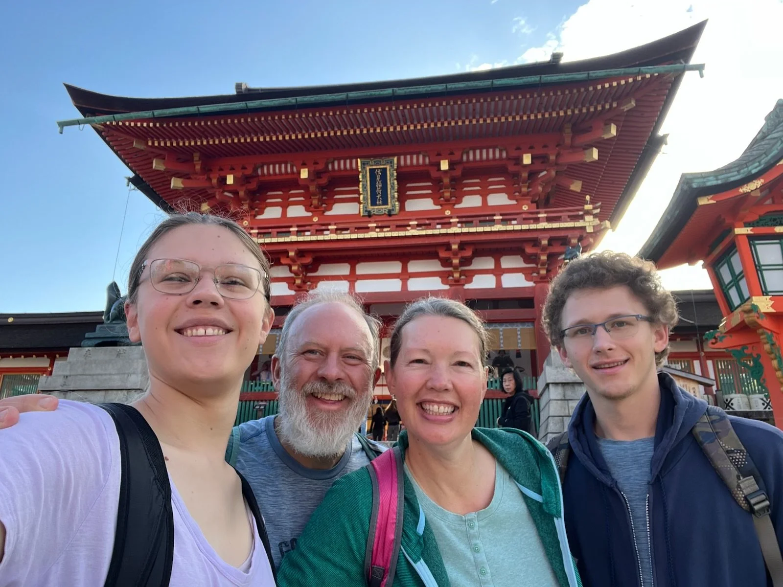 Family selfie in front of the Fushimi Inari Taisha Temple