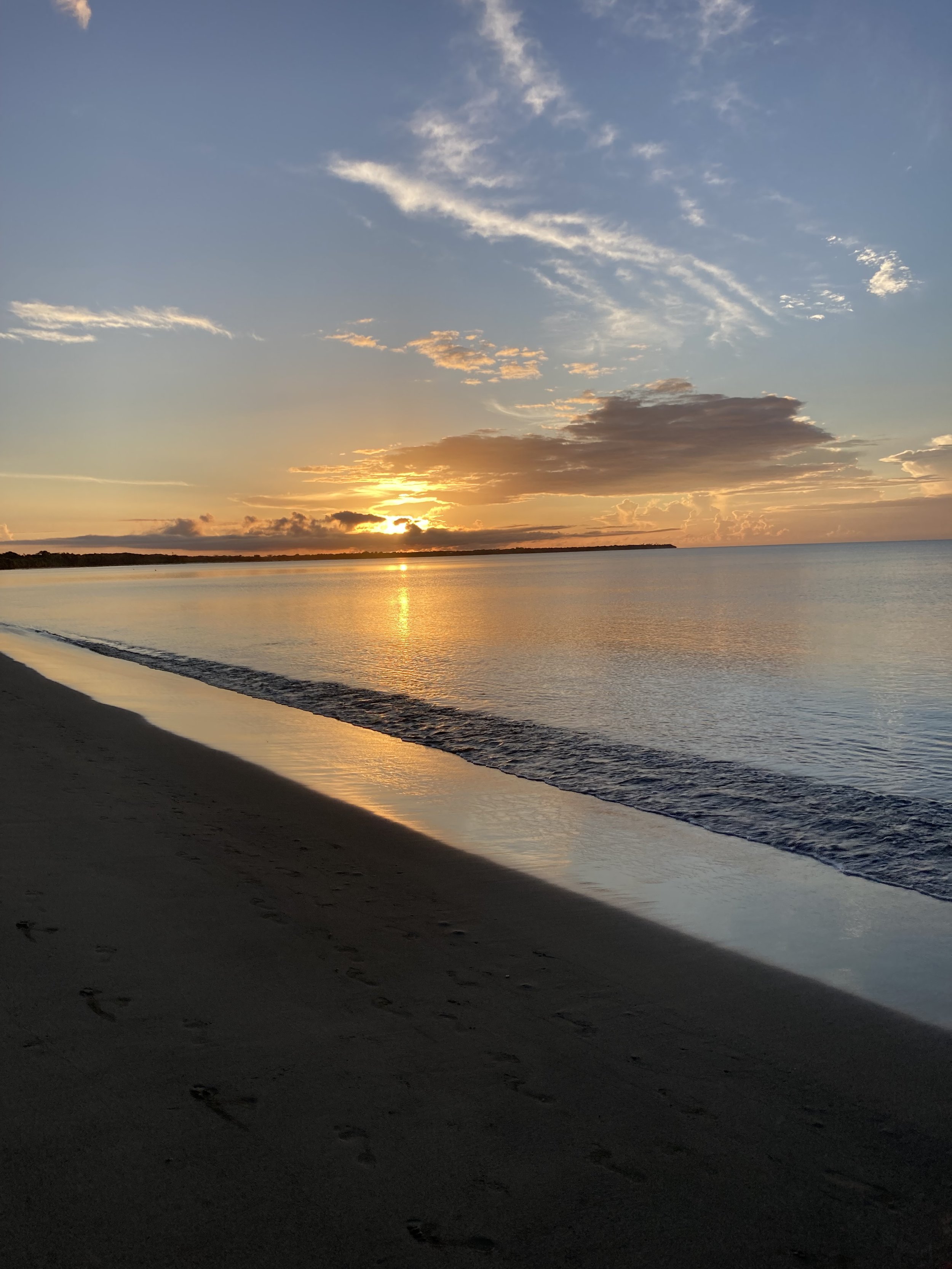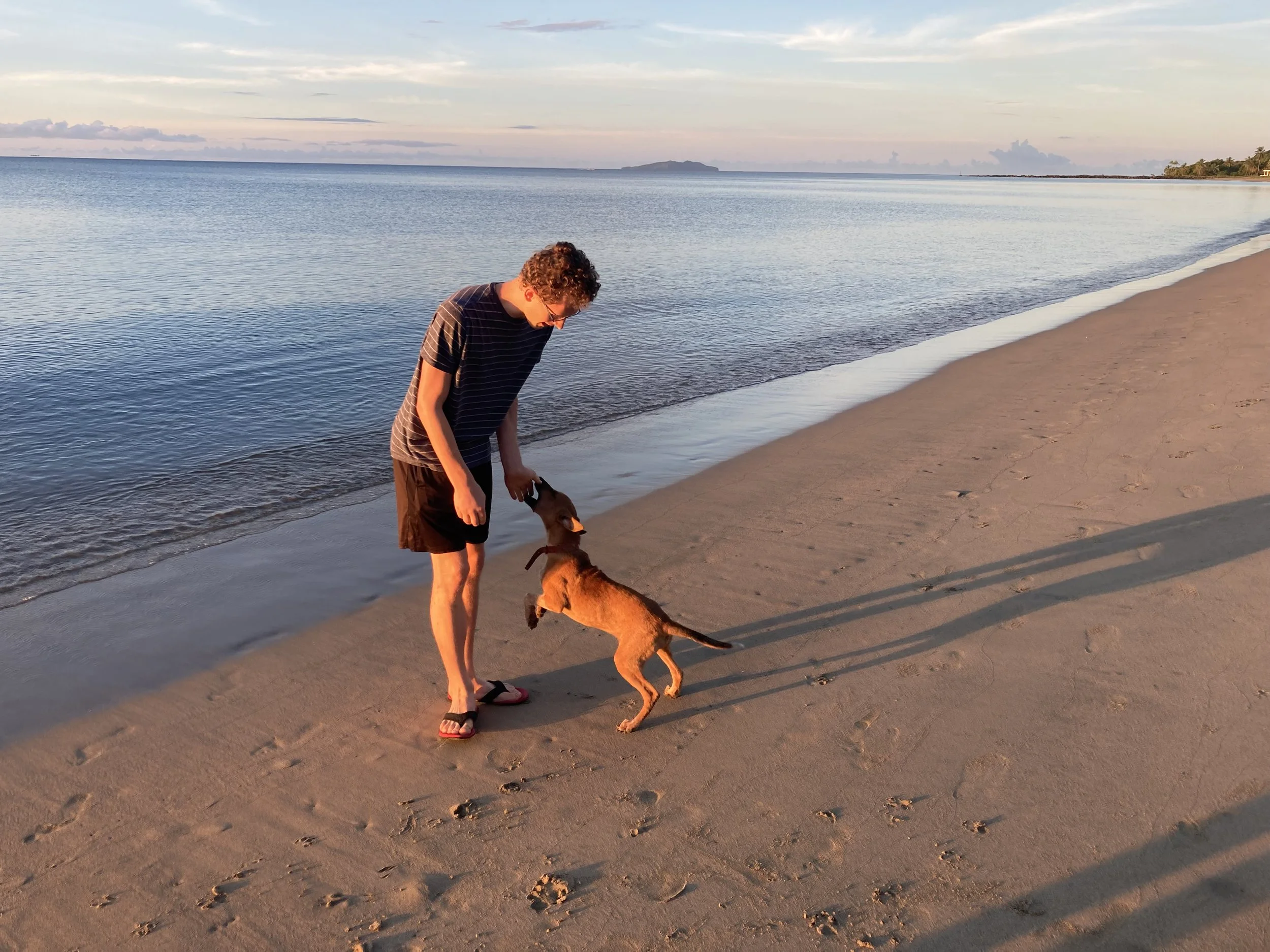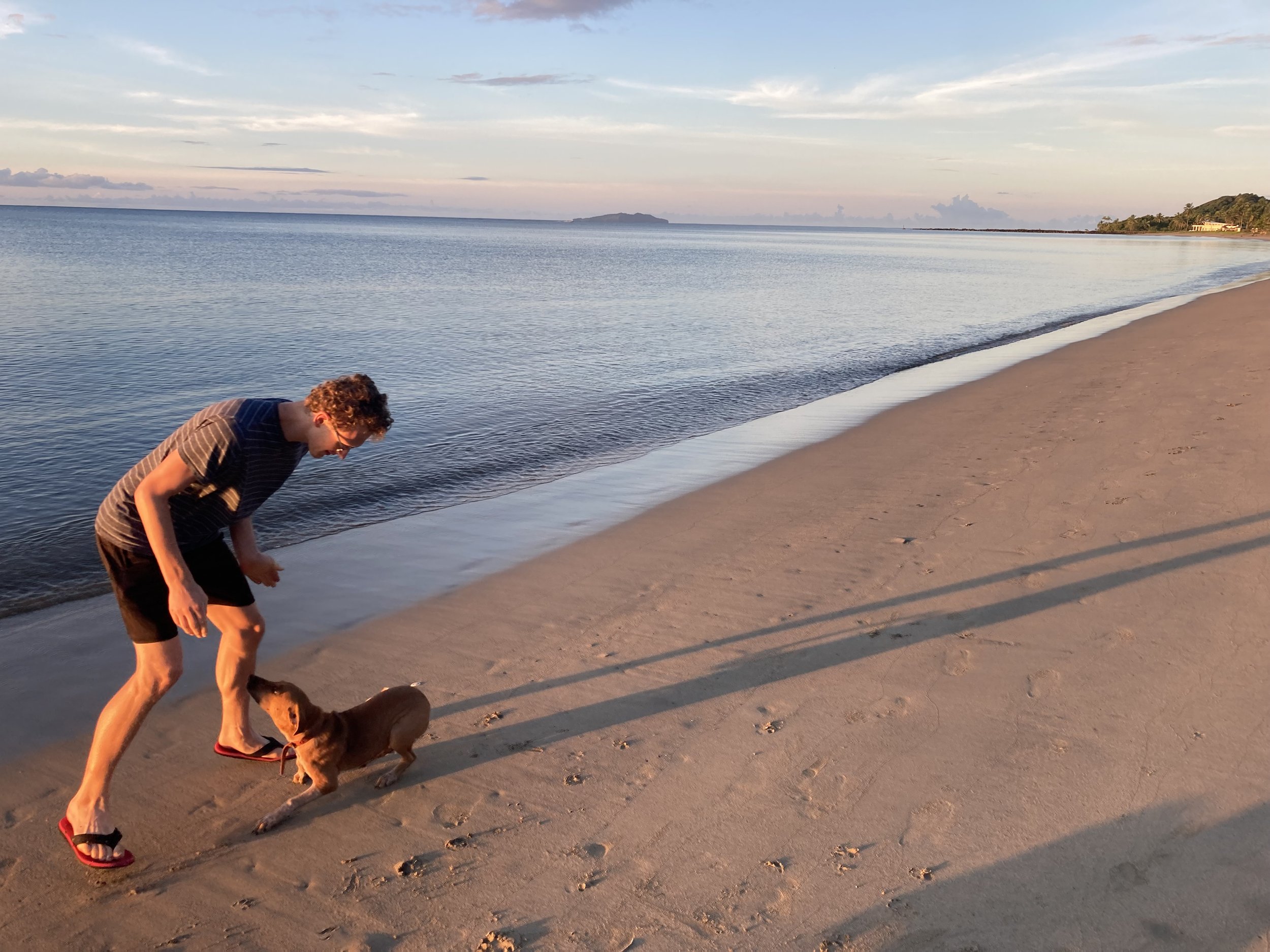 Elena woke up early this morning and so did Will, so the three of us drove down to the Pacific Harbour beach to go for a morning walk and watch the sun rise a little after 6am. There were a few friends who met us there and excitedly greeted us: