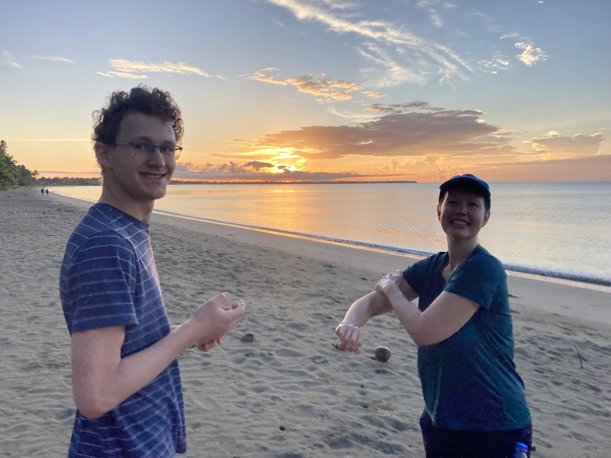 Will, Elena and I walk and watch the sun rise on the beach in Fiji