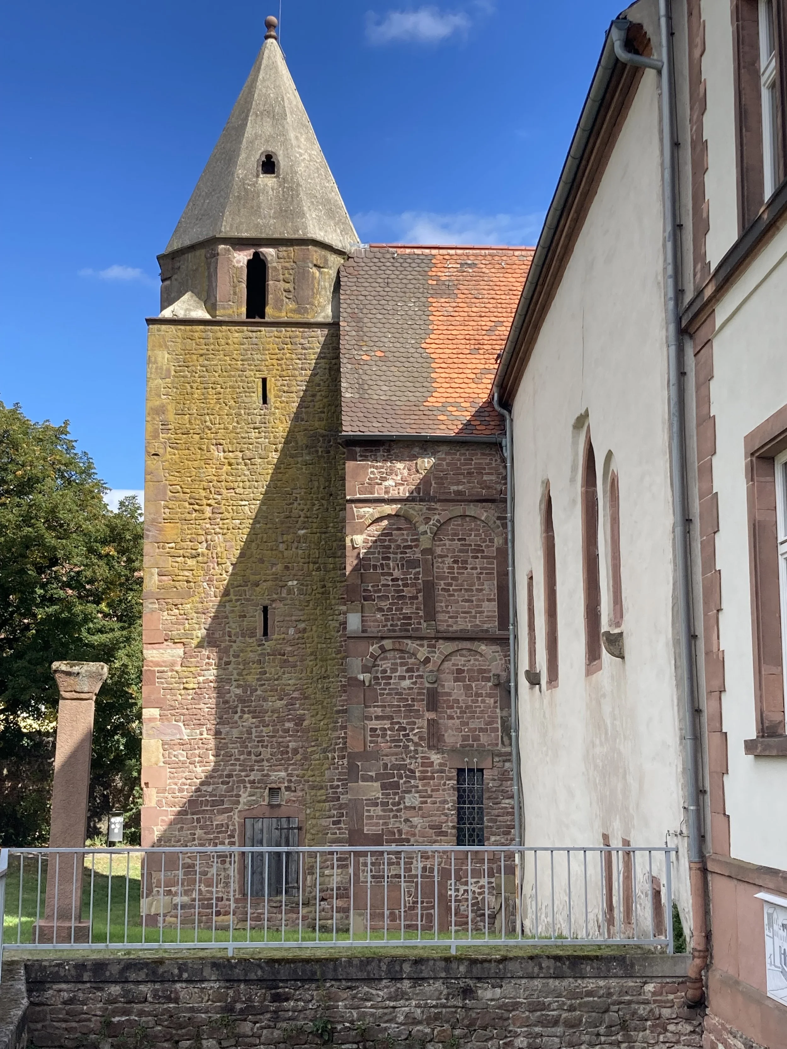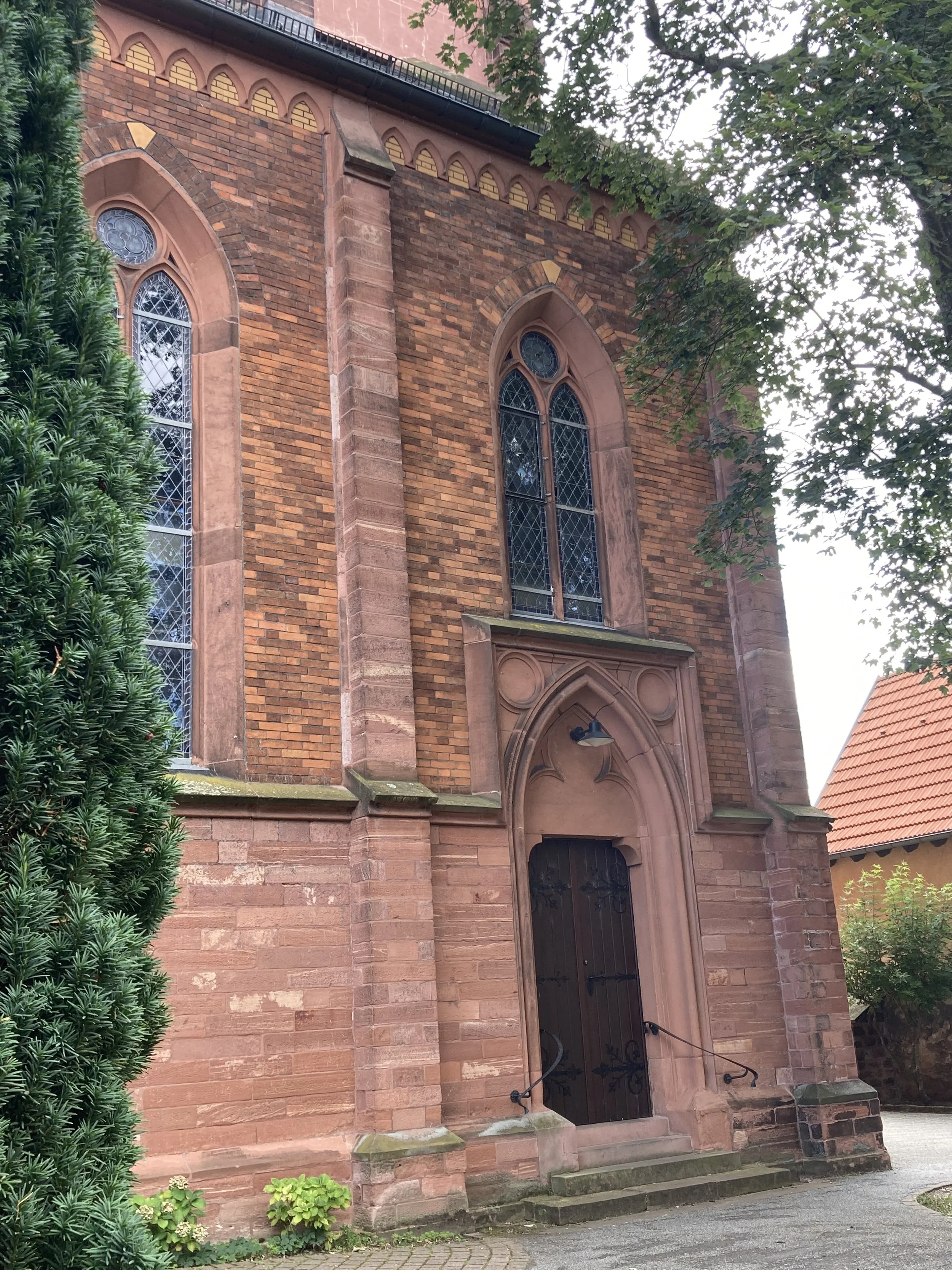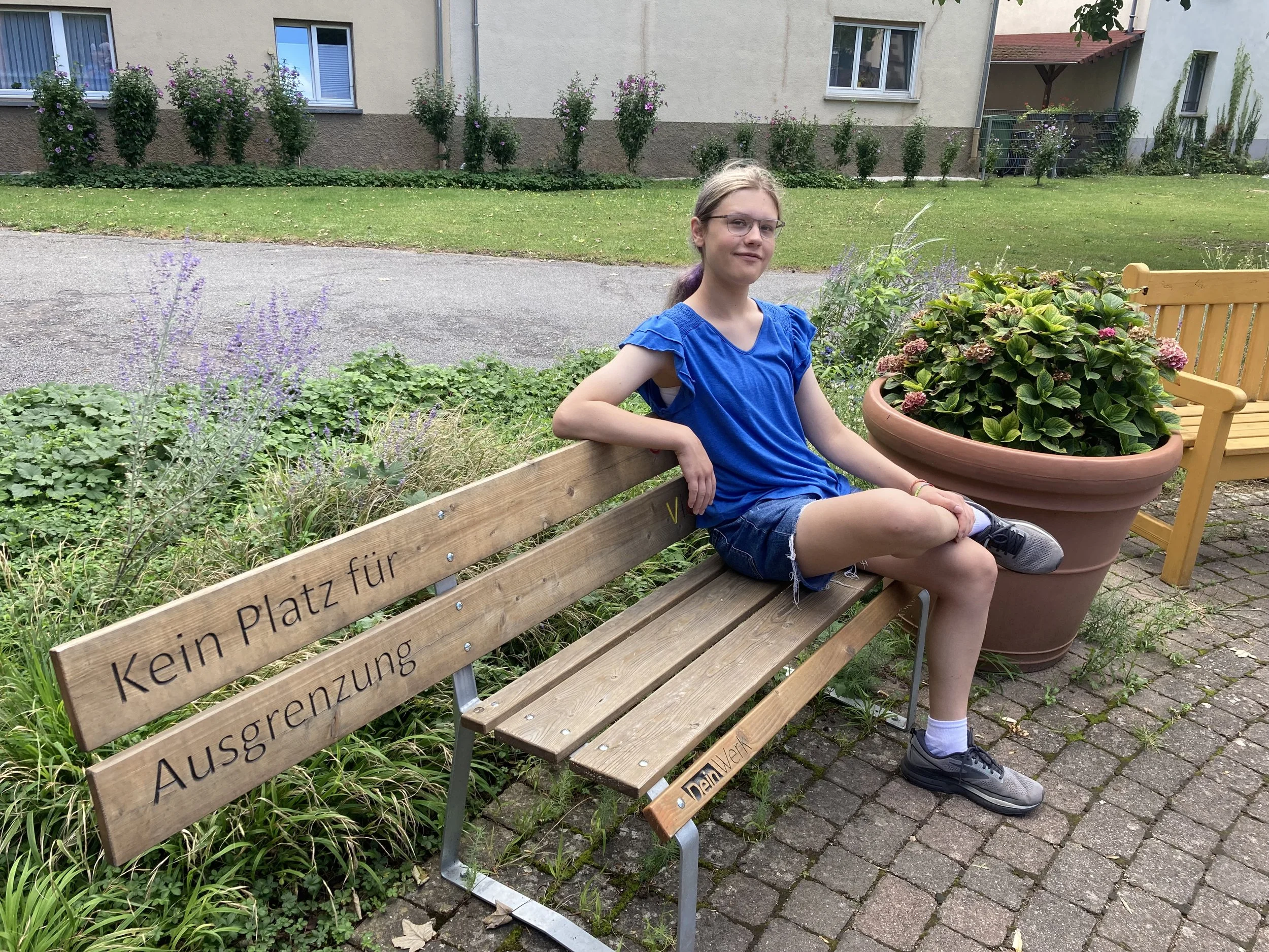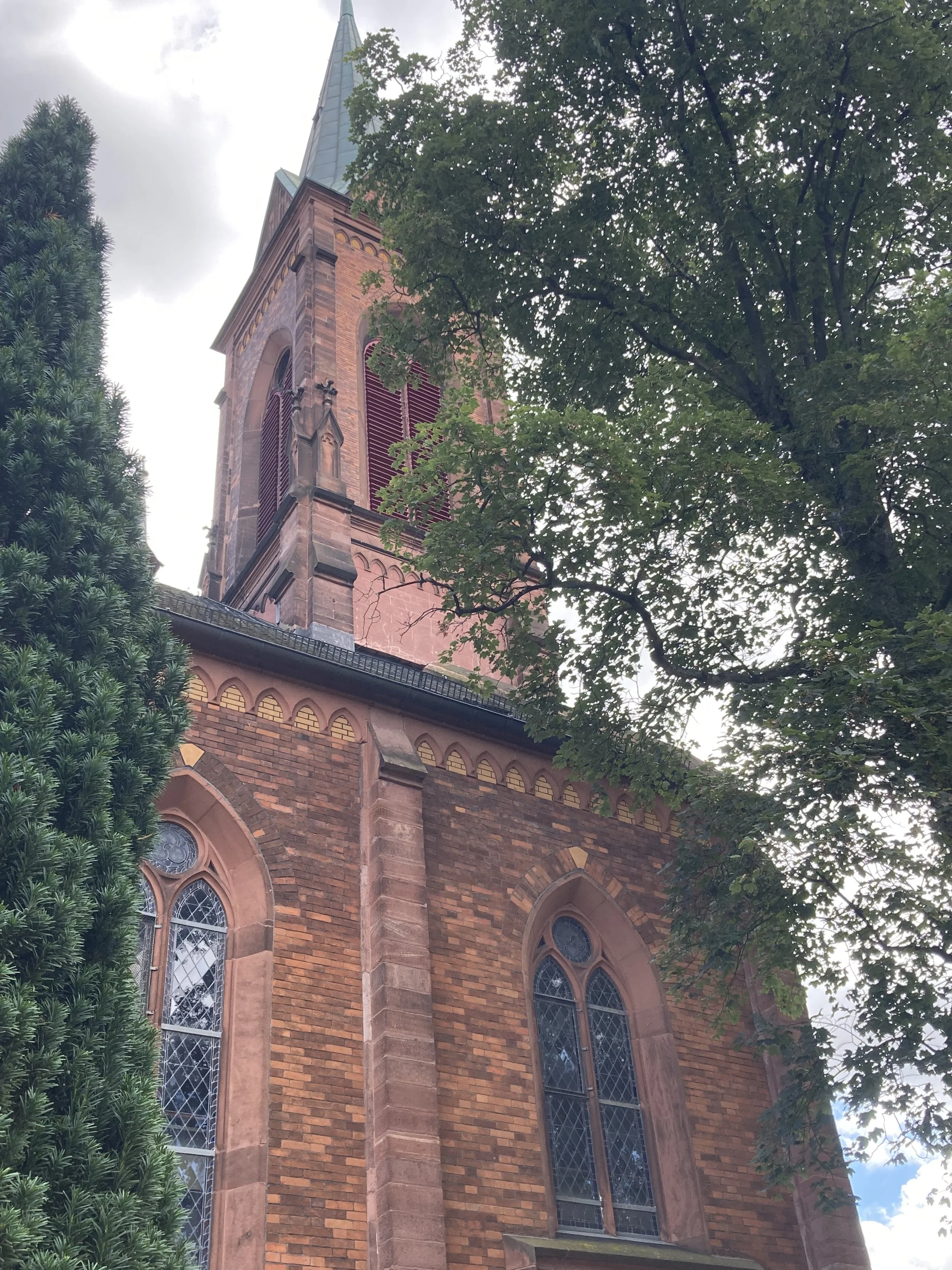 Next up was St. Gallus which is the town church totally renovated. What caught my eye was the inclusive bench outside the church which included a seat for a wheelchair as well as a call-out for LGBTQ+, which Violet noticed and posed for a picture in front of this part of the bench.
