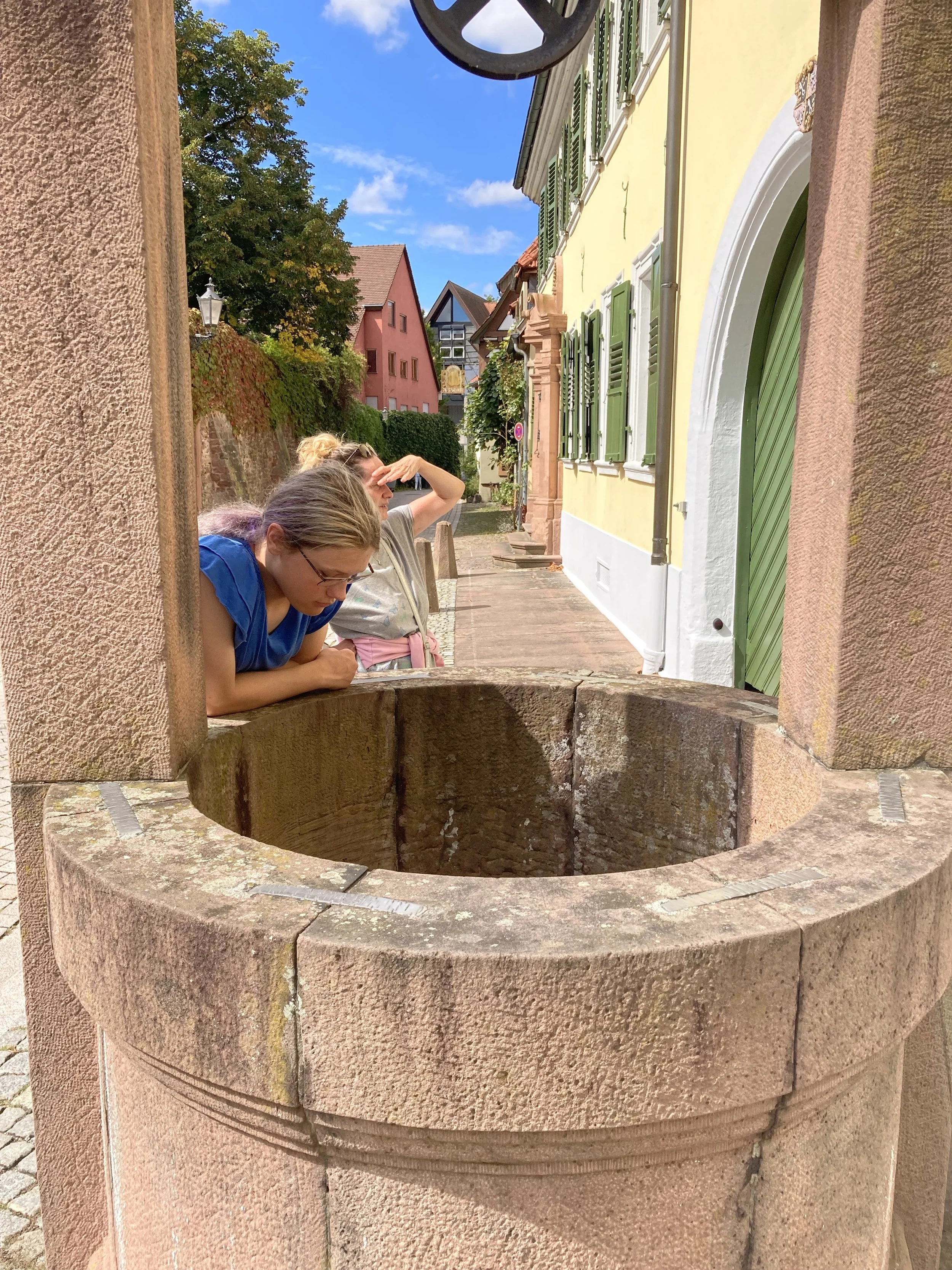 Both Violet and I wished that the wishing wells were still active. They have large grates just below where you can see the pictures taken and they are for show. I’m sure this is both safer for the town and better for the tourist experience, but it sure is fun to stumble across a working well every now and again.