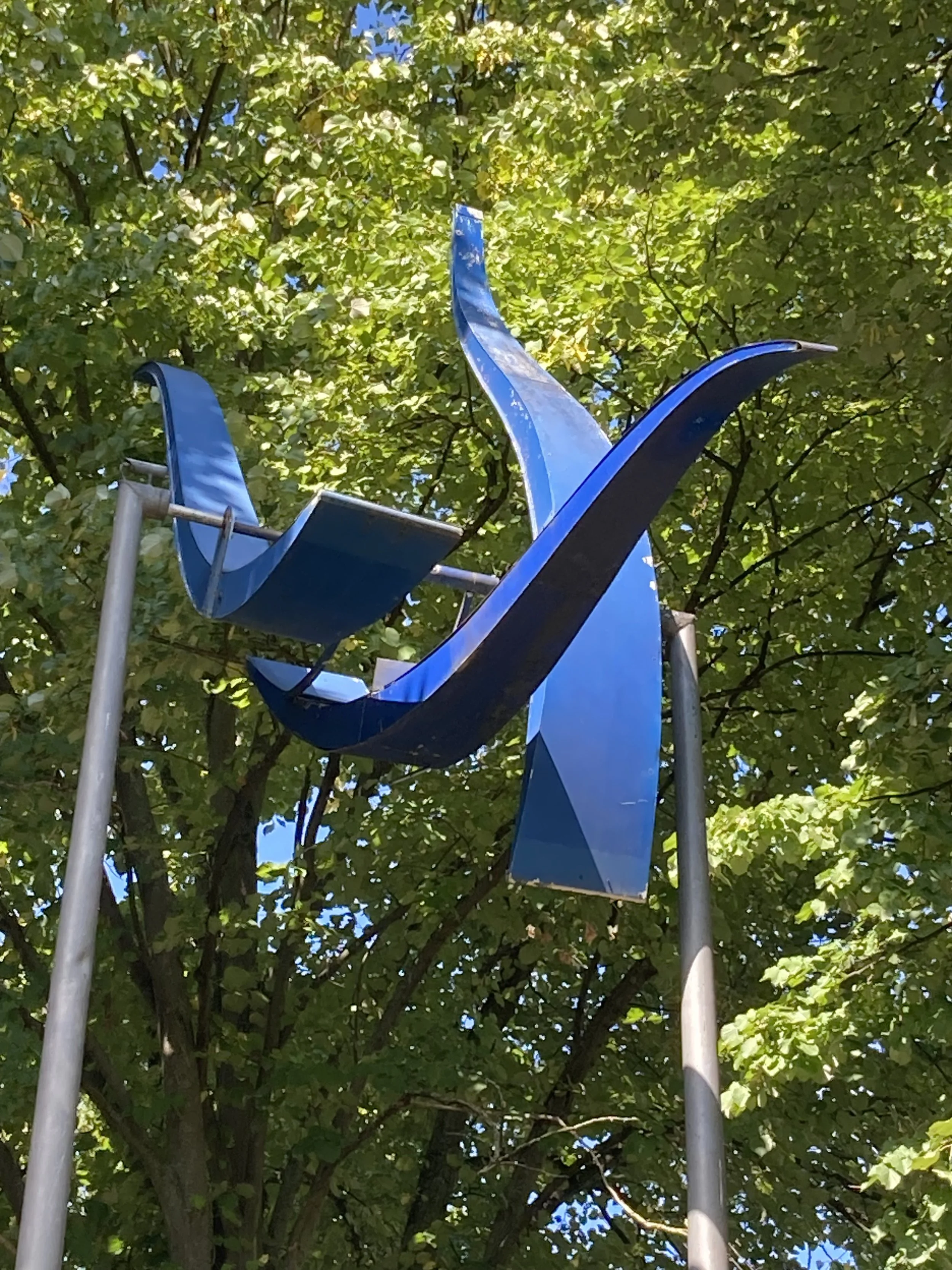 Not sure if its the same artist, but there are a number of “perpetual motion” artwork displays where these large outdoor art displays are counter balanced so well that the slightest wind can get them going back and forth as they perfectly counter balance each other swinging around in a marvelous display.