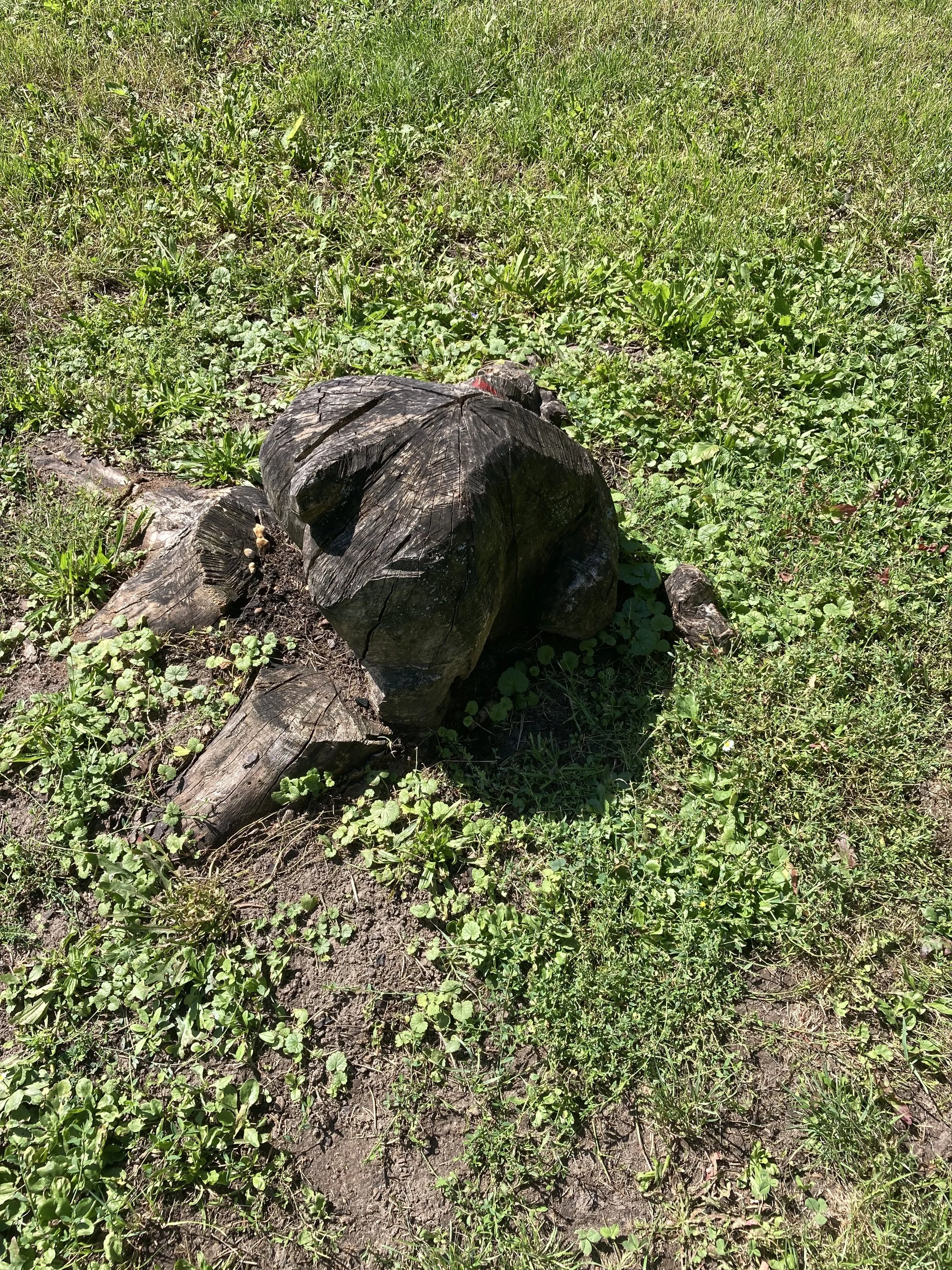 The green house is where Iv Jaeger first lived in Landenberg. And the final picture to the right didn’t come out as I had hoped. It’s a clever carving of a pig with it’s head buried in the stump of the tree. Rather than digging out the tree stump, someone carved an animal digging into the ground.
