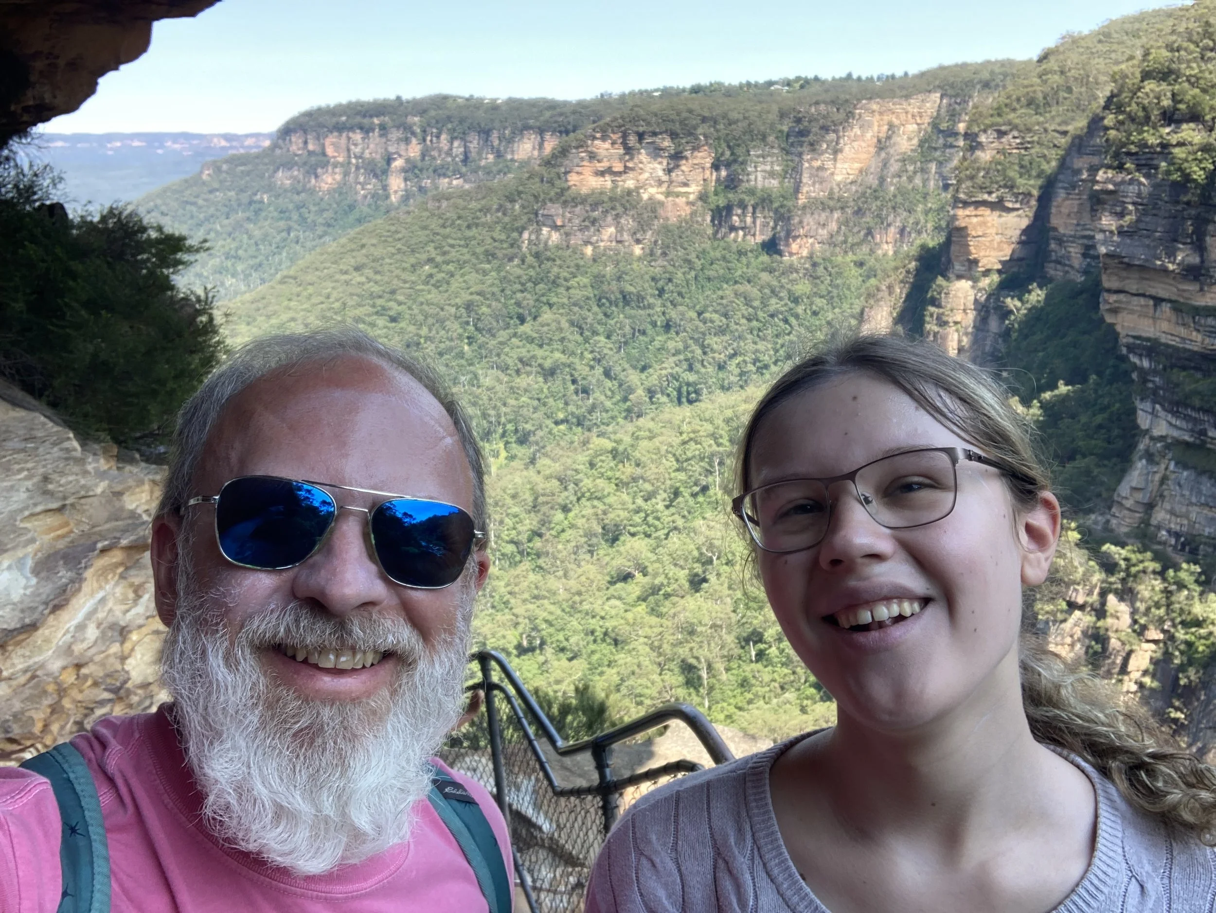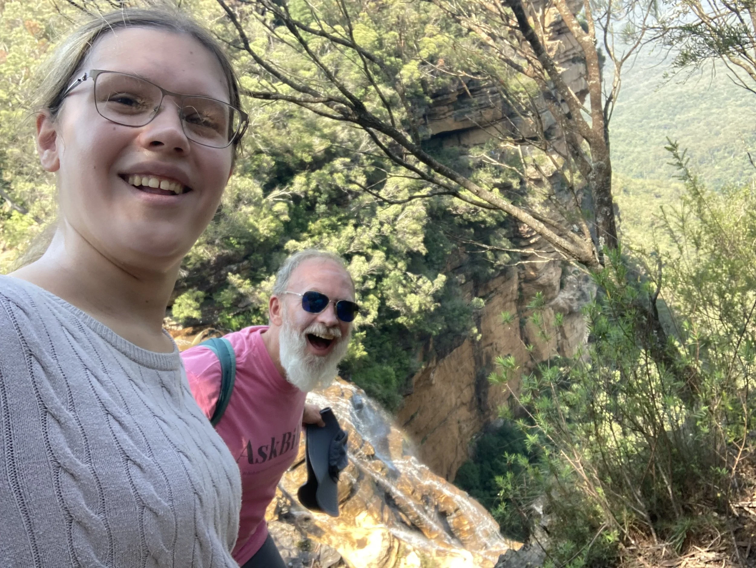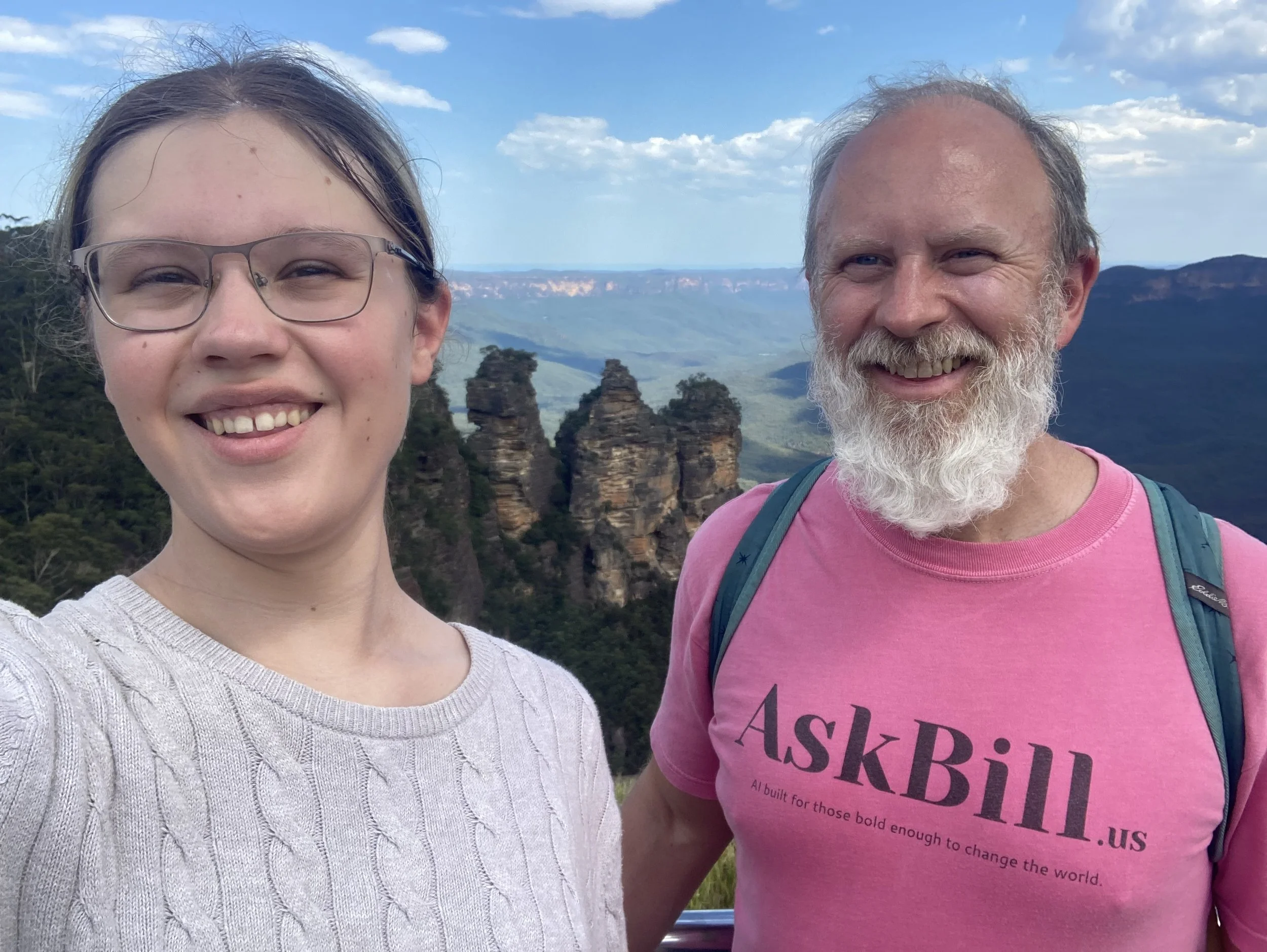 Violet & Bill in front of the Three Sisters (Iconic Blue Mountain Pix)