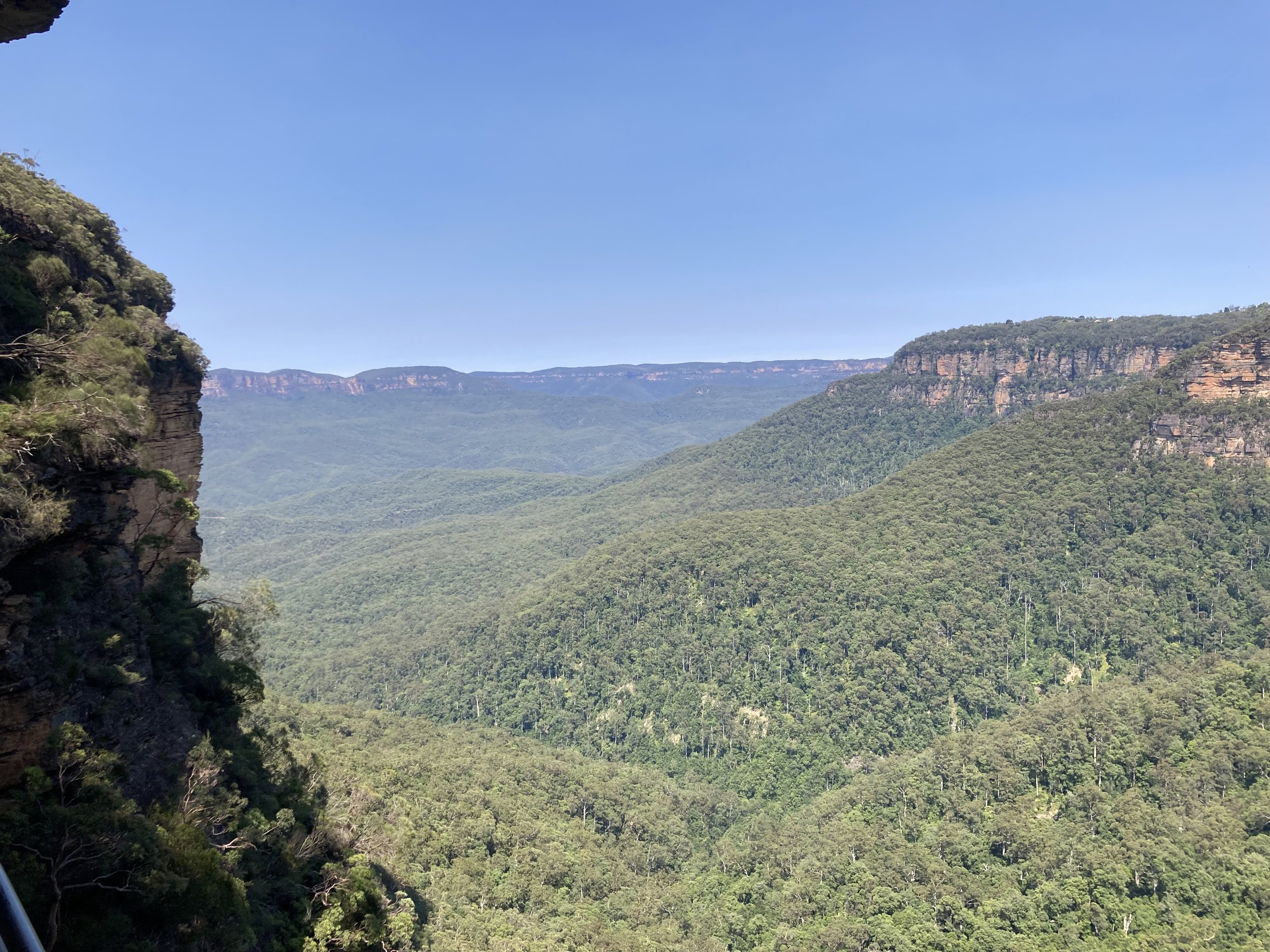 For me, the Blue Mountains are like a plush, green version of the Grand Canyon. If you’ve ever been there, imagine the most incredible view everywhere you look, but instead of only seeing rock, you saw lush green wildlife growing up from the cliff faces and water falls going over them. The Blue Mountains are no less impressive than the Grand Canyon. Like the Grand Canyon, the Blue Mountains give you the same feeling of being tiny and insignificant in comparison to this vast landscape. The key difference (for me at least) is the lush greenery everywhere the eye can see while taking in the height of the mountains in comparison to the valley below.