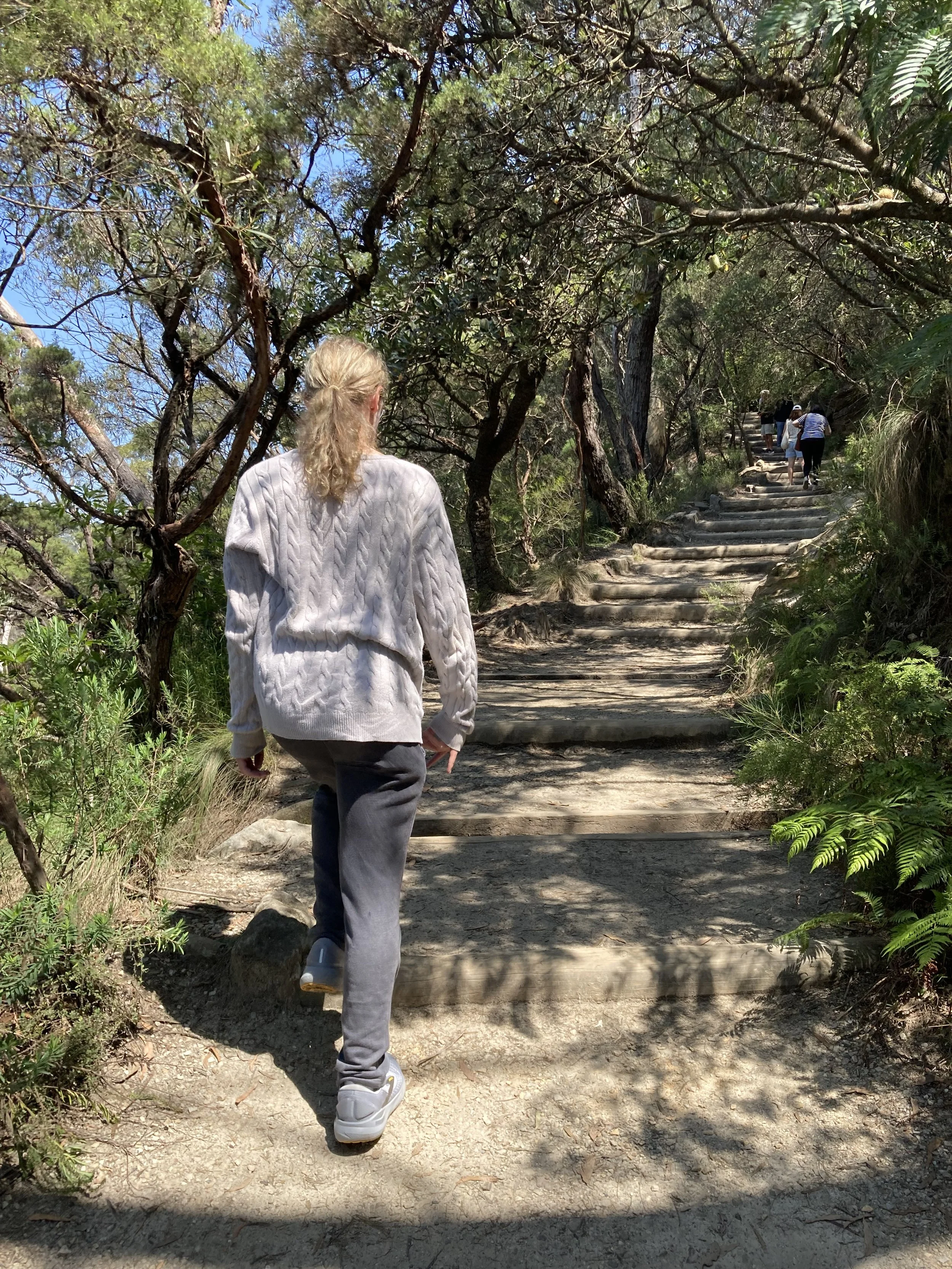 Here again, Violet and I could have spent several more hours – all day, in fact. The hike was spectacular. There are well carved steps into the stone with steel hand rails. Yes, it was crowded because of the three day weekend (did I mention it’s Australia Day tomorrow?) But other than the crowds, the hike was like standing at the summit the entire hike.