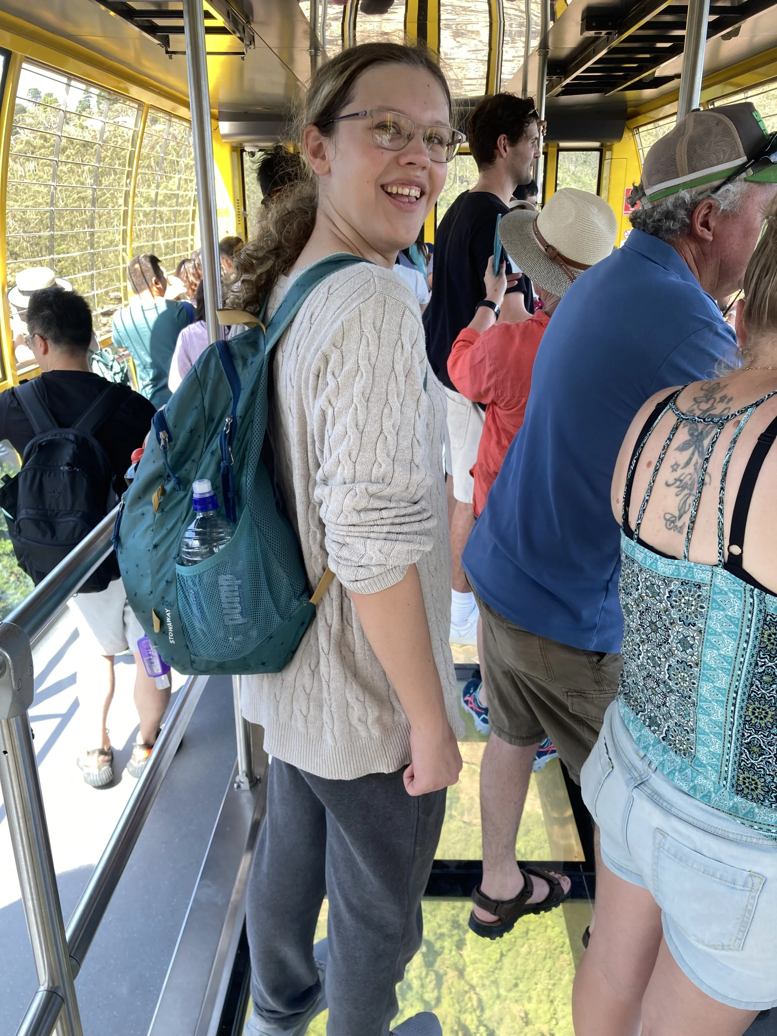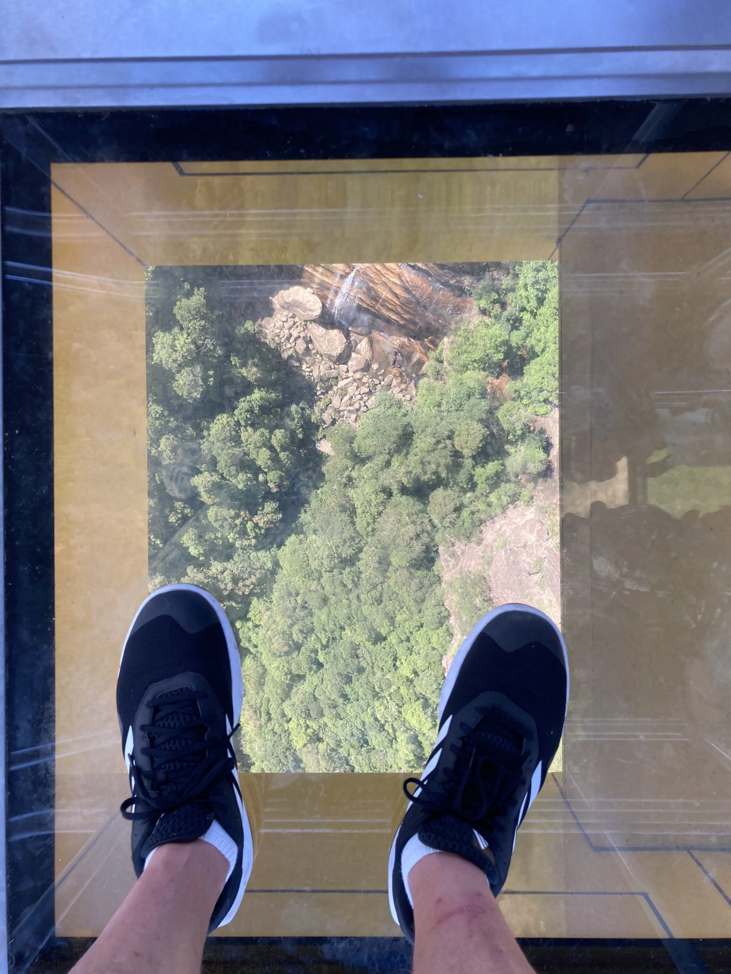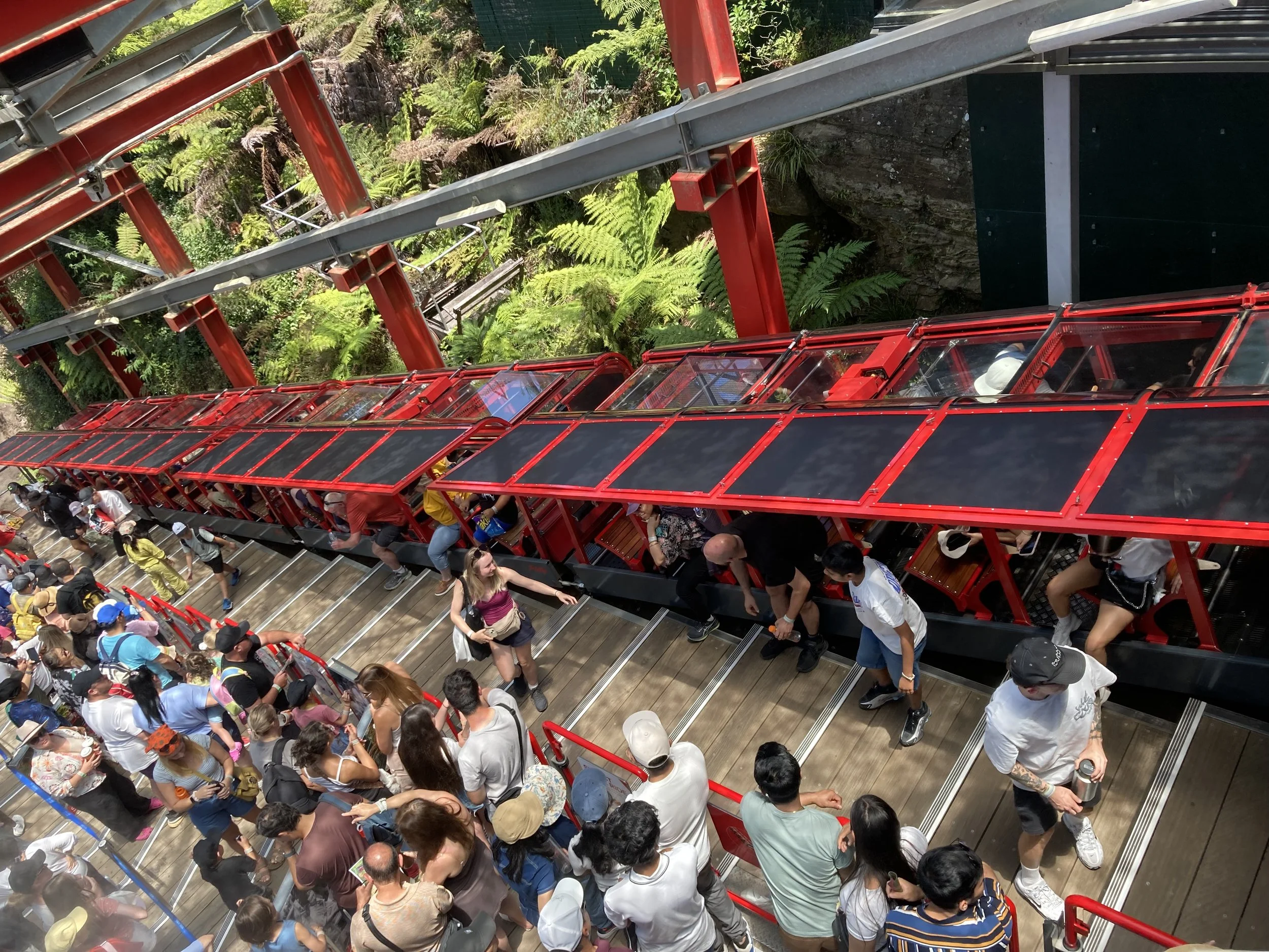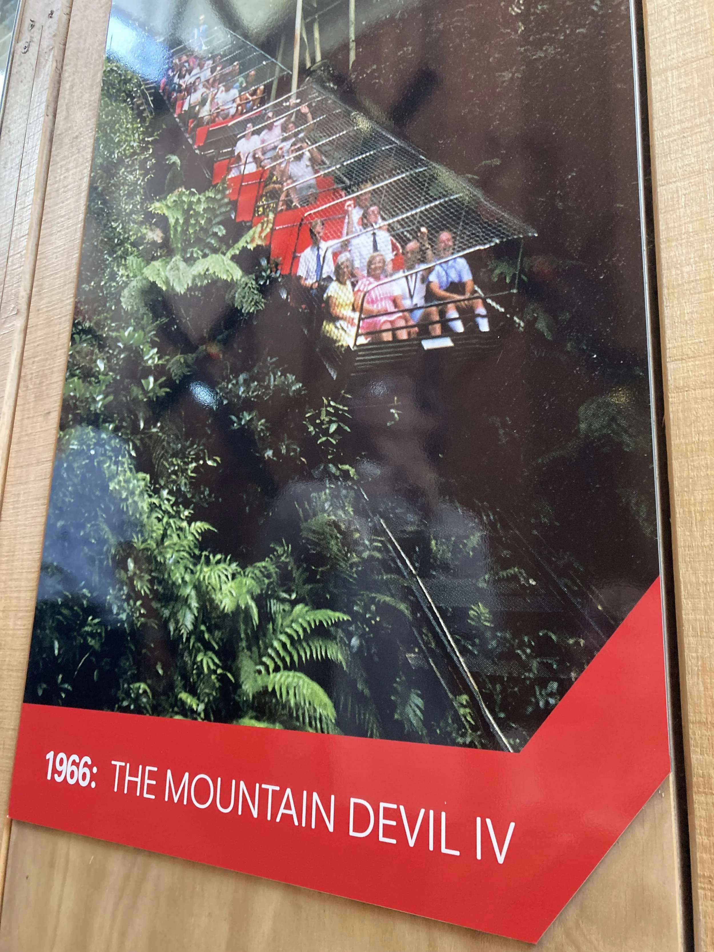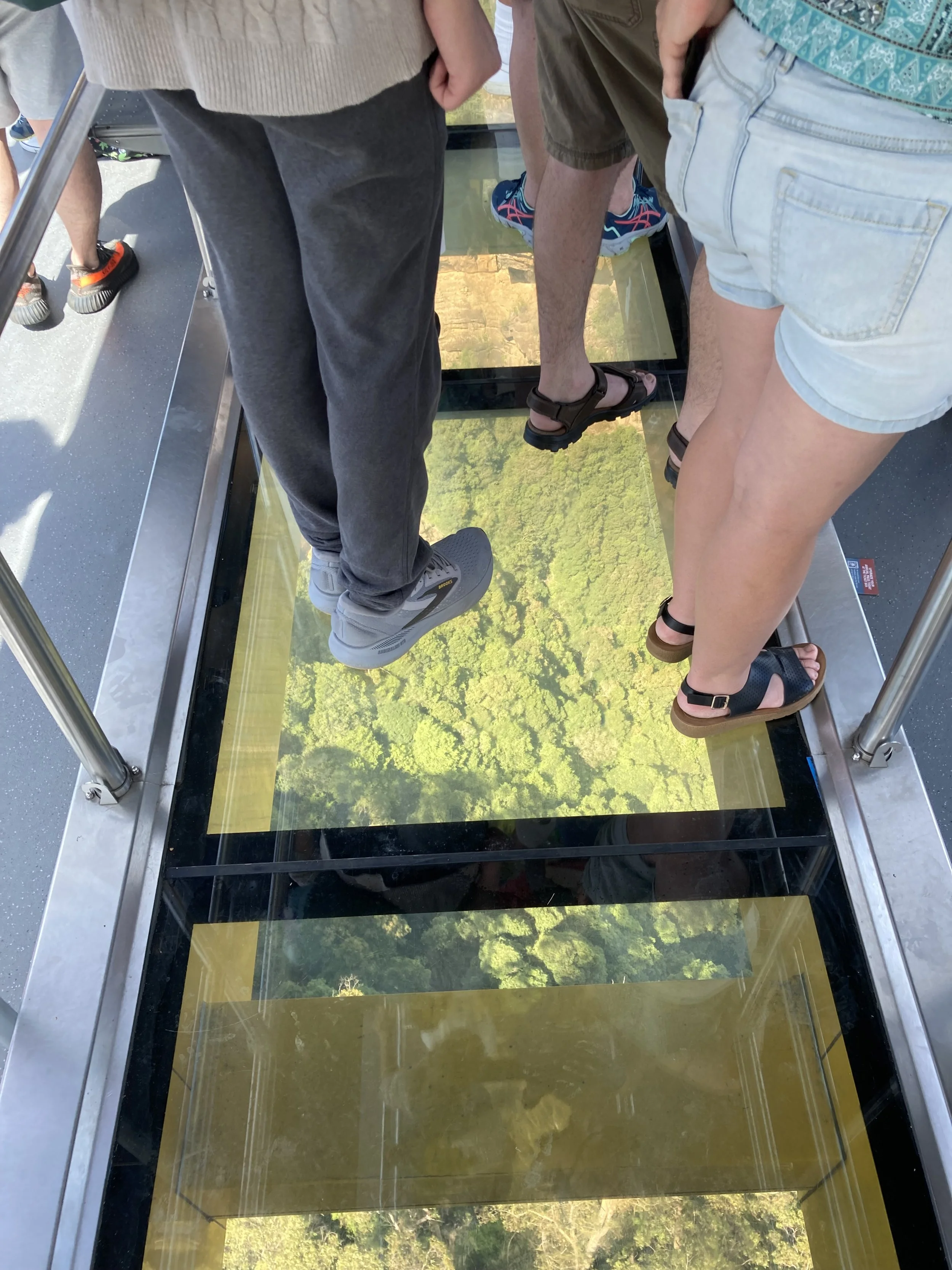 But the BEST part were the trams. Some of them date back to World War II having been updated every few decades. Just seeing how they USED to look was terrifying enough. For the largest one, they had the option to stand on a glass bottom and look at the DROP below that’s more than twice the size of the Sydney Harbor Bridge in height (from sea level to the very top of the bridge which we recently walked (see related post).