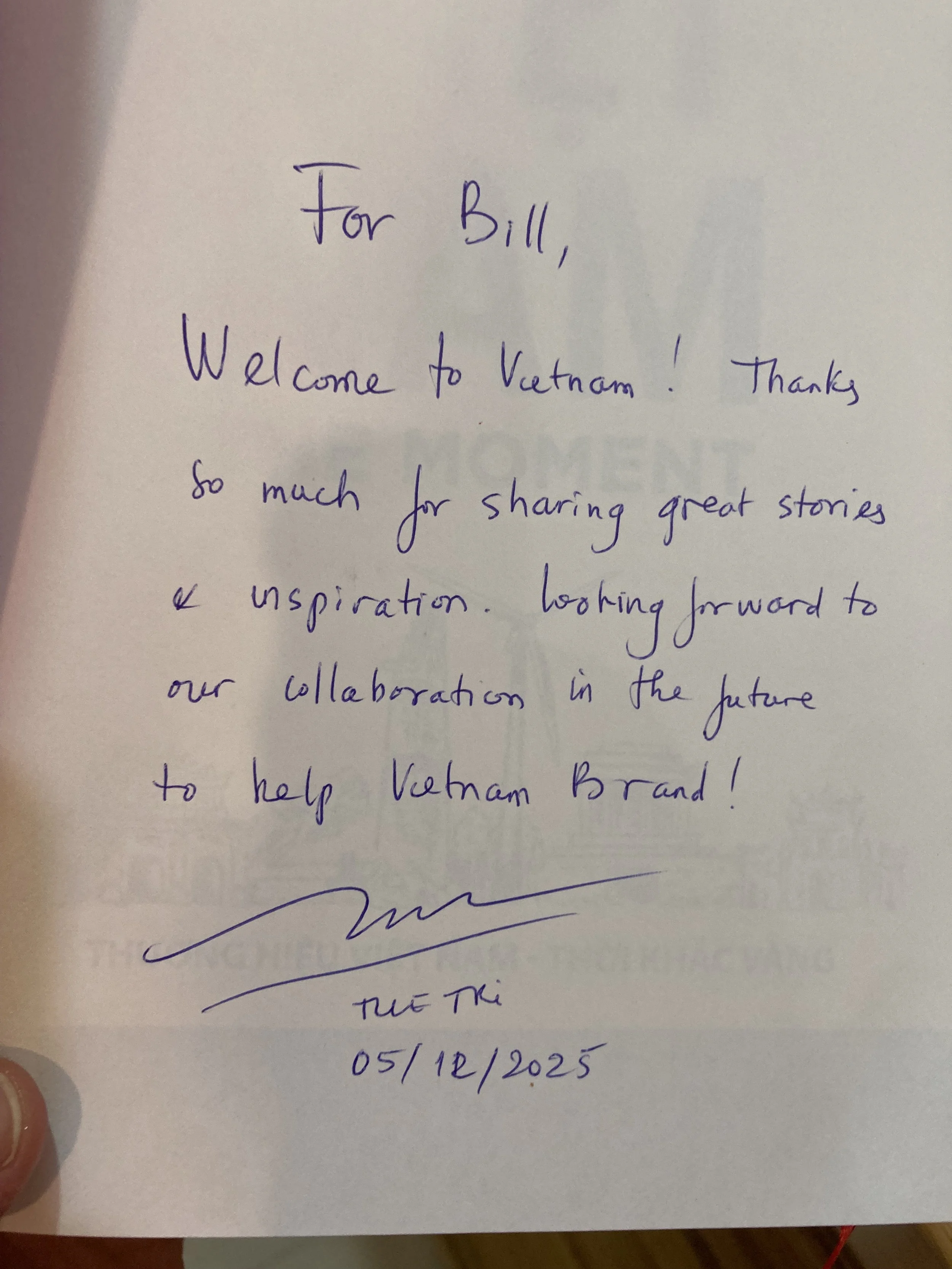 Today was another one of those days. This time with Tran Tue Tri, author of Brand Vietnam: The Moment. It only could have happened through a series of events starting with joining Shirzad Chamine at Positive Intelligence. Then building the WealthBuilder program. Then having Ron Kertzner meet me for lunch in my hometown of Port Washington, New York and developing a friendship. Which resulted in an introduction to Nick Craig. And after a few Zoom calls, a recommendation to meet Tran Tue Tri when I’m visiting Ho Chi Minh City (HCMC) which we did today.
