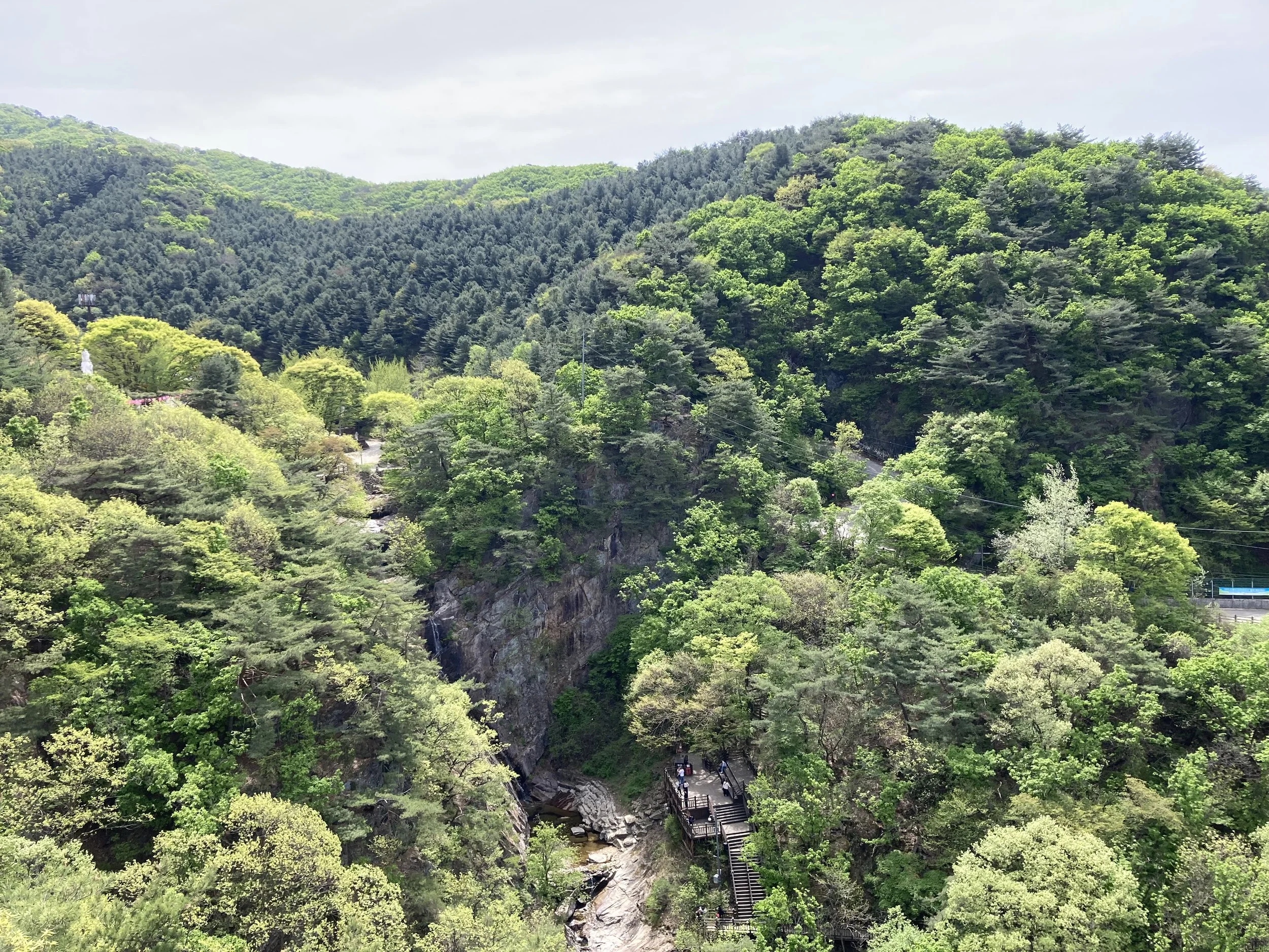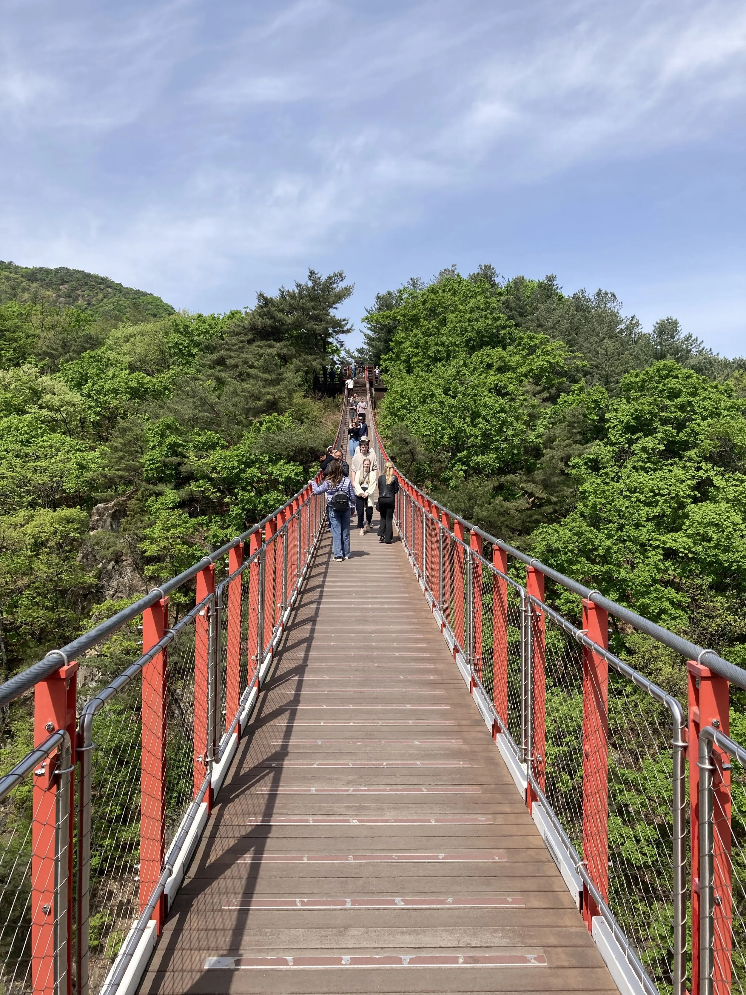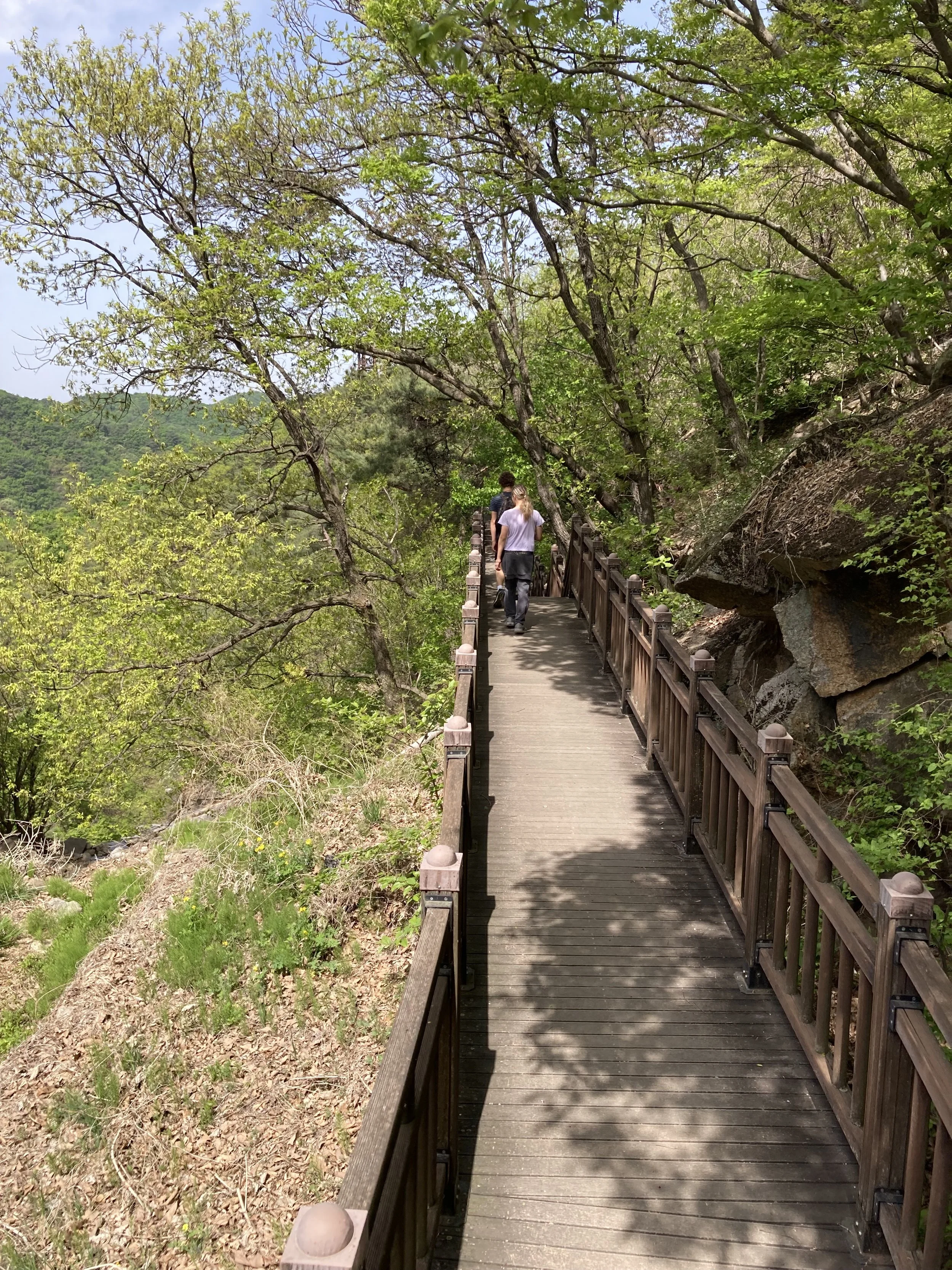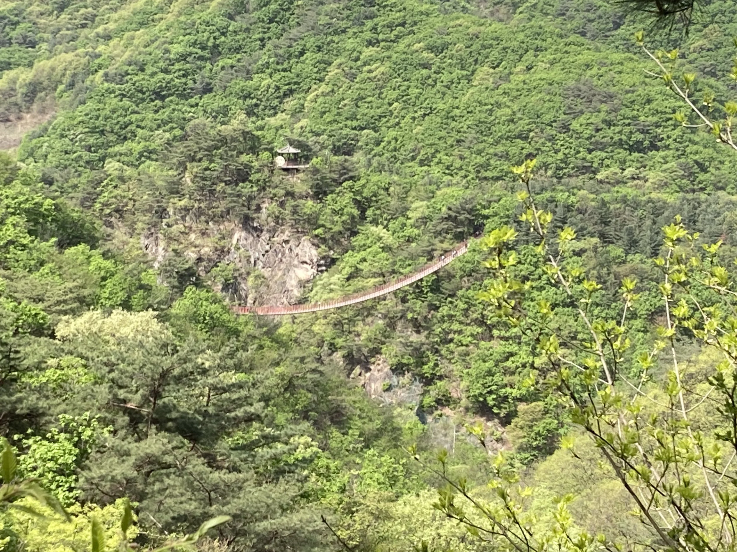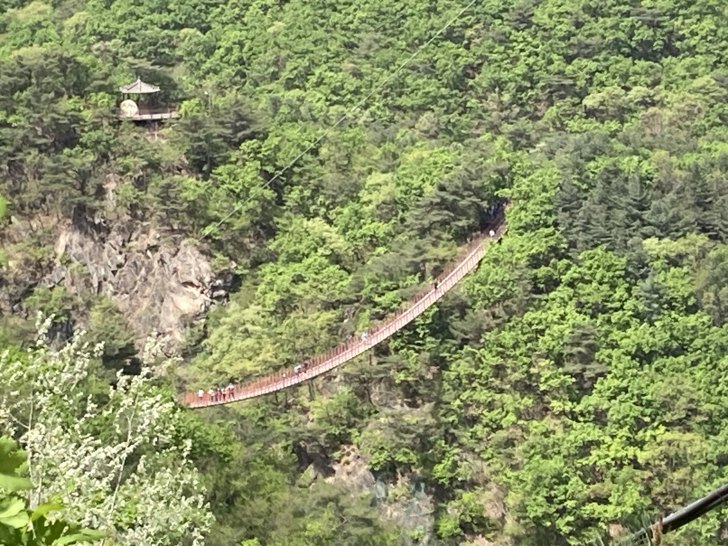 At the top of the mountain is a gazebo overlooking the suspension bridge. The bridge looks so tiny from the top. Meanwhile the mountains of South Korea are sweeping and the perfect color green. There may have been some forest bathing, but today it felt more like being charged up by the many mountains of South Korea.
