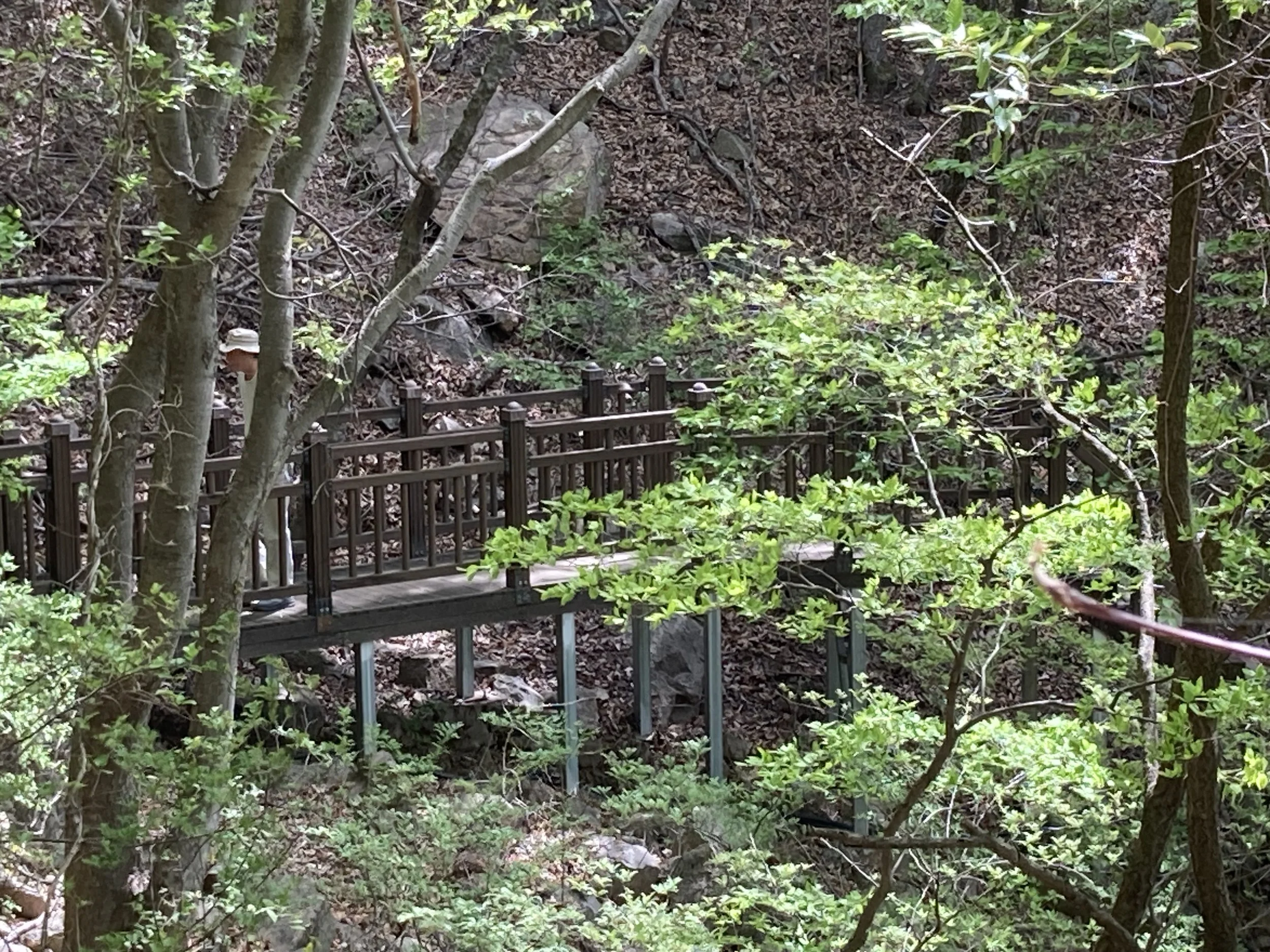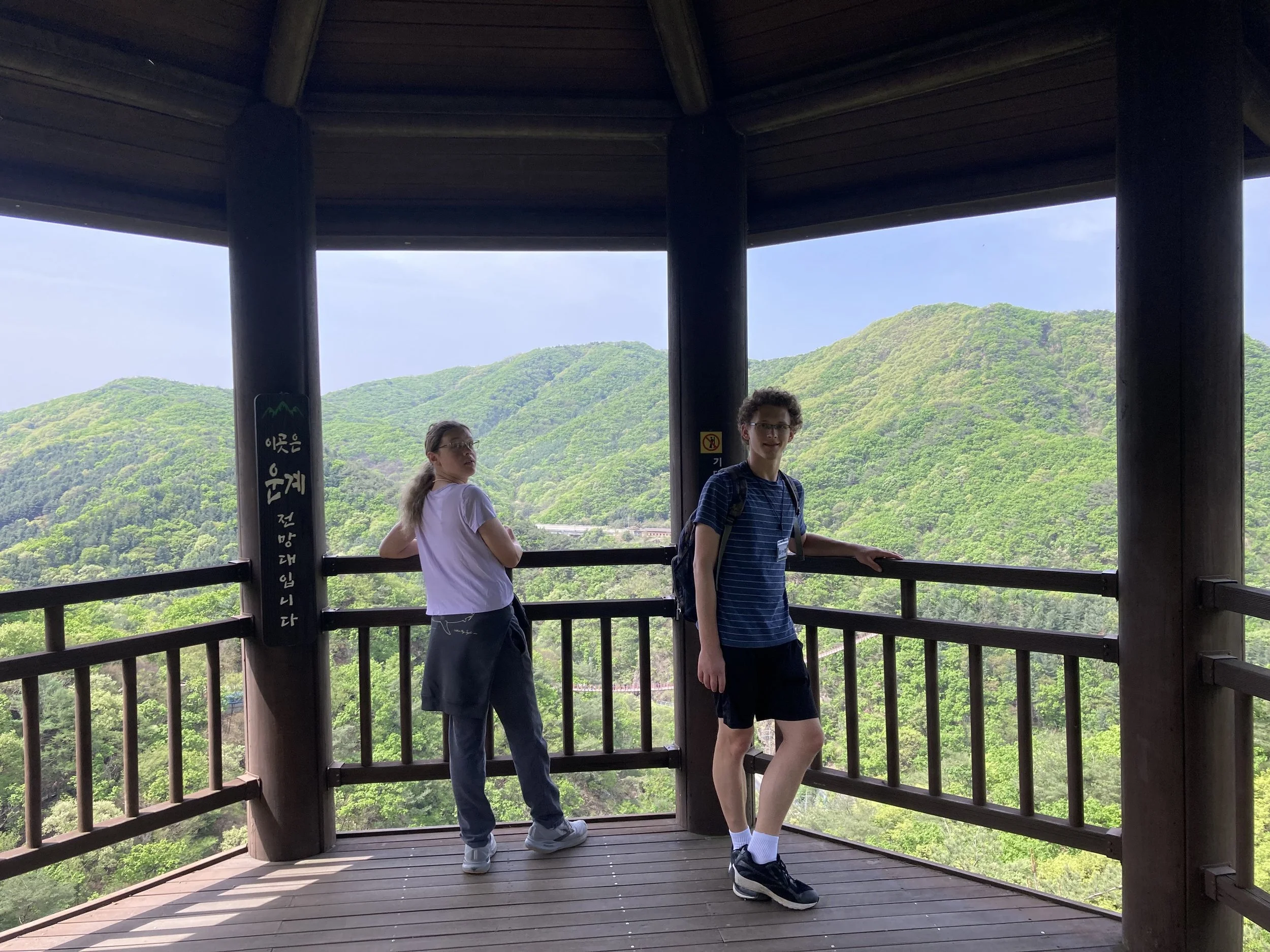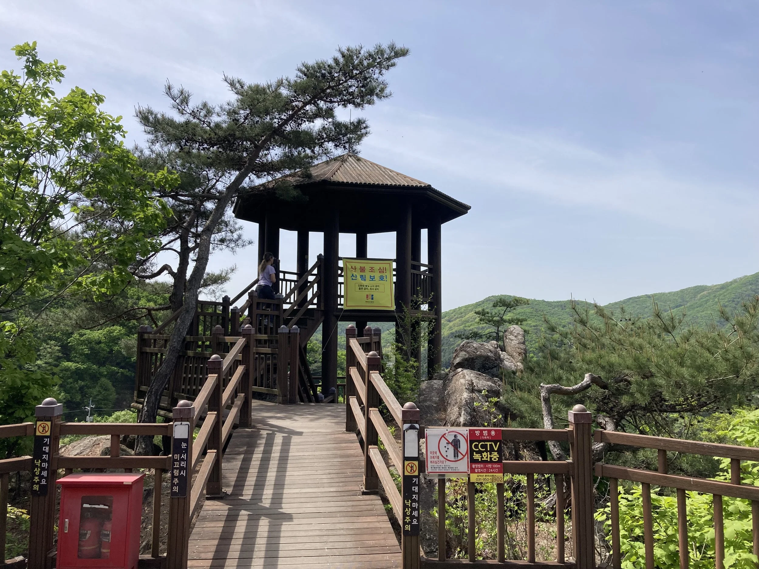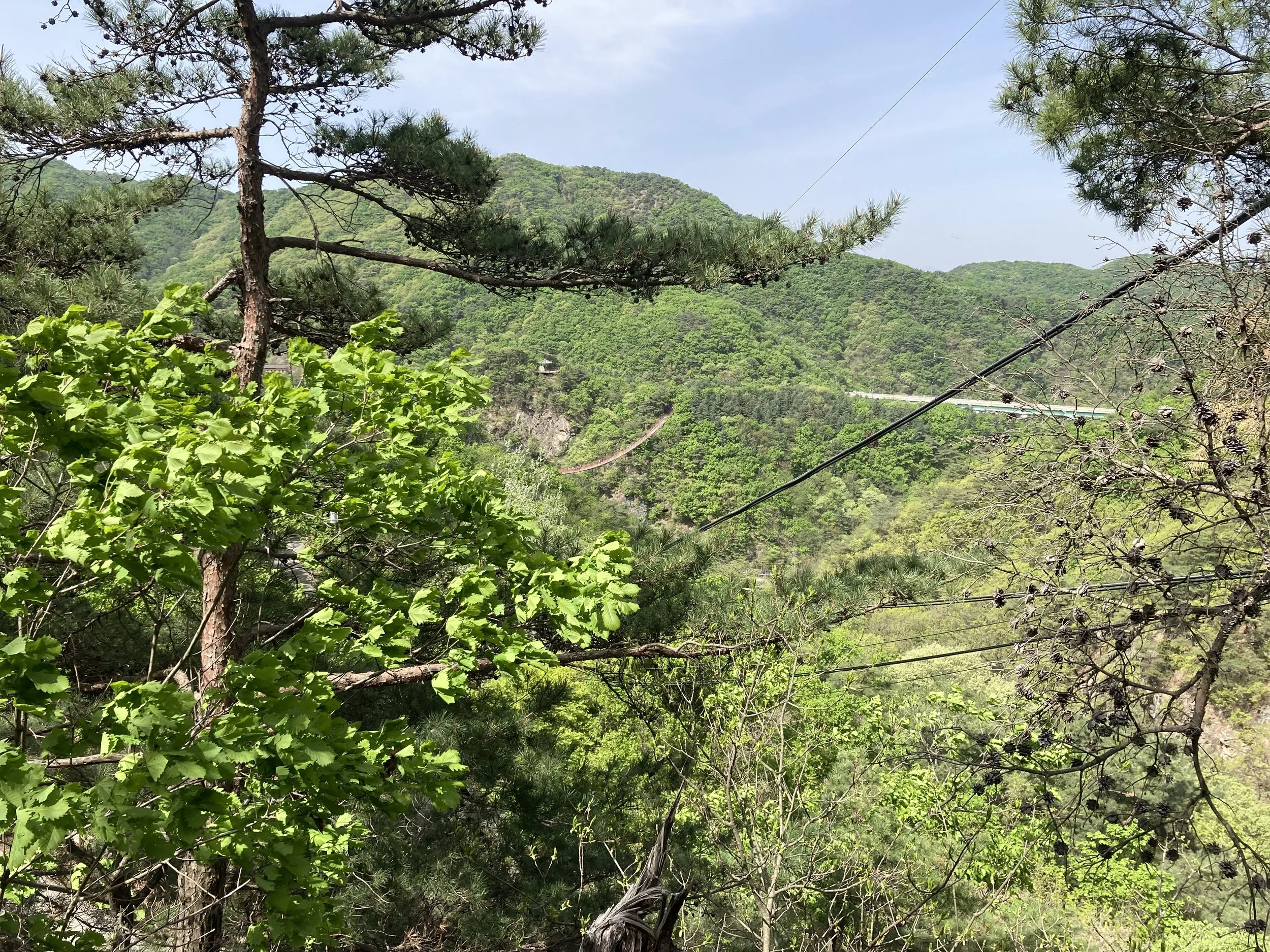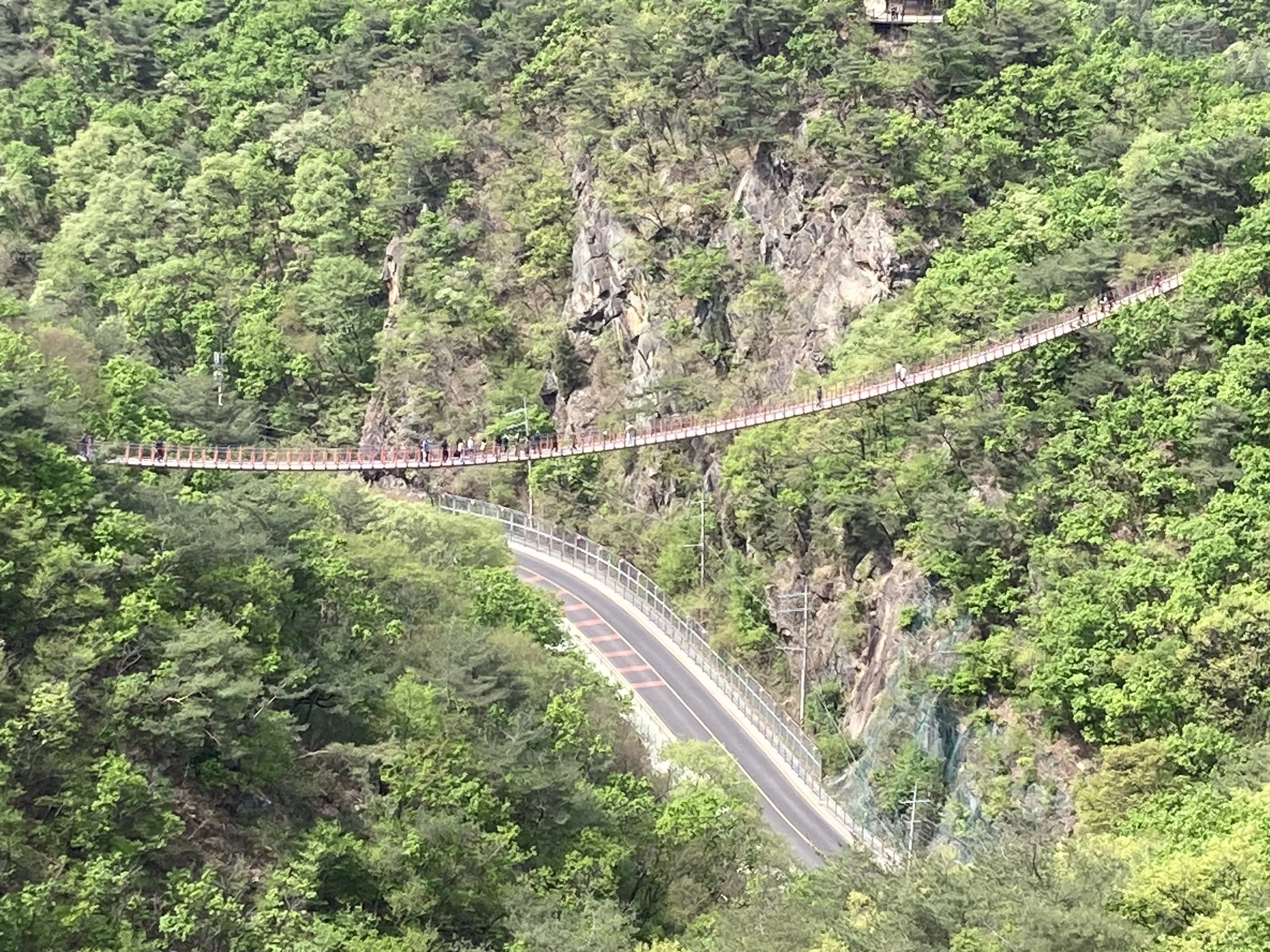 At the top of the mountain is a gazebo overlooking the suspension bridge. The bridge looks so tiny from the top. Meanwhile the mountains of South Korea are sweeping and the perfect color green. There may have been some forest bathing, but today it felt more like being charged up by the many mountains of South Korea.