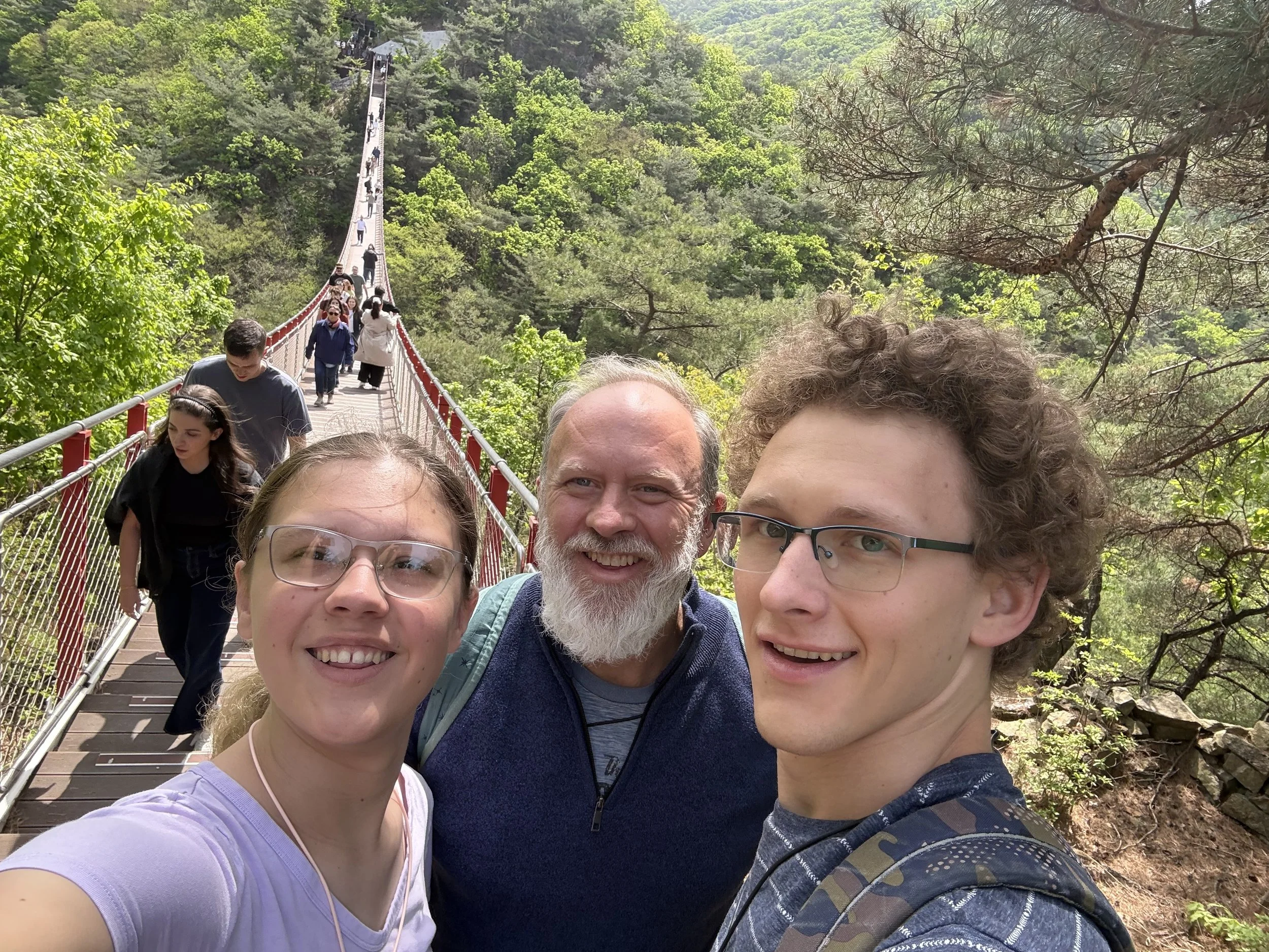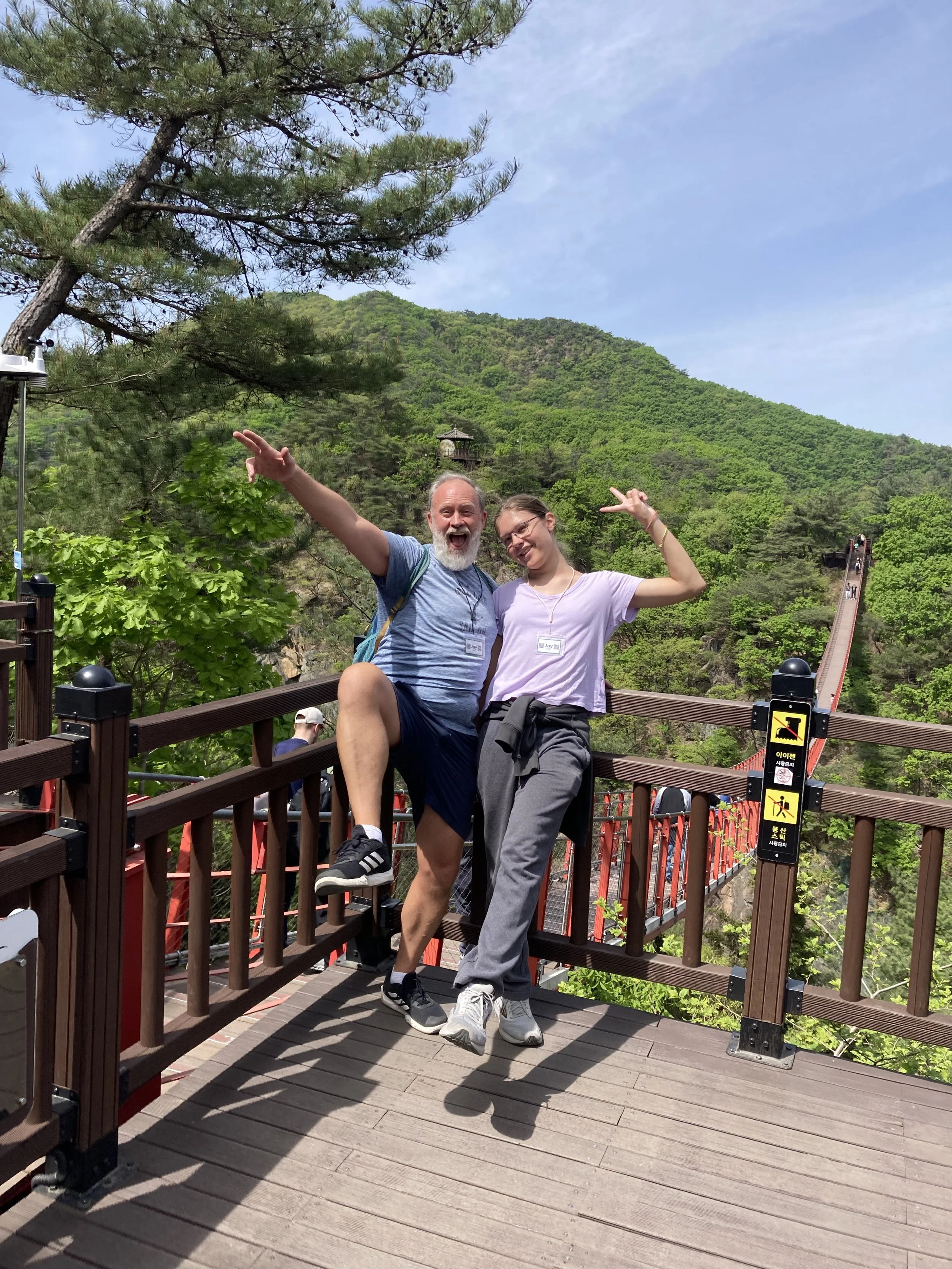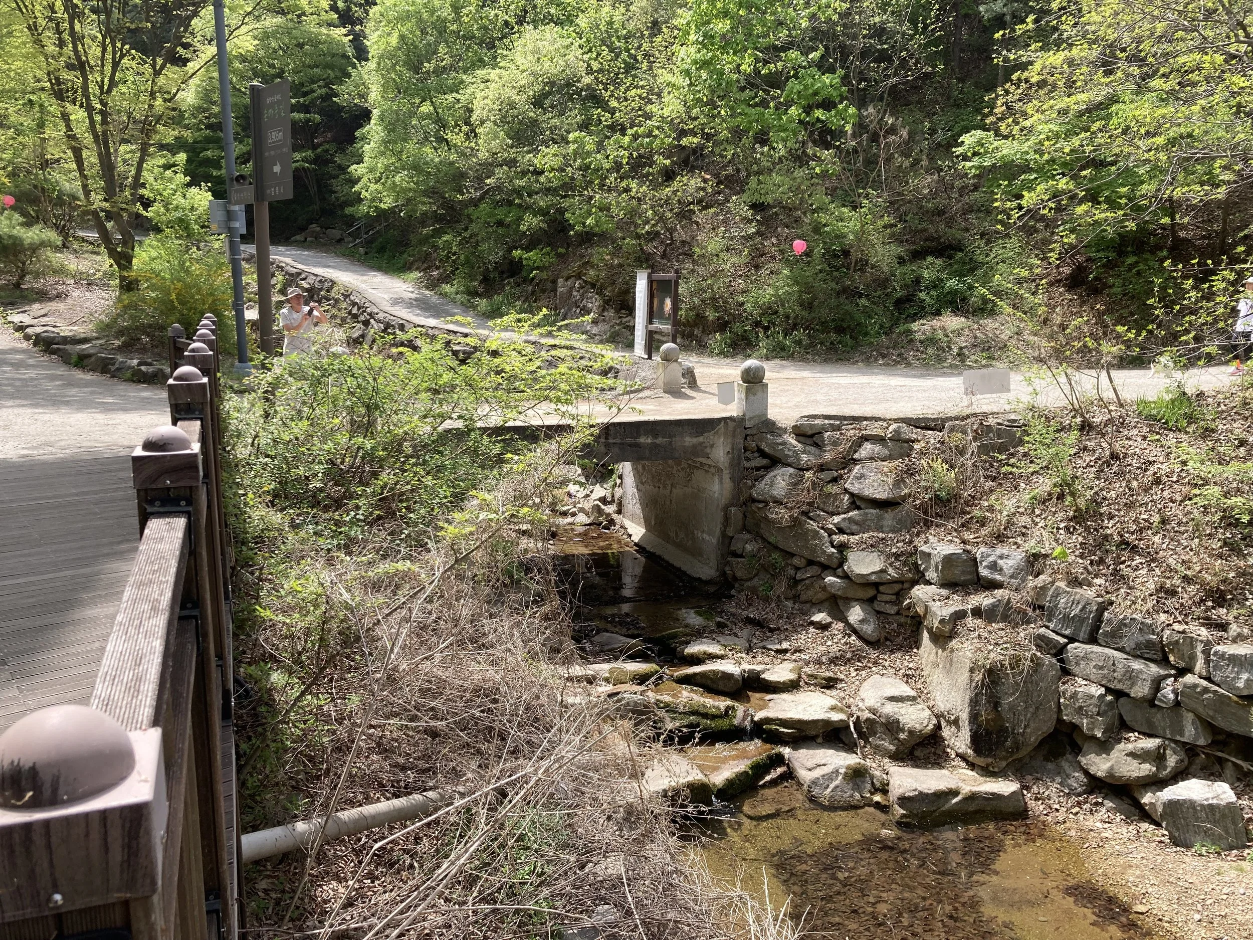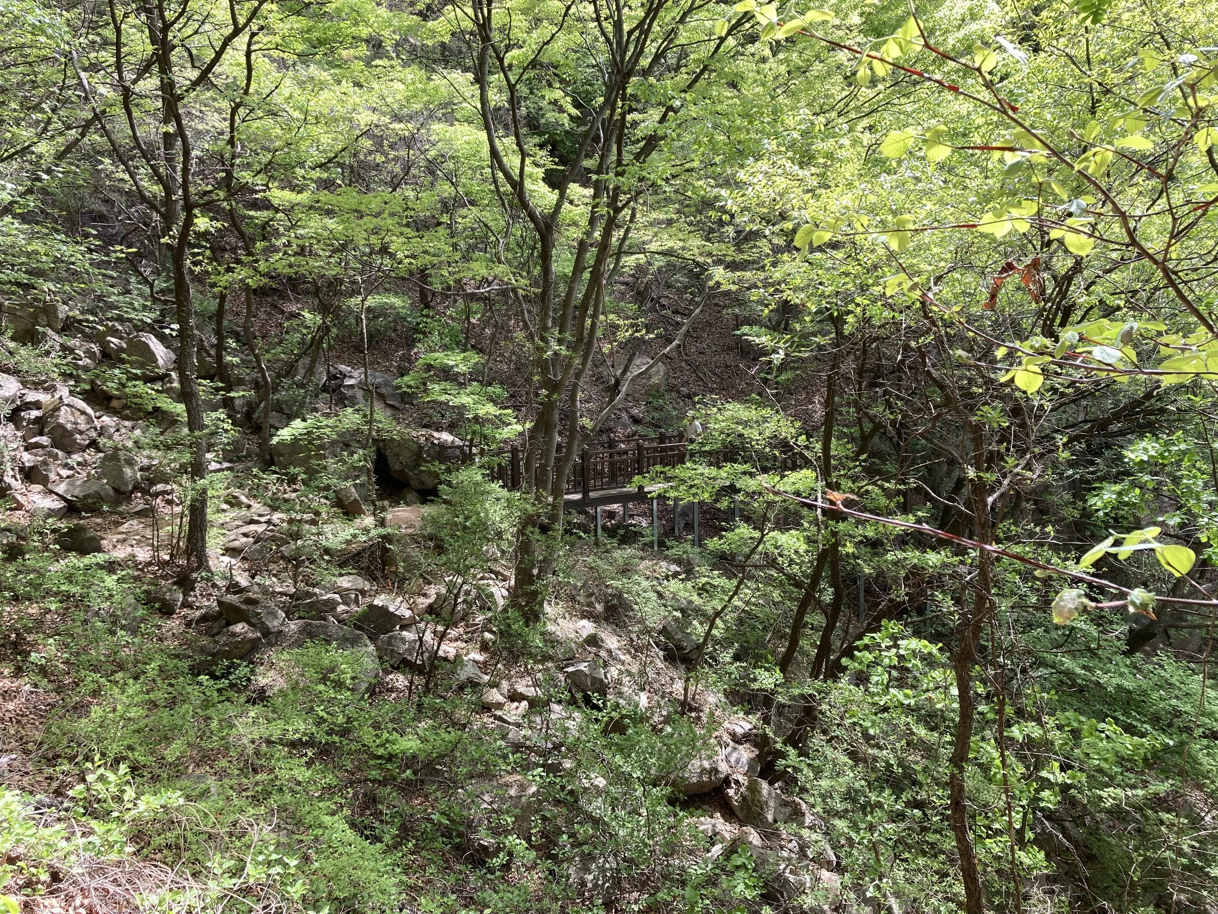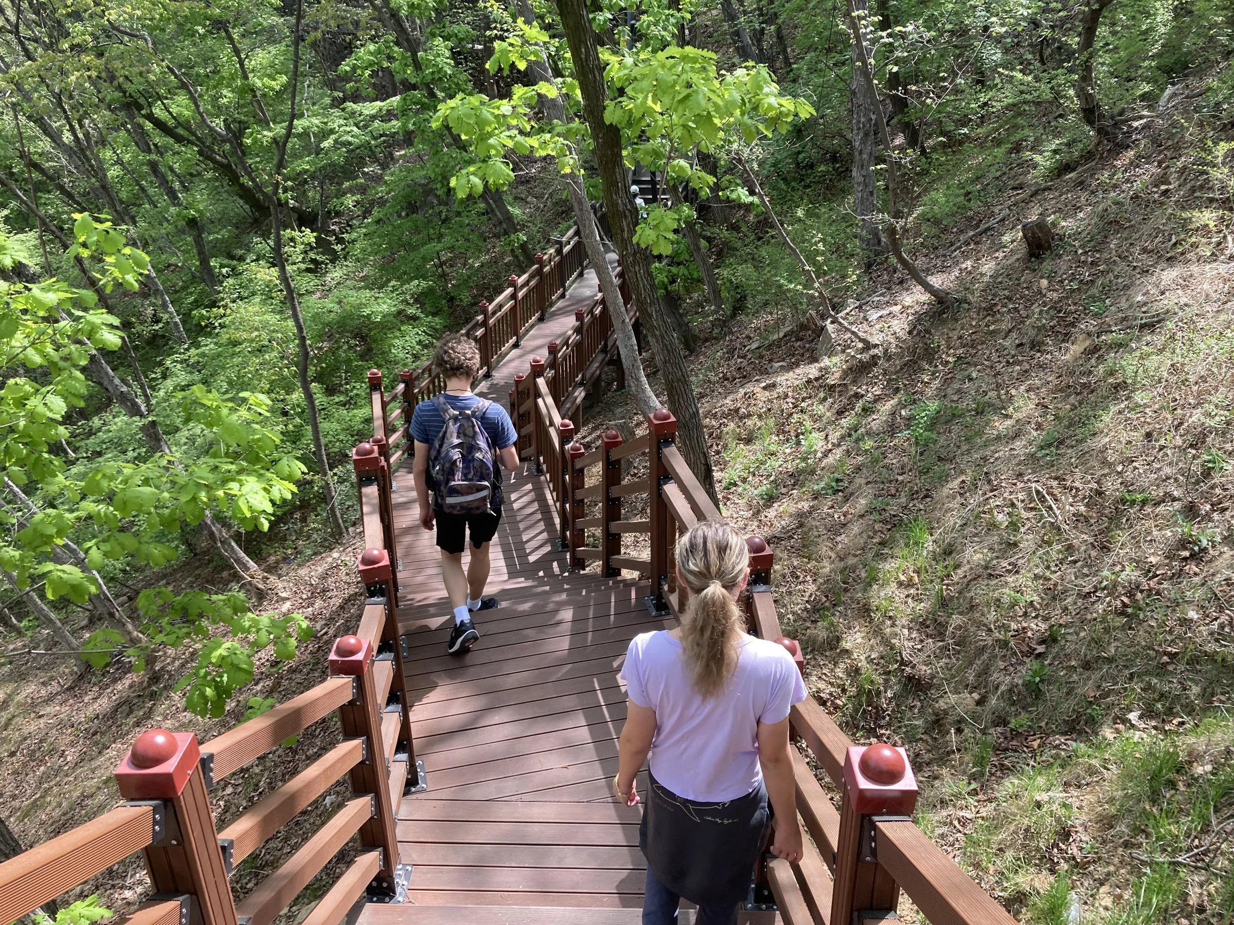 At the top of the mountain is a gazebo overlooking the suspension bridge. The bridge looks so tiny from the top. Meanwhile the mountains of South Korea are sweeping and the perfect color green. There may have been some forest bathing, but today it felt more like being charged up by the many mountains of South Korea.