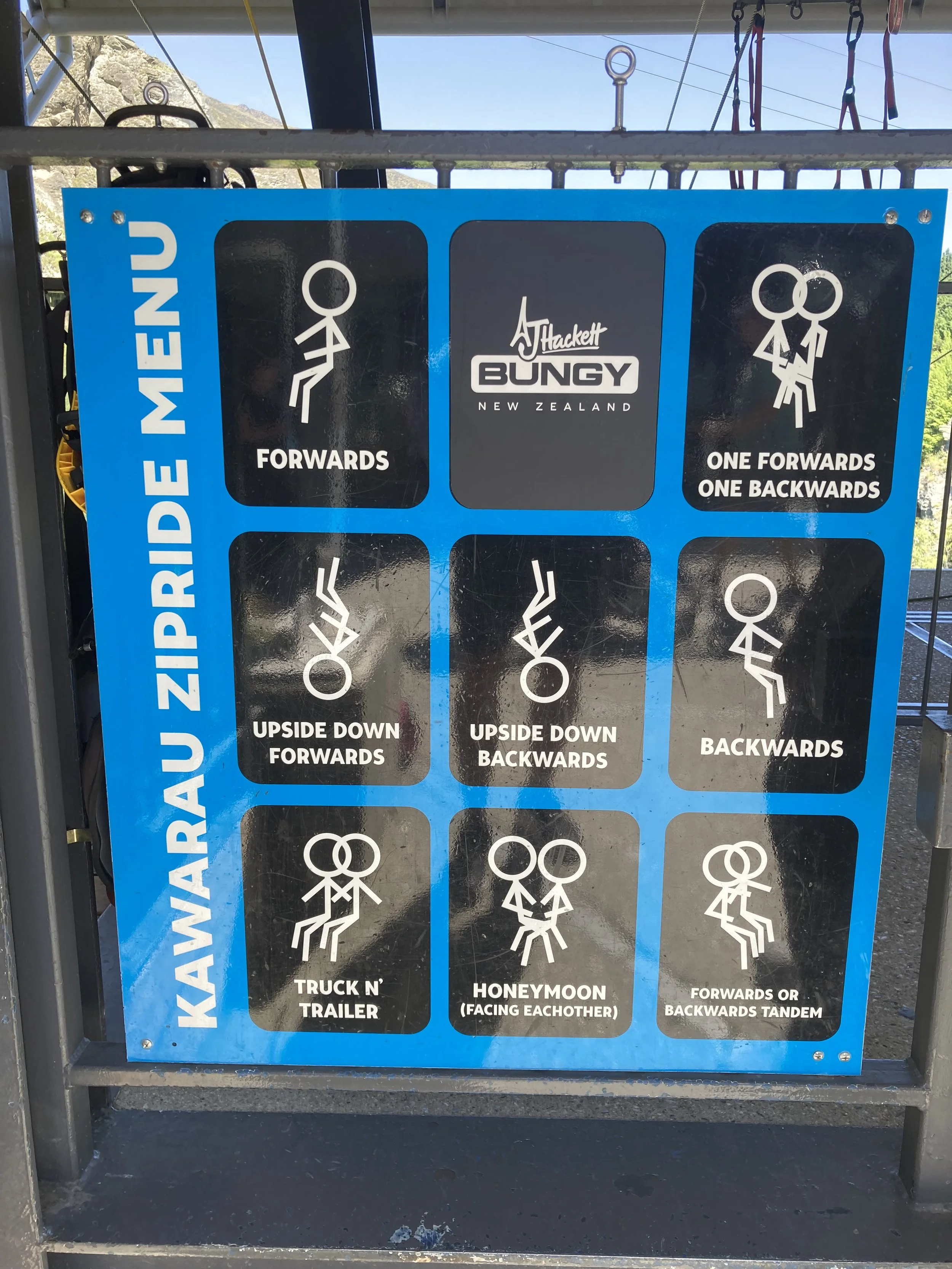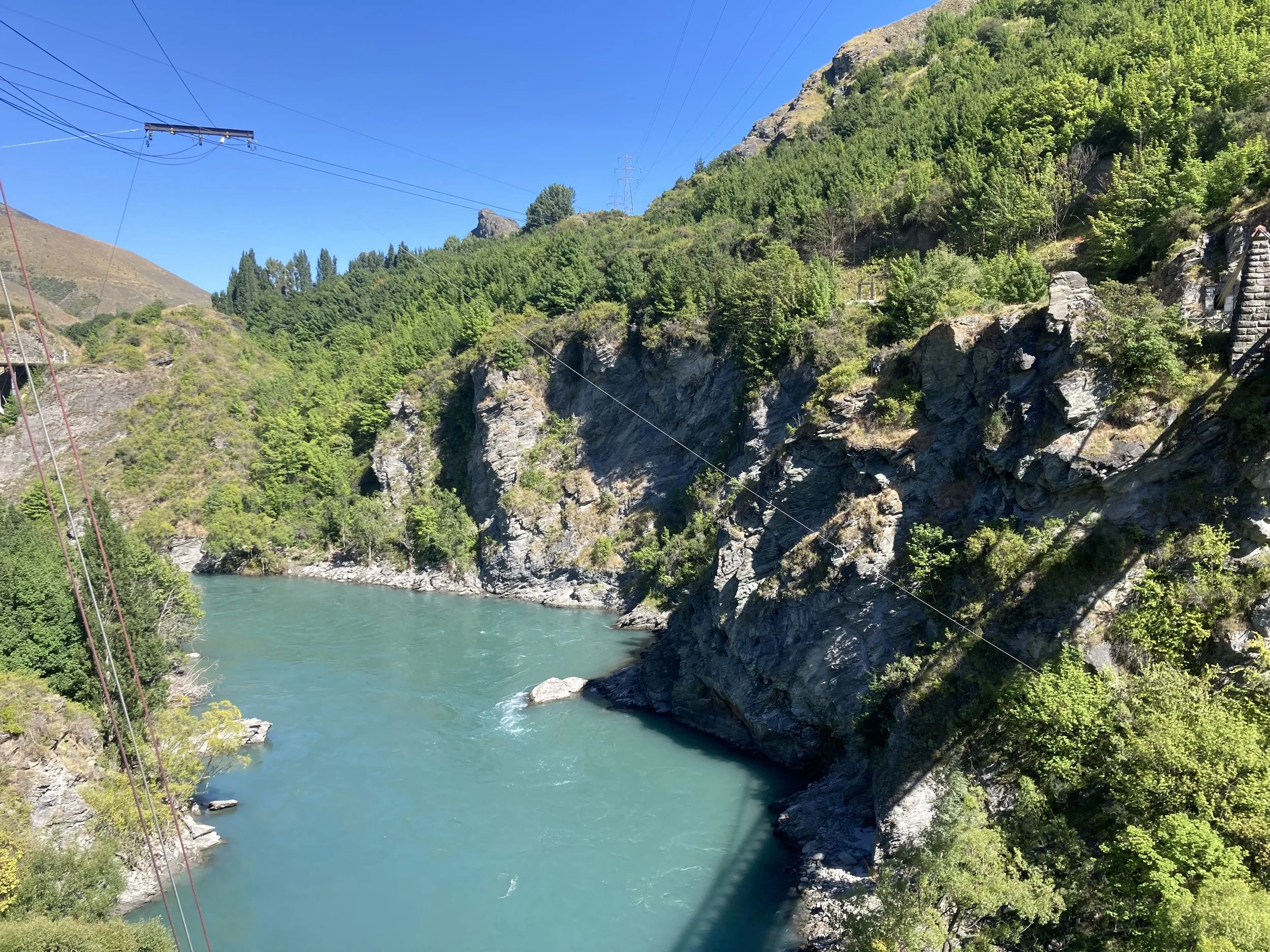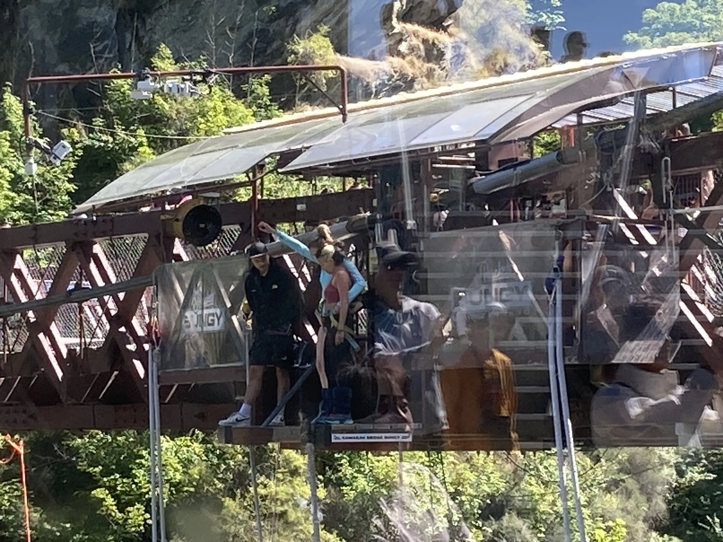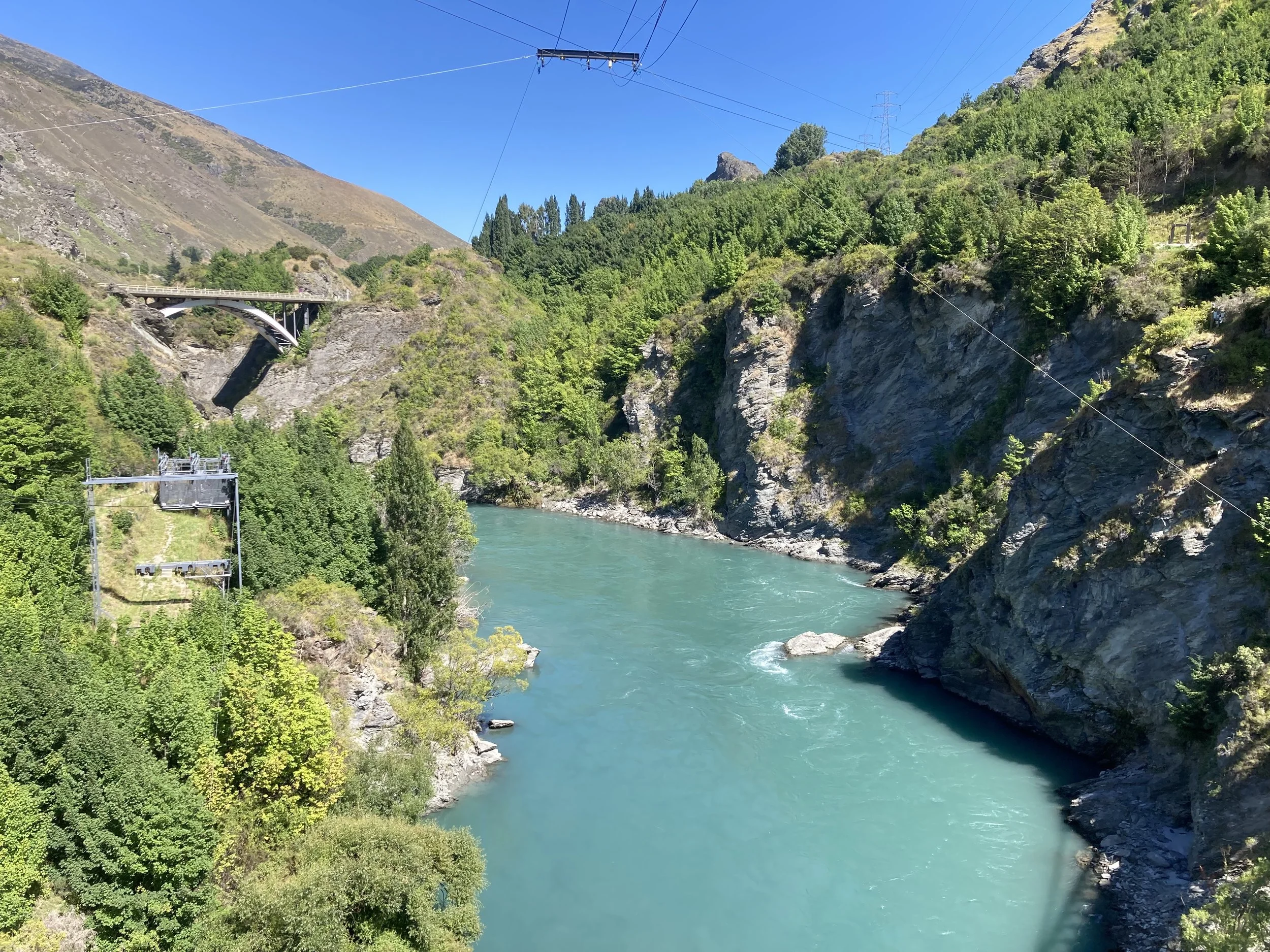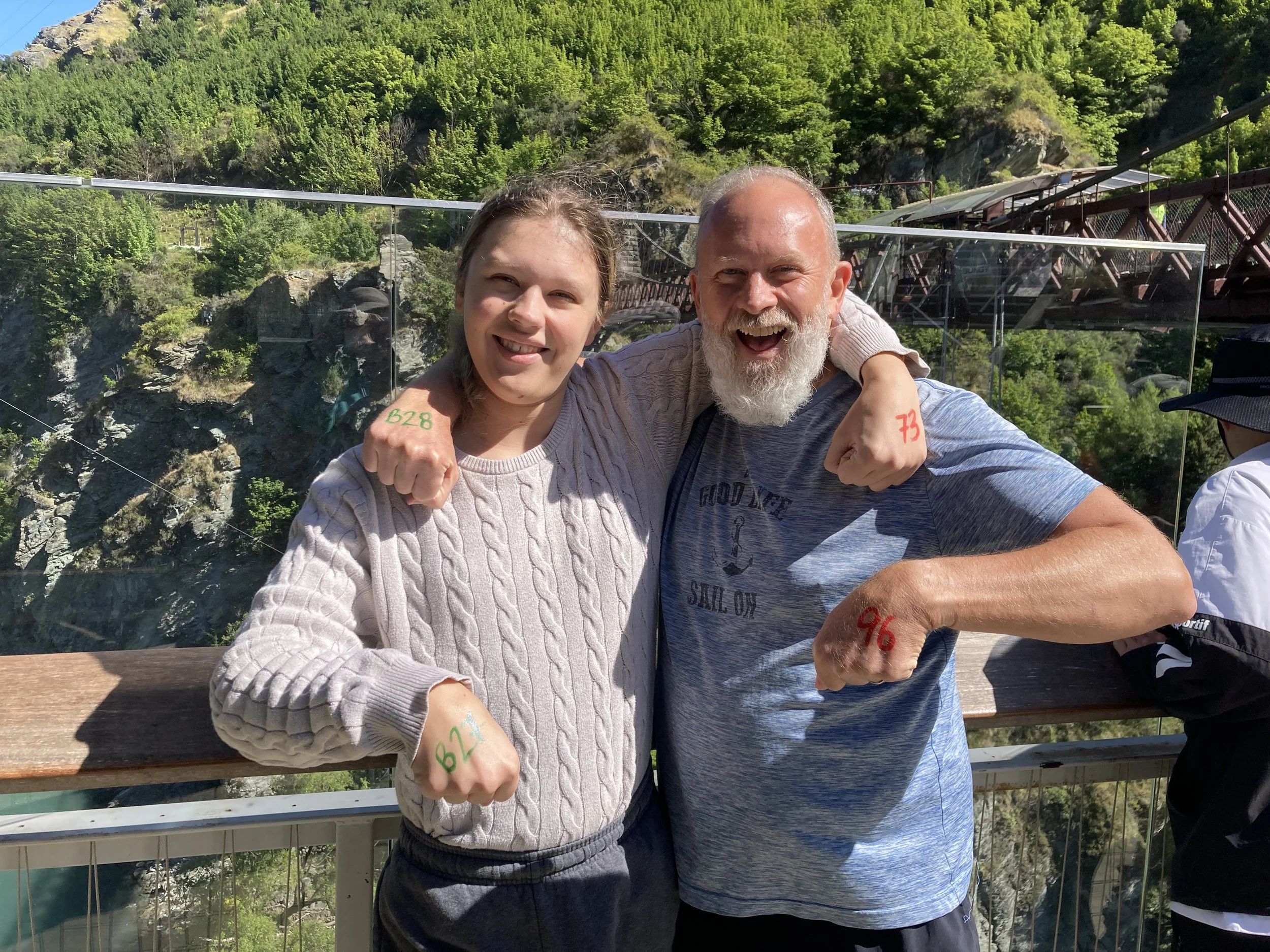 In 1988 (I was just 16 years old at the time), Hackett and Henry van Asch opened the world's first commercial bungy operation at the Kawarau Bridge in New Zealand, forever popularizing the sport of bungy jumping globally. Today, Violet and I dove from a platform hanging off the exact same bridge. Talk about doing some epic shit!