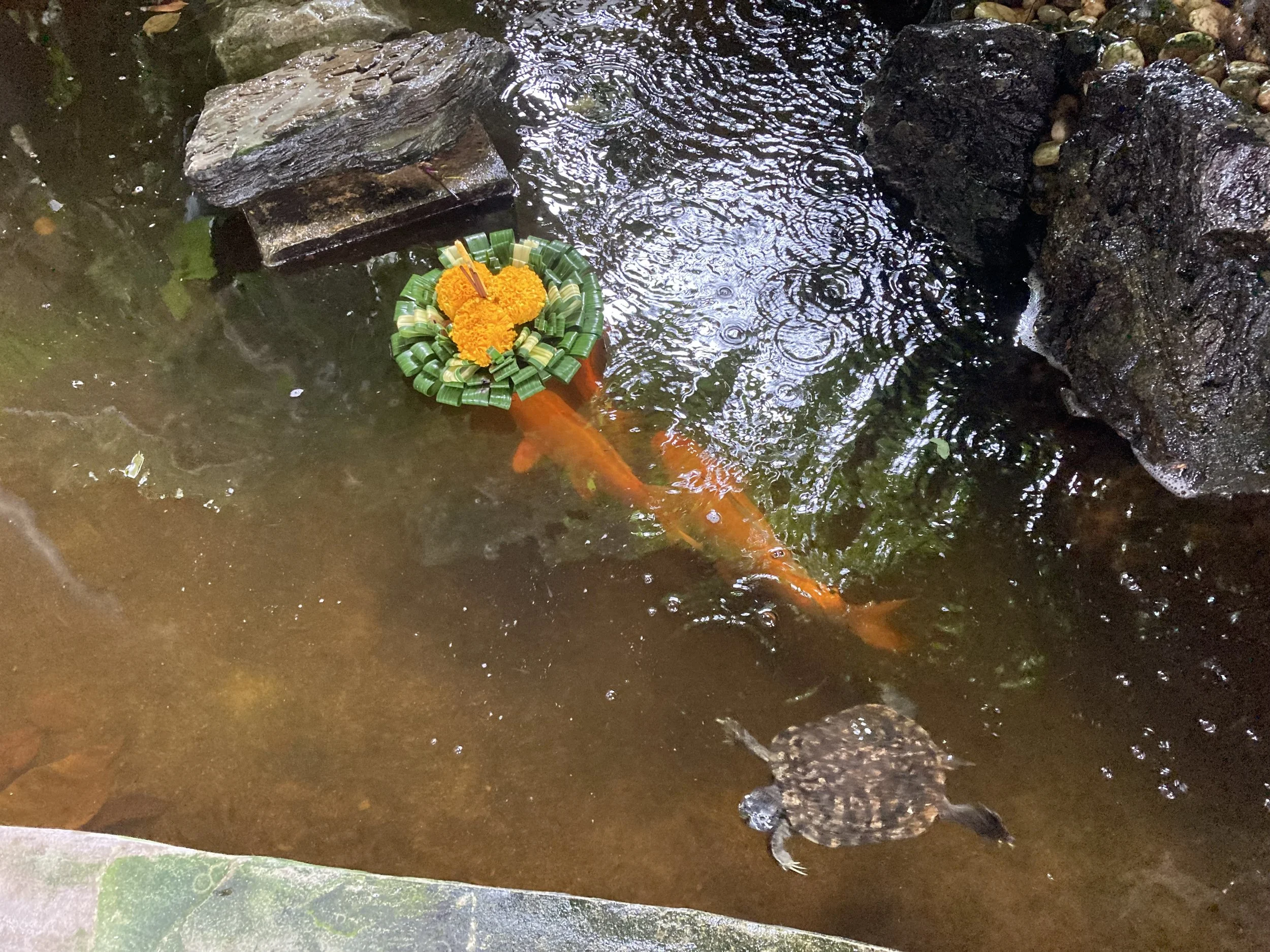 What was REALLY fun was watching a small child feed the fish. Mom and child were having a ton of fun and I was having so much fun watching the fish jump all around going for all the food in the water. I’ve really enjoyed my stay here. The name of this hotel is Feung Nakorn Balcony. It has everything. It’s close to everything. I’d highly recommend staying here again. Love it.