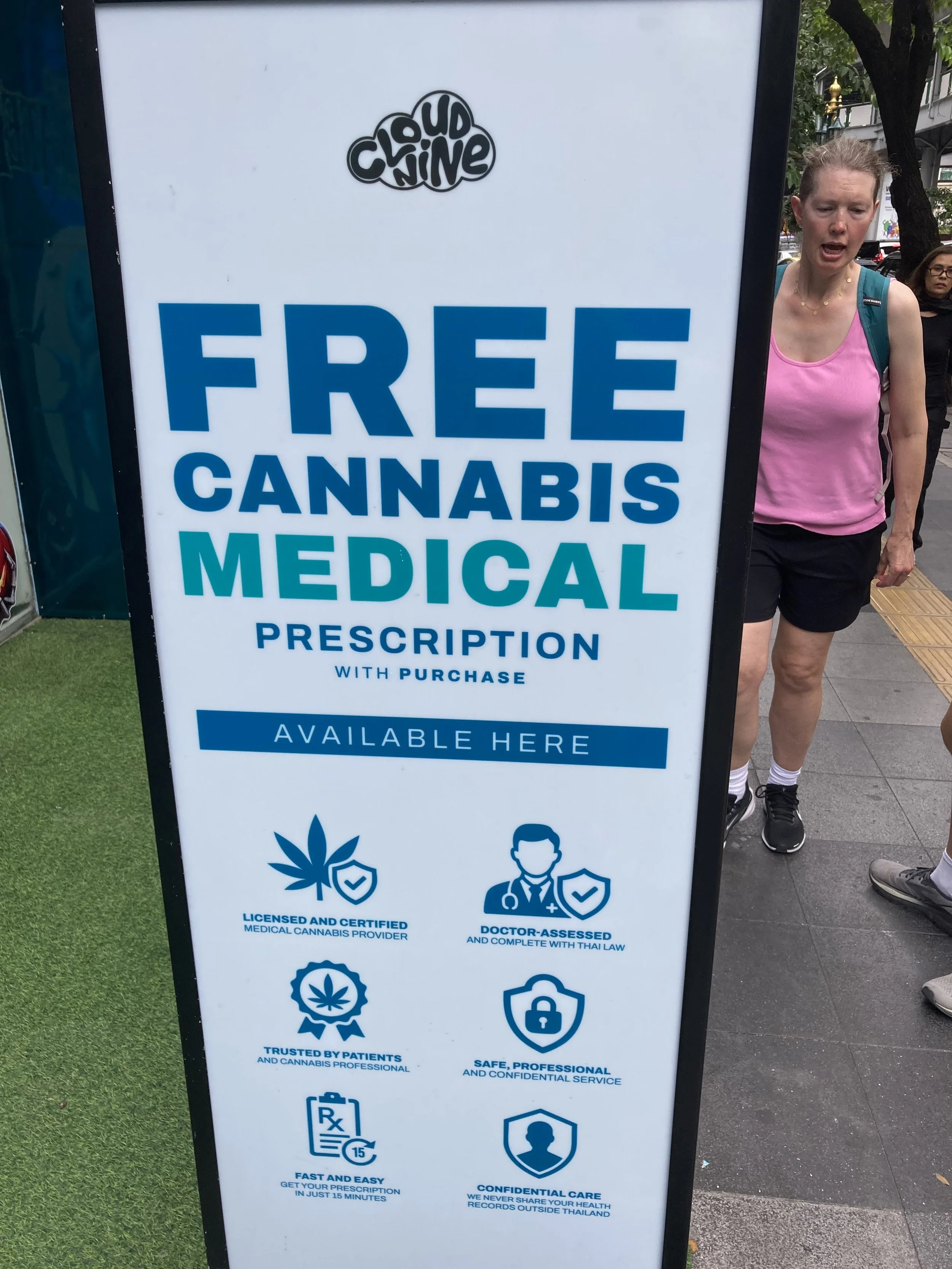 It seems that Thailand’s “Medical Marijuana” is essentially recreational for anyone who wants it according to this sign anyway. It seems you go in, select what you want to purchase and then “check in” with a doctor as part of our purchase experience and get a prescription as part of the purchase process. This is where Capitalism leads us and for profit healthcare. Wonder where else this will show up in the future?