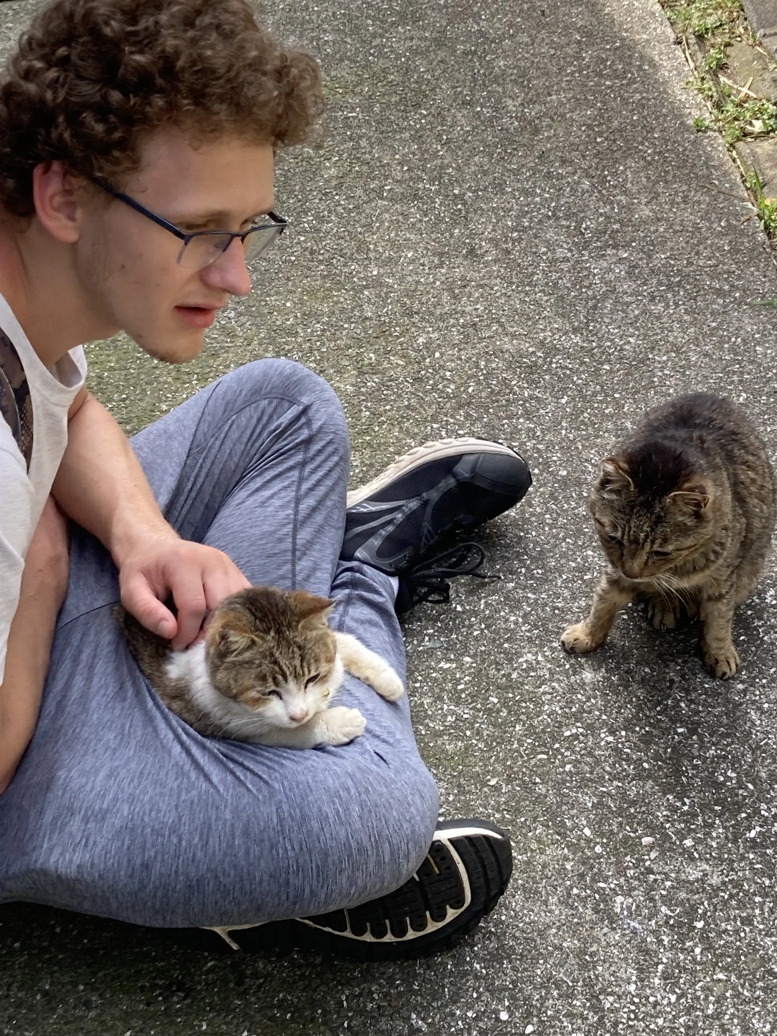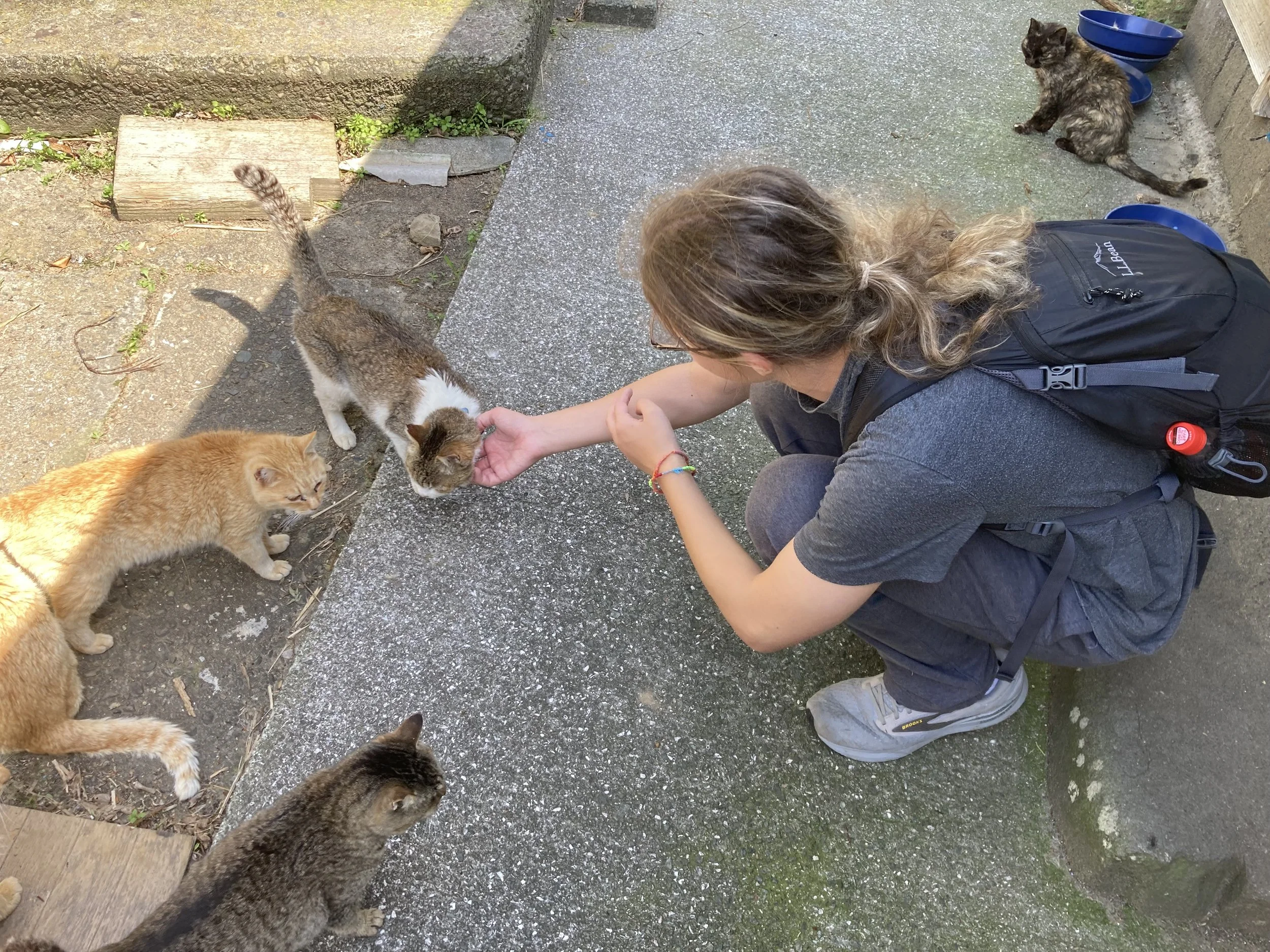 Today, Will, Violet and I went out of our way to visit “Cat Island” in Japan. Technically, the island is called Aoshima, Japan, but to this day, the number of cats out number the residents. When Will had decided to join us on this World Tour, this was his top request. Specifically, that when we were visiting Japan, we make a special trip out to see cat island and today we made it happen.