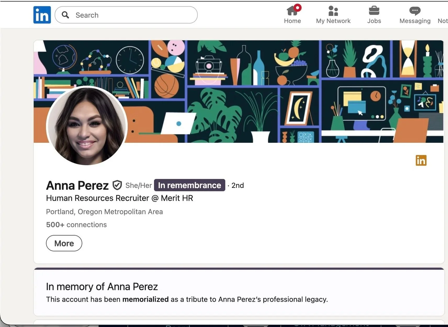 I’m happy to report that LinkedIn responded to the reports that both Danika and I shared with them and as of today, the account has been marked “In Remembrance.” See for yourself.