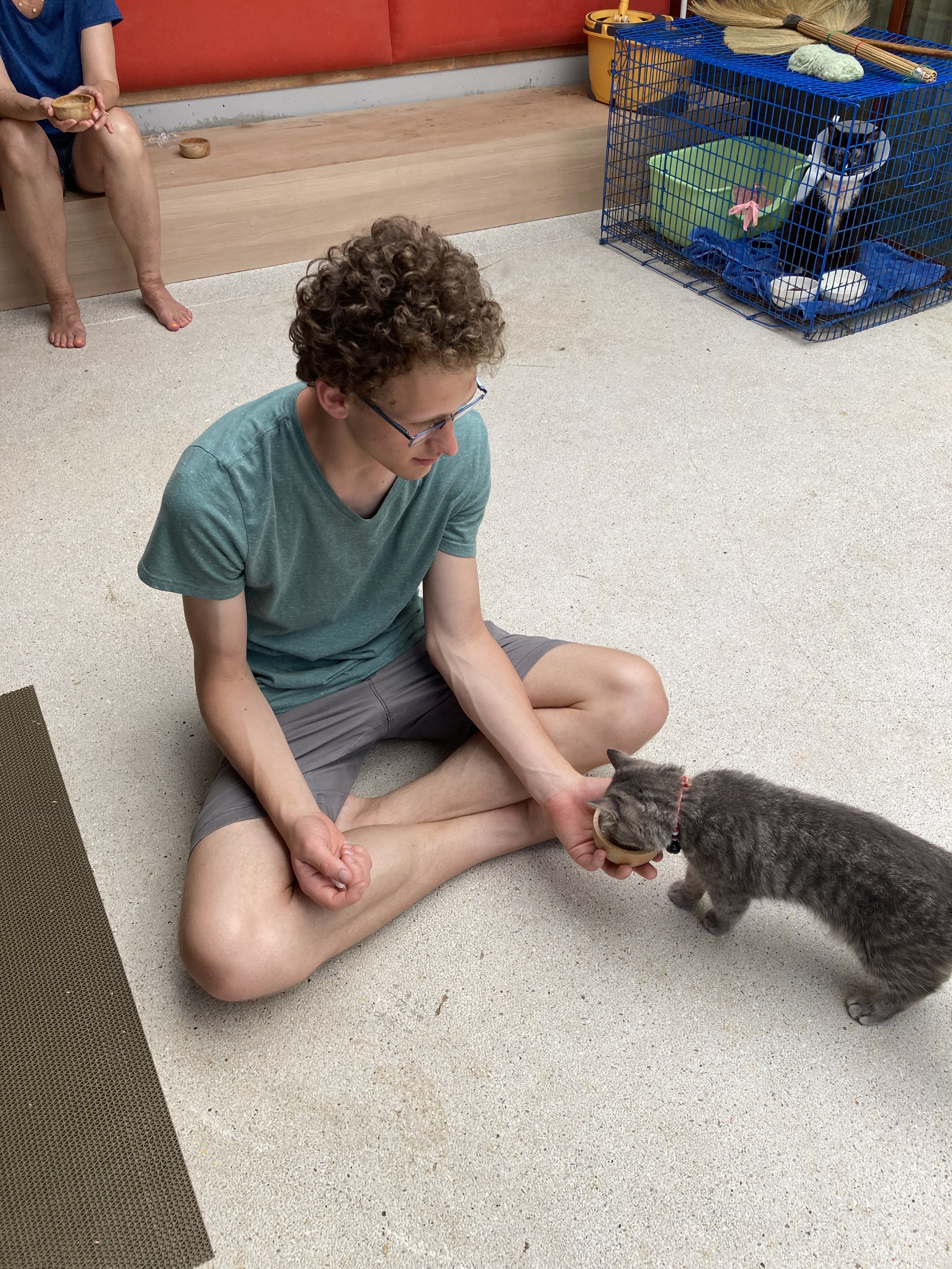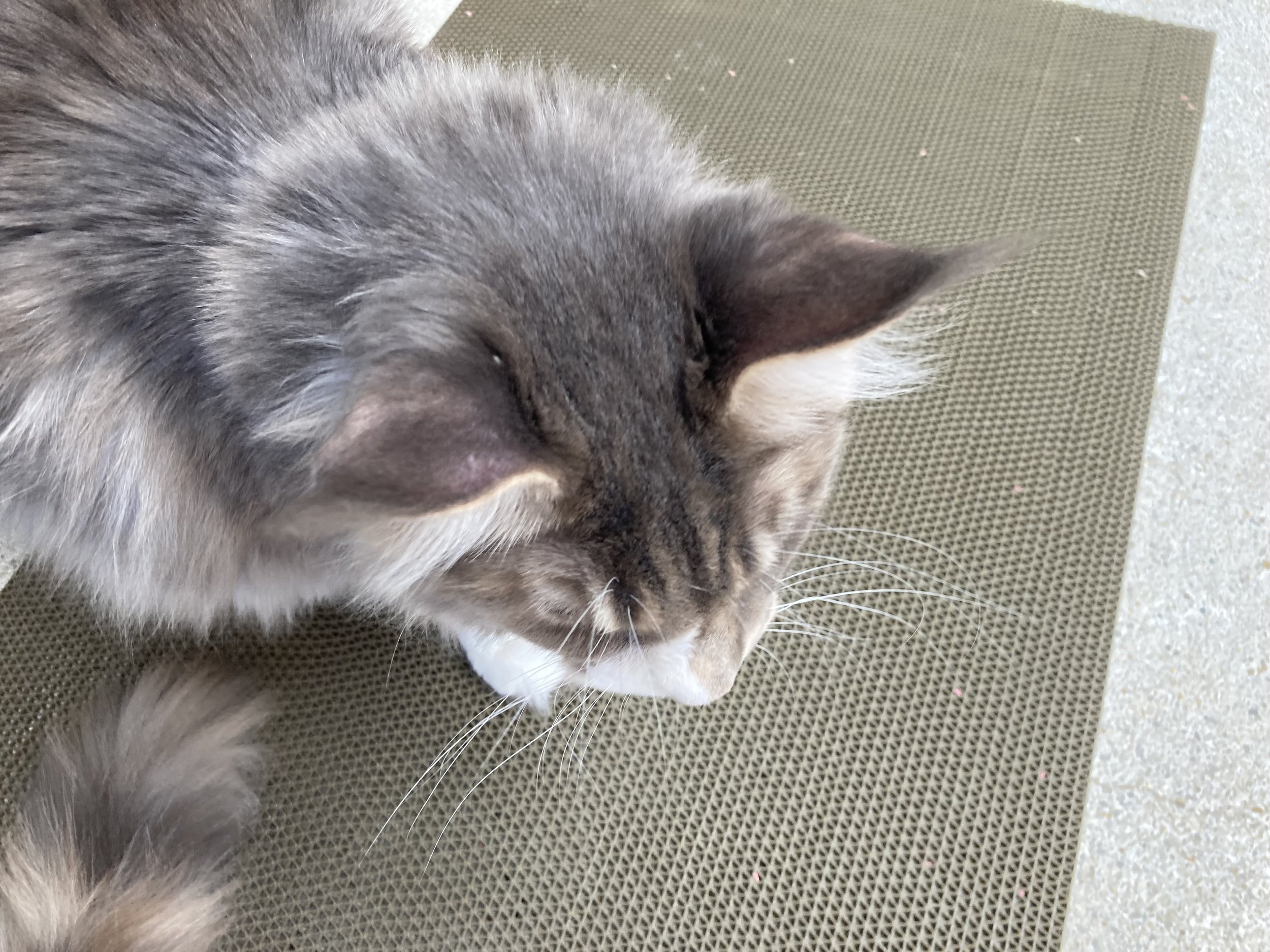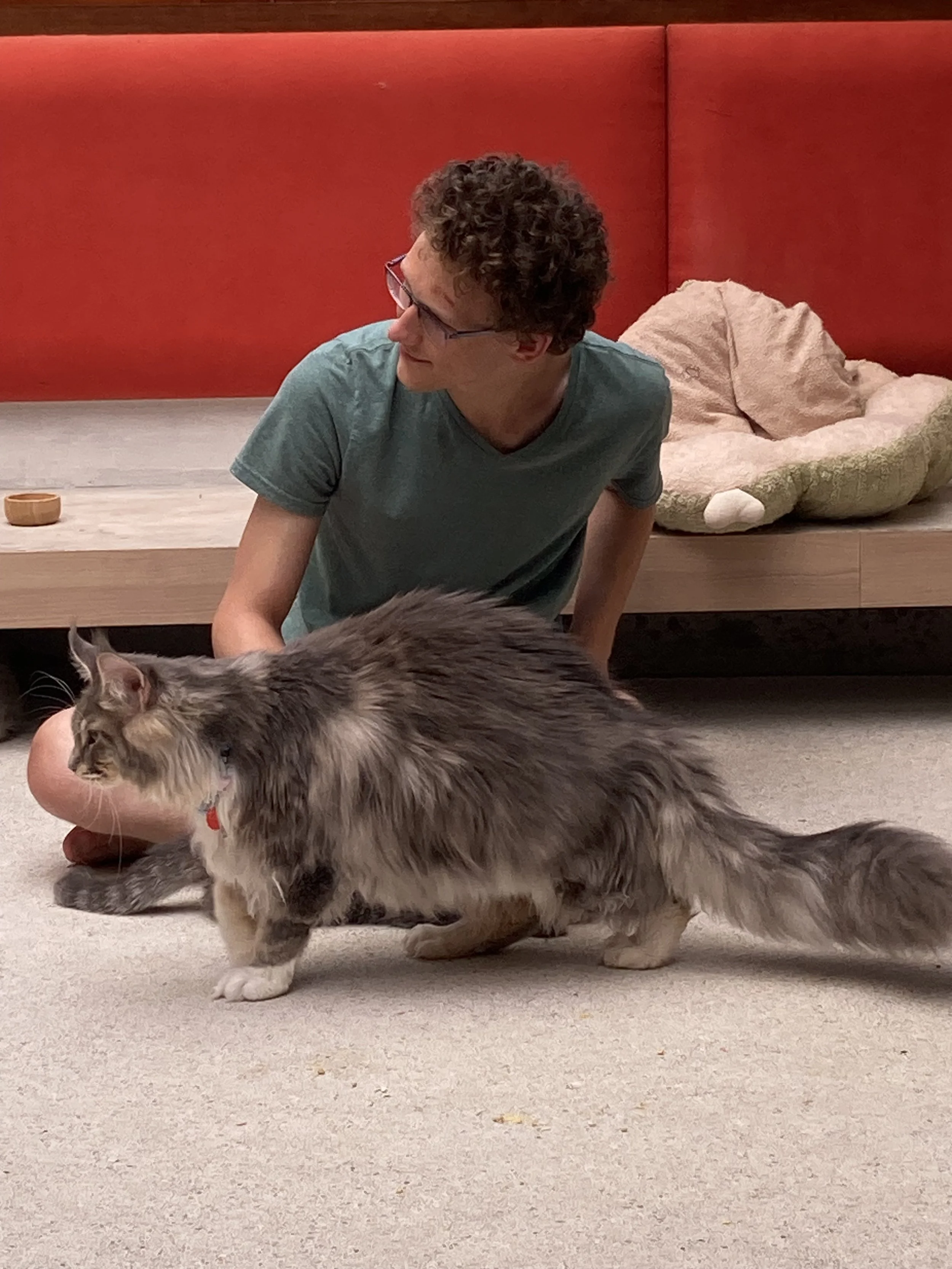 I think maine coons are fascinating. Relative to other house cats, they are HUGE. They tend to be long hairs and big animals. They were friendly enough and enjoyed snuggling up to us once we arrived. We didn’t pull out the treats right away and they seemed to be fine with the affection (even without the food as incentives).