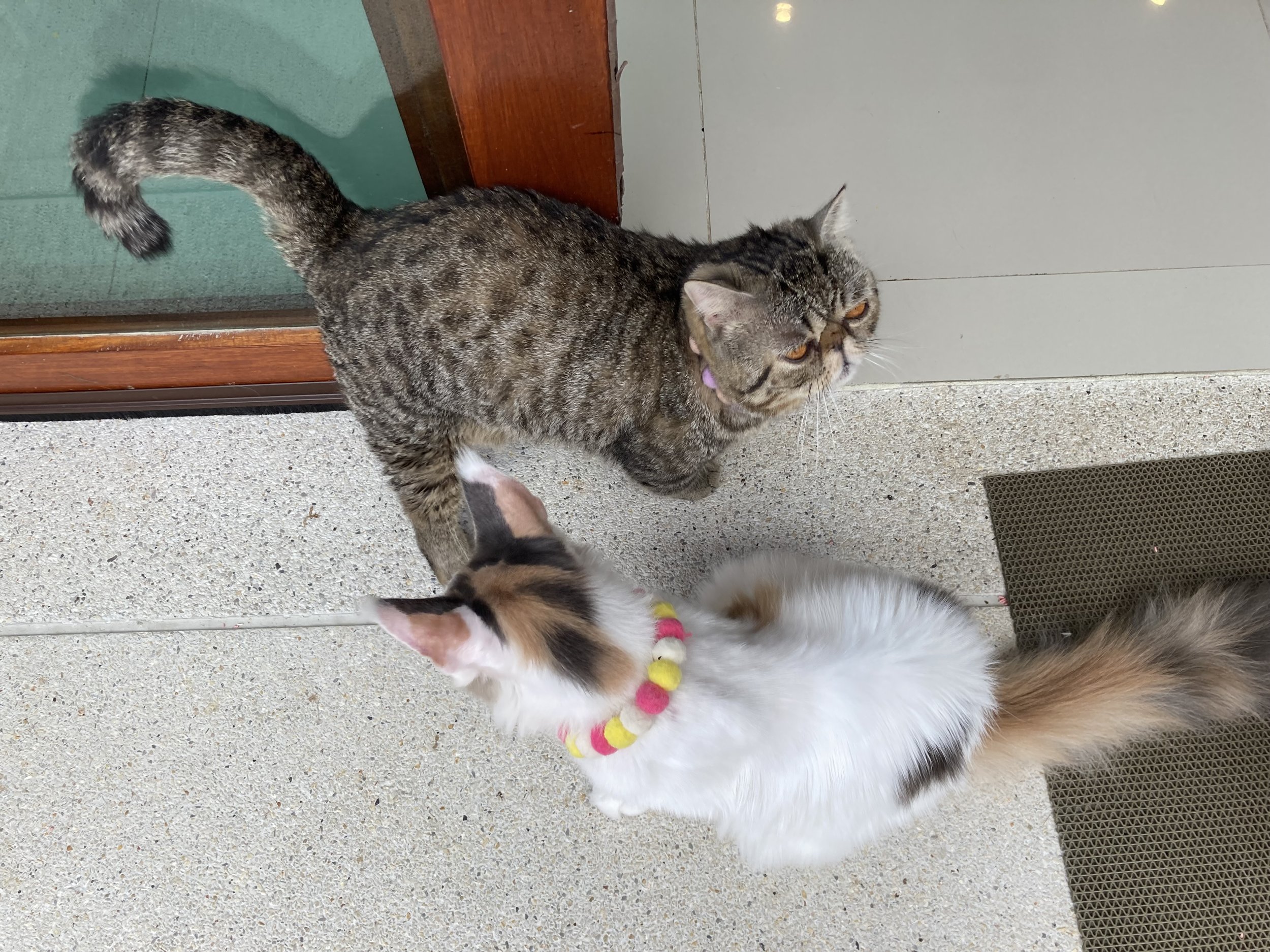 Violet enjoy another maine coon that looks more like Leo