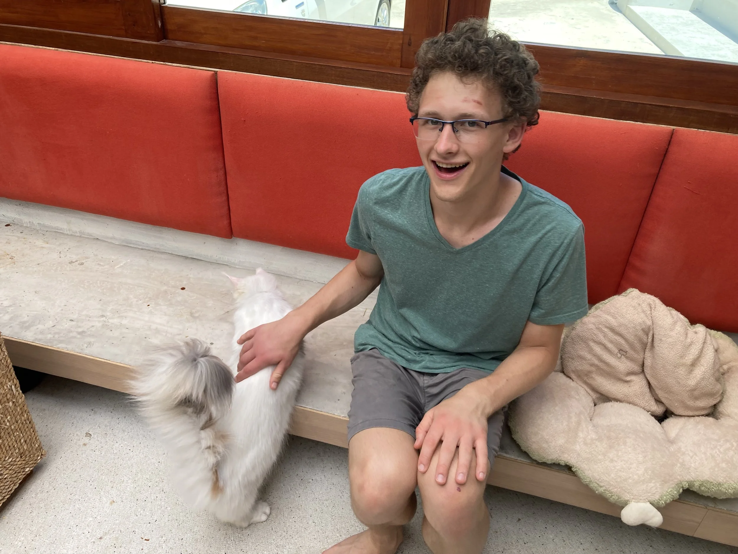 Our cat Leo is great, but only recently has he warmed up to sitting in laps. Before that, he’d “coincidentally” be in the same room with you and tolerate occasional affection. As he’s gotten older, he’s become more affectionate and he’s part of the family. Now, as the whole family is here in Phuket, Thailand, we miss Leo and cat cafes give us some of the parts we miss about cat ownership.