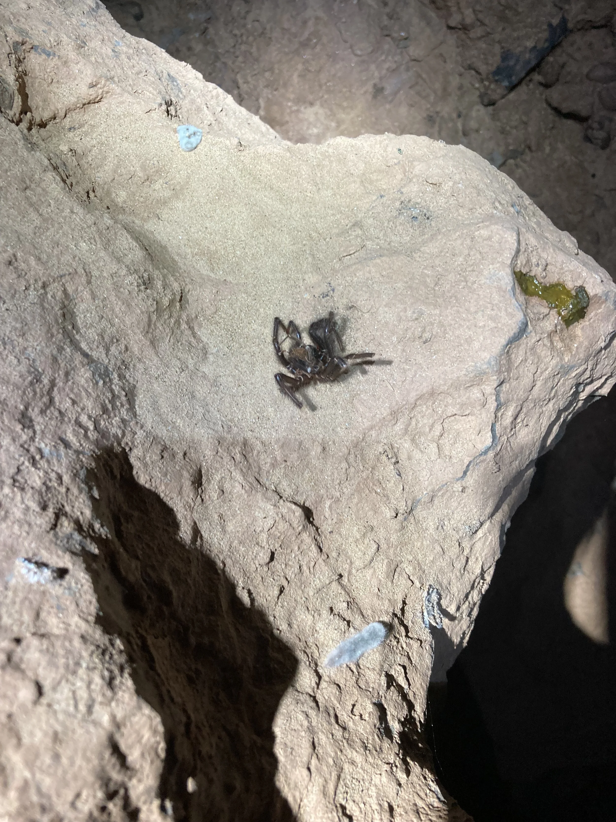 We also discovered a few cave crickets, spiders and smaller centipedes making their way though the sand floor. There were also several mushrooms that looked like Dinosaur eggs (and were extremely poisonous).