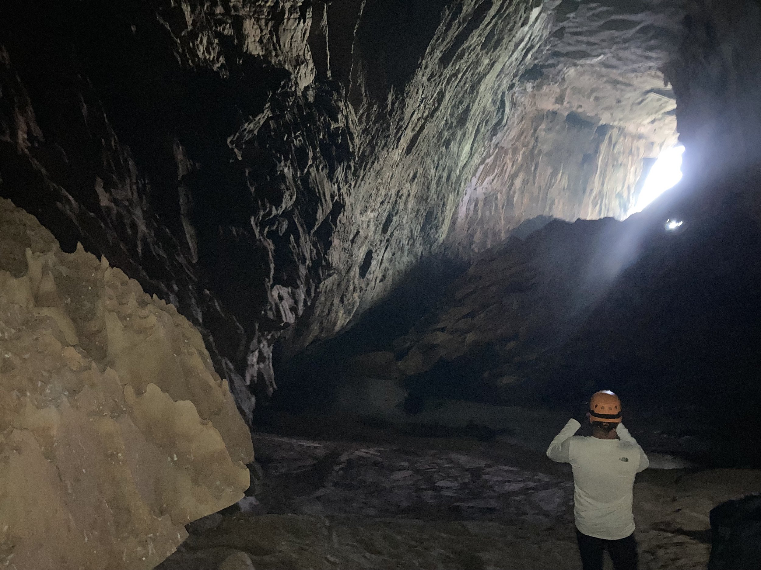 Once we completed the geological exhibition part of our trek, we ended up at another giant mouth of the cave which might have been an alternative entrance. This part of the climb perfectly positioned us to have our pictures taken with an epic looking backdrop. Clearly, the guides knew the spot and how to take the best pictures using a combination of light from the headlamps and intentional shadow.