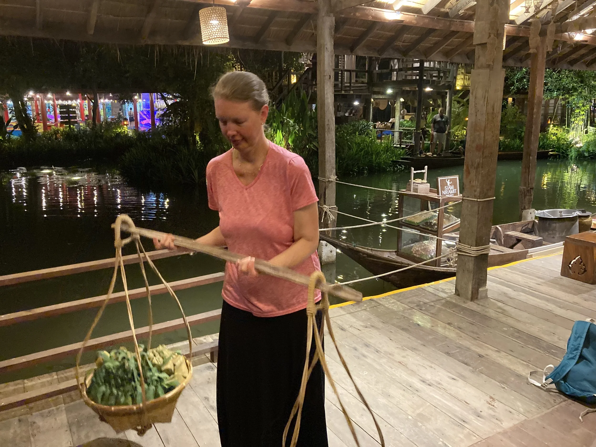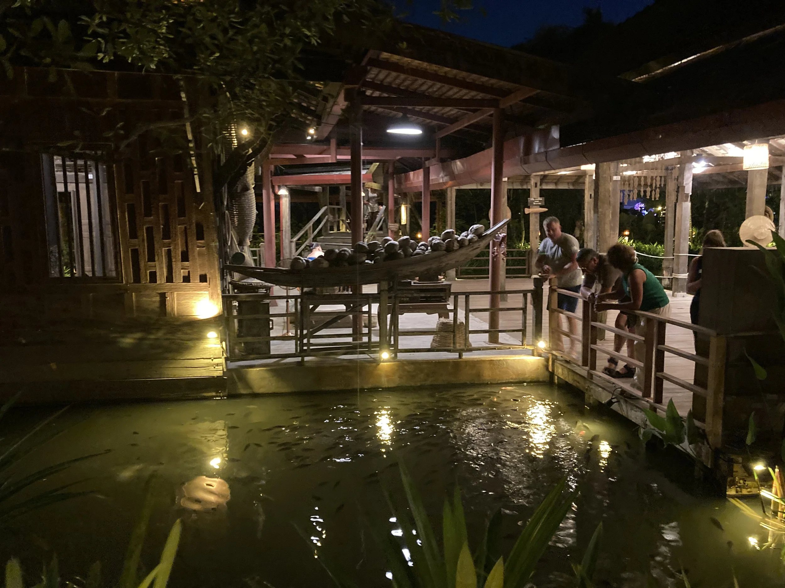 Siam Niramit is one part restaurant, one part Thai Theater, one part theme park and one part zoo. Imagine if you combined a historical walk through with live animals and an acrobatic performance while having a buffet dinner. It’s all the things wrapped into one powerhouse evening event. Good call, Claire!