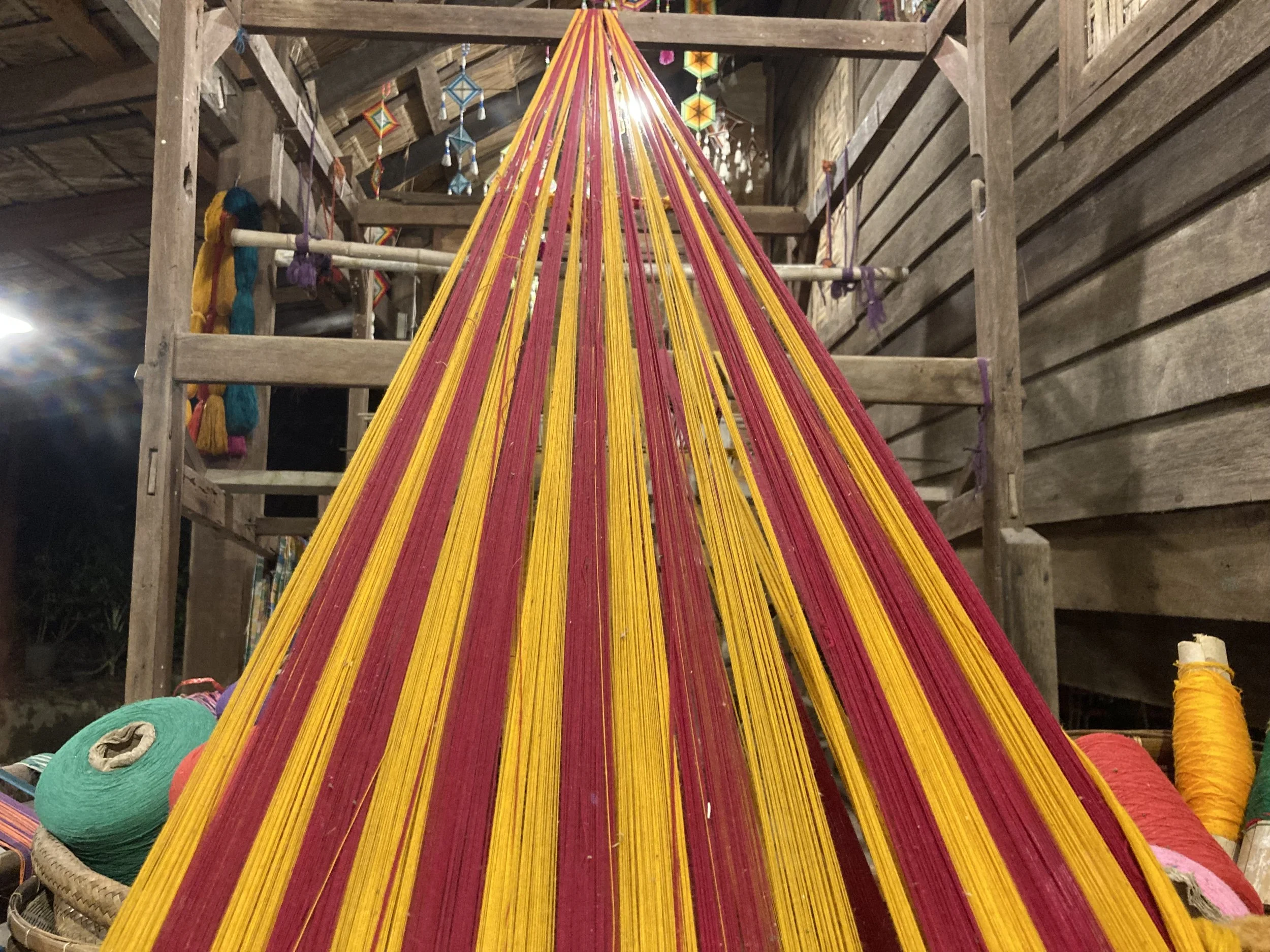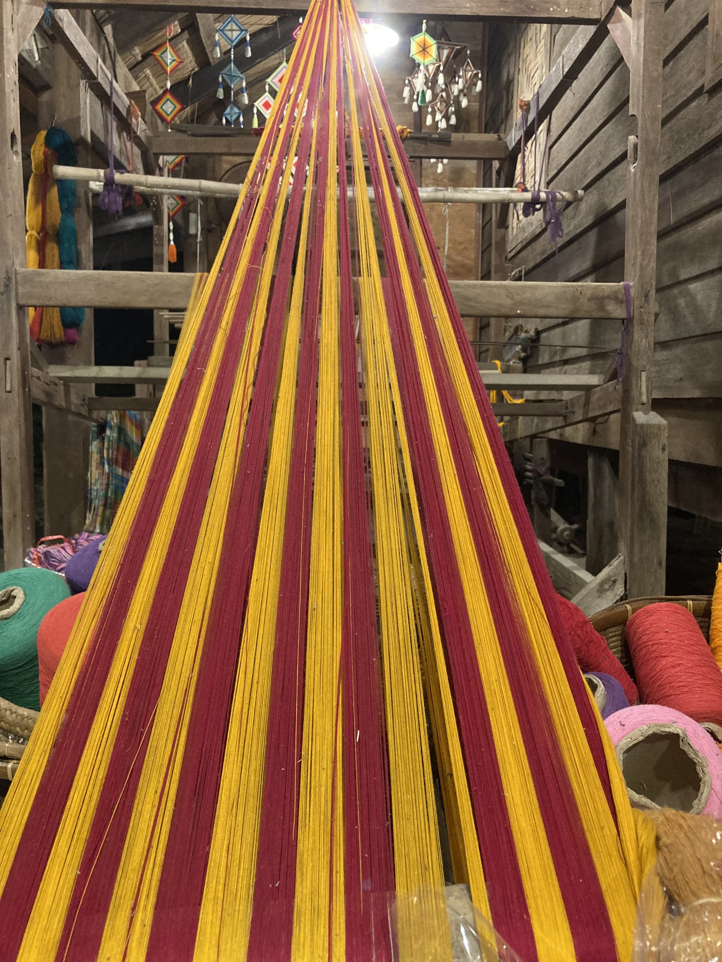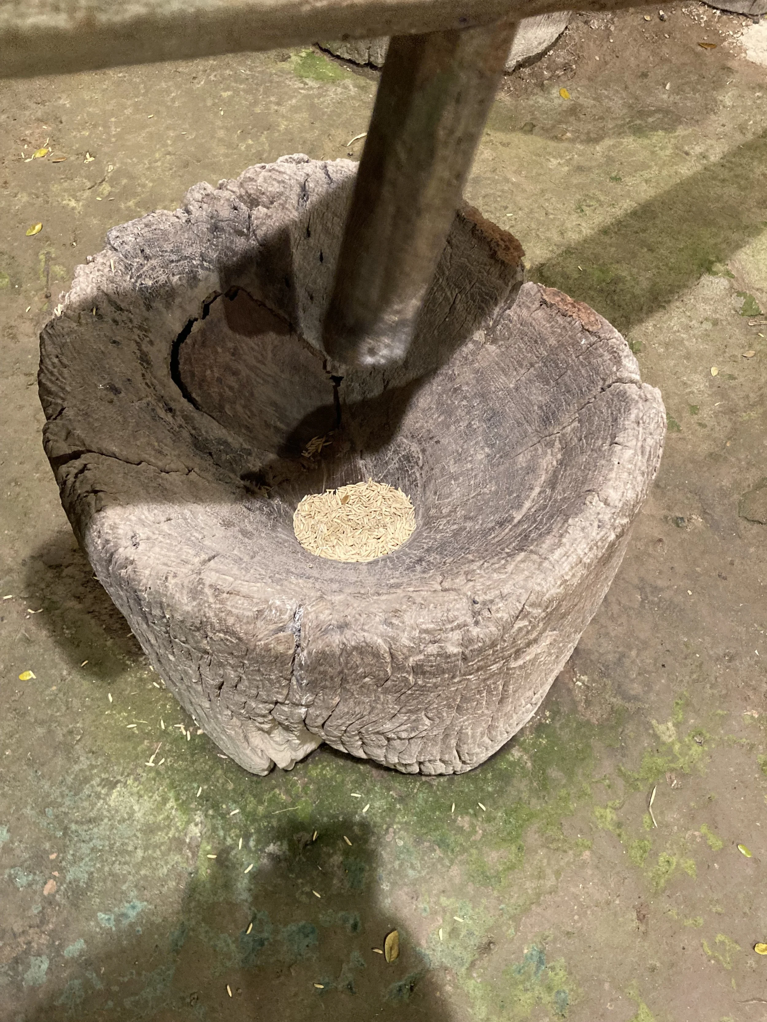 After the boat ride, we poked around the rest of the shops including some of the exhibits that showed how the silk was made and then woven into various materials. Violet was fascinated by the use of an early seahorse to break up and even grind up various grains.