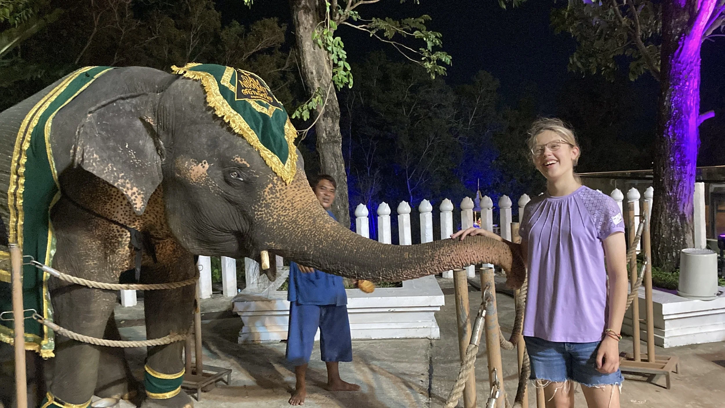Once the elephant had received all the cucumbers from Violet, it was trained to hold out its trunk for a picture. Which I gladly took.