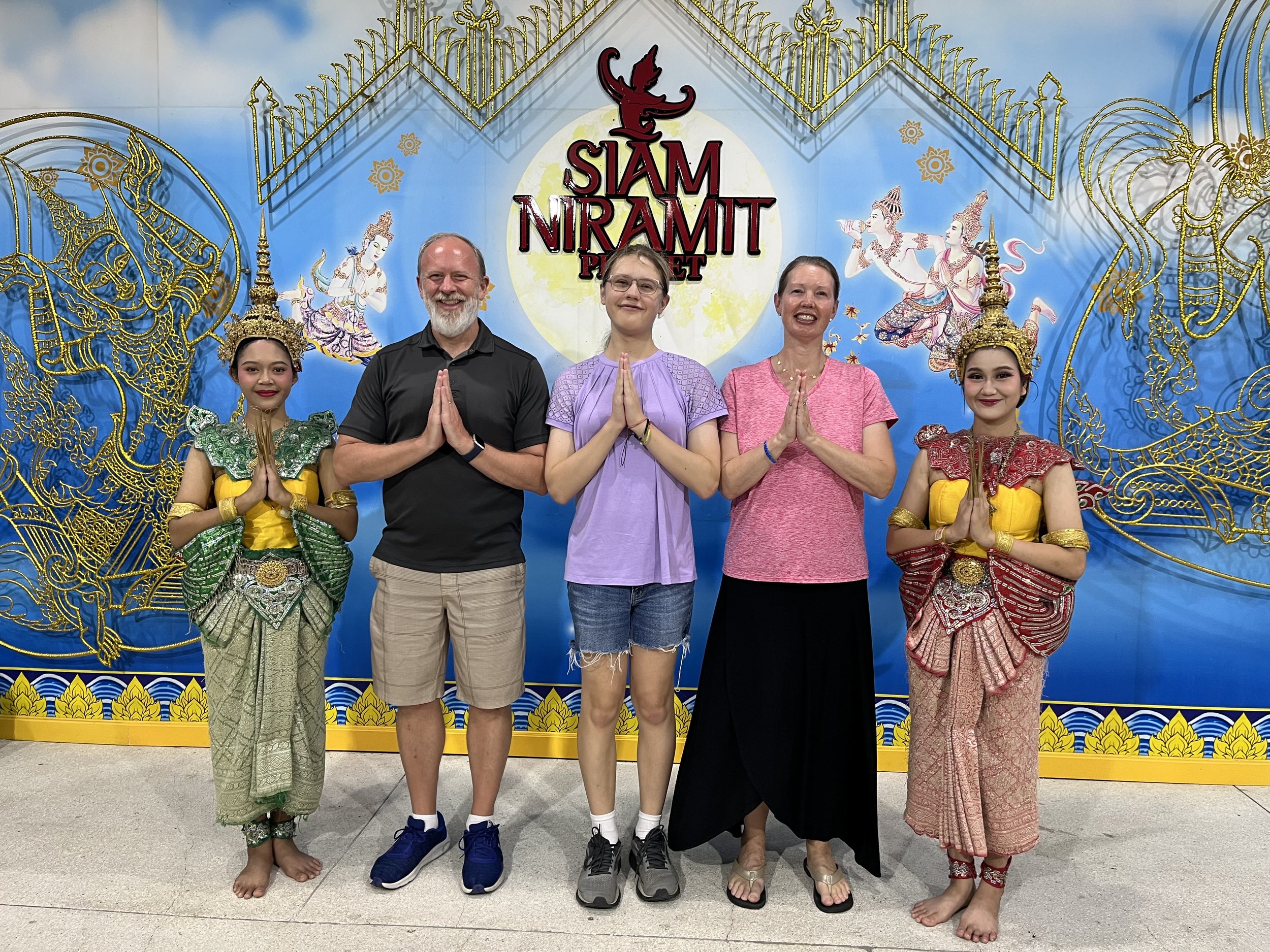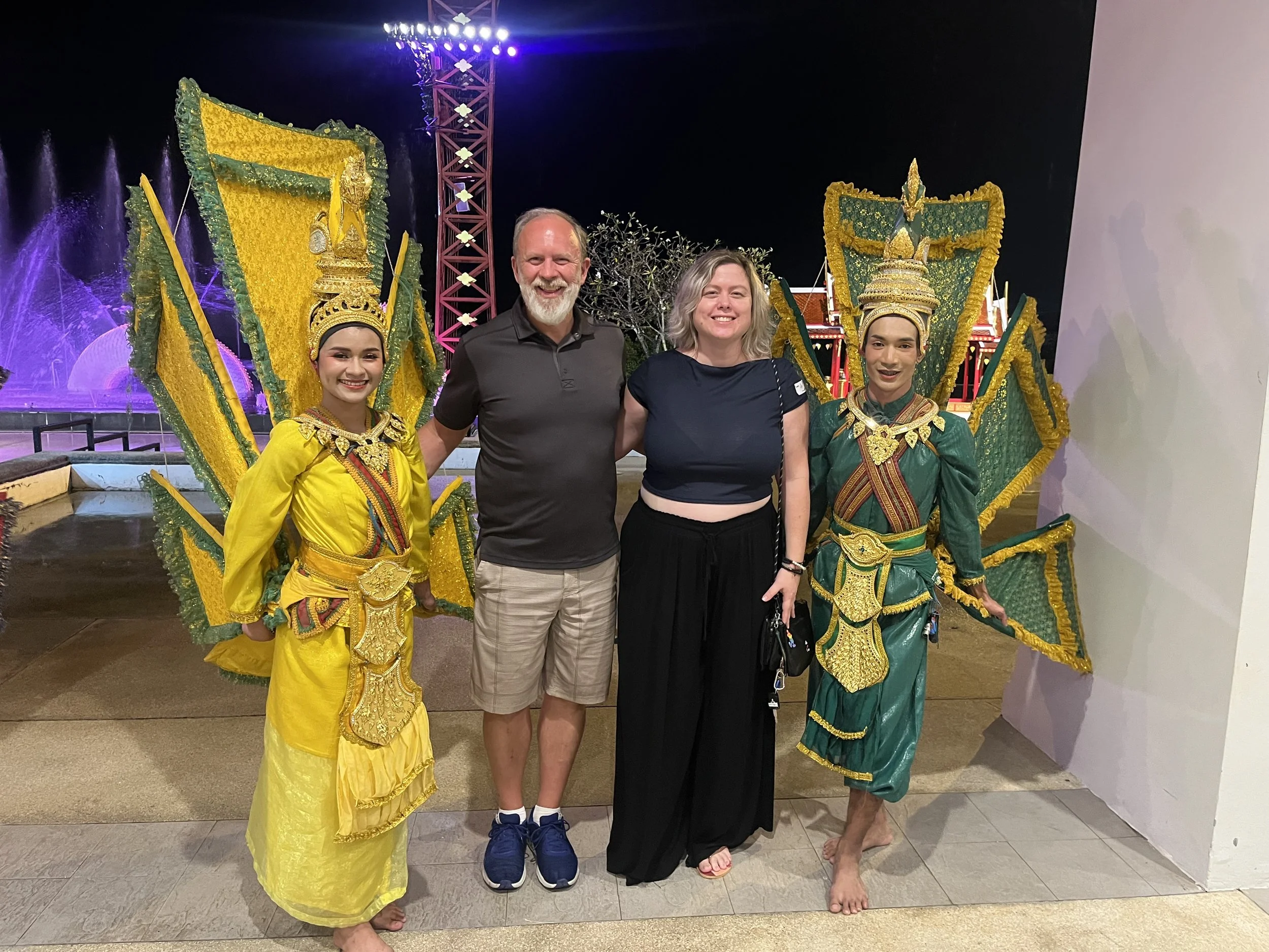 This is why we came to Phuket, Thailand: to see Claire Dilly (see earlier related post for context). SO WORTH IT! It was so great connecting with Claire in real life. And of all the places to spend time together, her recommendation was perfect! This evening we visited the renowned Siam Niramit in Phuket.