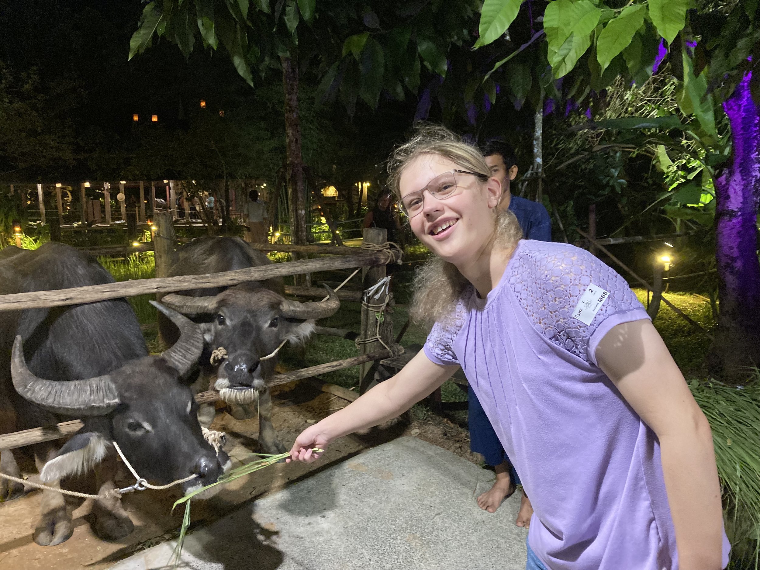 And of course, the same goes for feeding the elephant, bulls and goats. Of which Violet was able to participate in all of it, taking her turn at each of the spots set up.