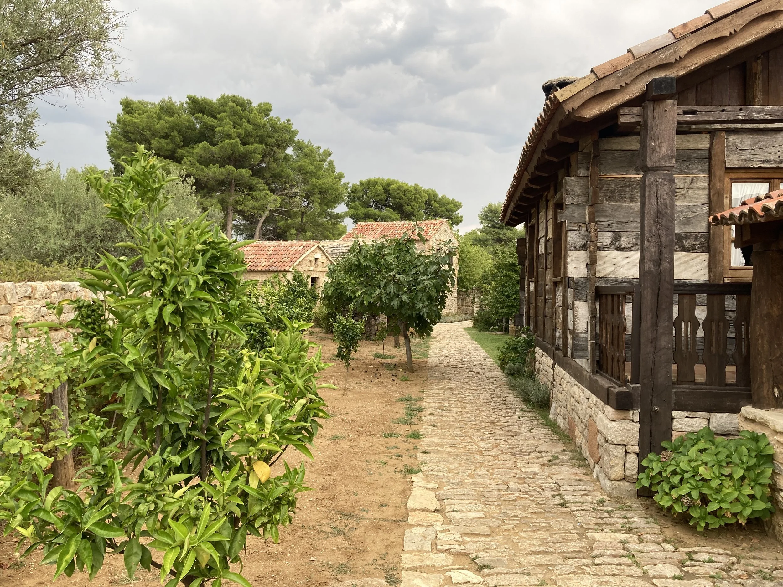 Not sure if you can tell, but the tables where you dine are either outside near a building or inside one of the smaller buildings themselves. It’s such a cute idea. I could see hosting events here where each space felt private and yet connected. It was as if Disney had created a themed Croatian restaurant. I also loved how integrated all the trees, fruit and vegetables were through the space.