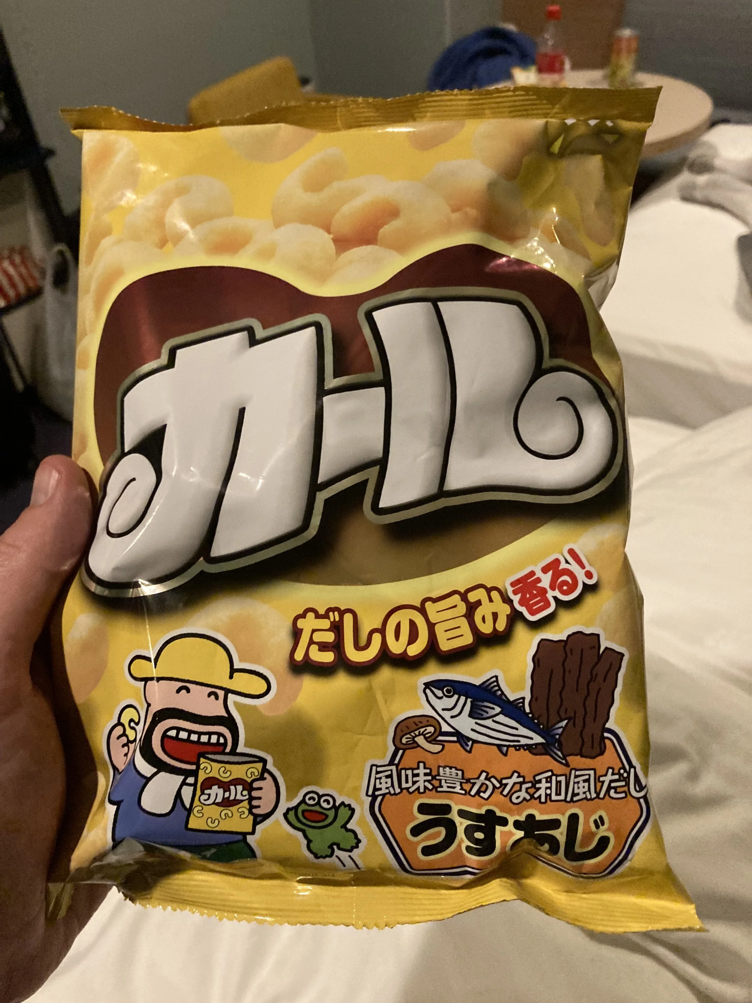 And finally, I did get the courage to try the fish-flavored puffs. No, they are not terrible and no, they are not as good as the cheese flavored variety. I wouldn’t buy them again knowing that there is a perfectly good cheese-flavored option, but if you were looking for a fish flavor (or just wanted a more salty snack vs. savory), this works. I know “not terrible” isn’t a rave review, but it was higher than my very low expectations. I just wanted to try something outside my comfort zone. Still not ready to trust my colon to cooked fish from a vending machine, but somehow a fish flavored processed food was “okay.” So far, no side effects. I’ll keep monitoring the situation. Especially since tomorrow is Halloween. Yay!