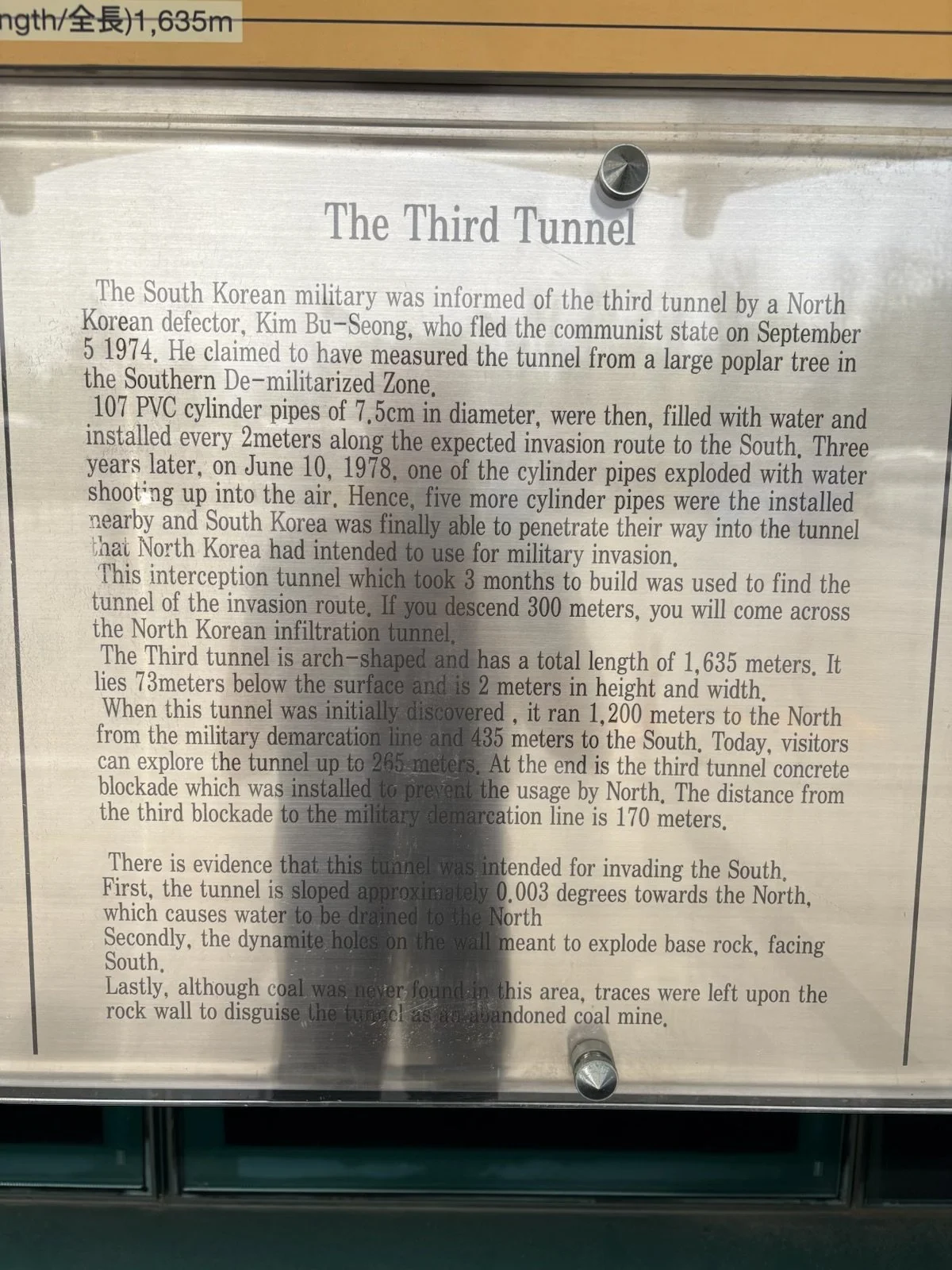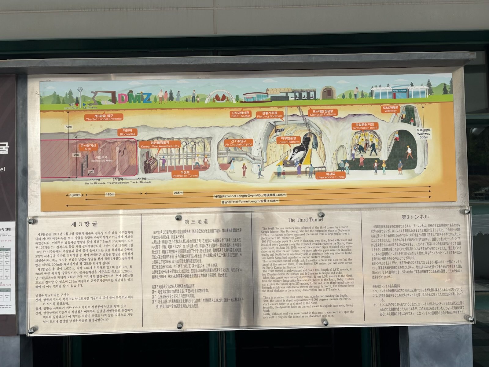 The 3rd tunnel discovered that was dug by North Koreans and got so close to South Korea, that the South Koreans turned it into a tourist spot where you can walk all the way to the underground demarkation line of the DMZ and gaze onto North Korea.