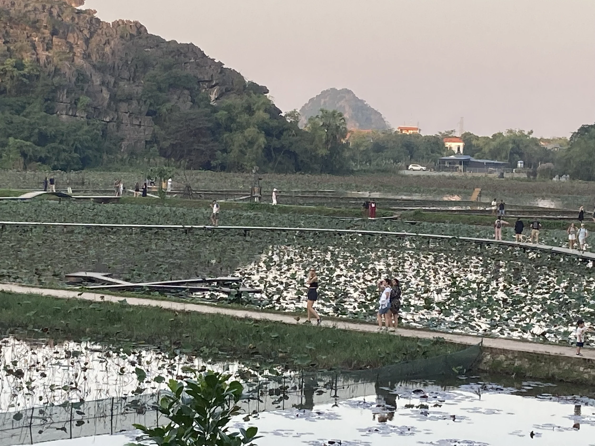 But the first event was the boat. It was spectacular. The views were breathtaking — everywhere you looked. From the mountains in the distance to the blooming lotuses in the water. Even the grave stones were magnificent to look upon.