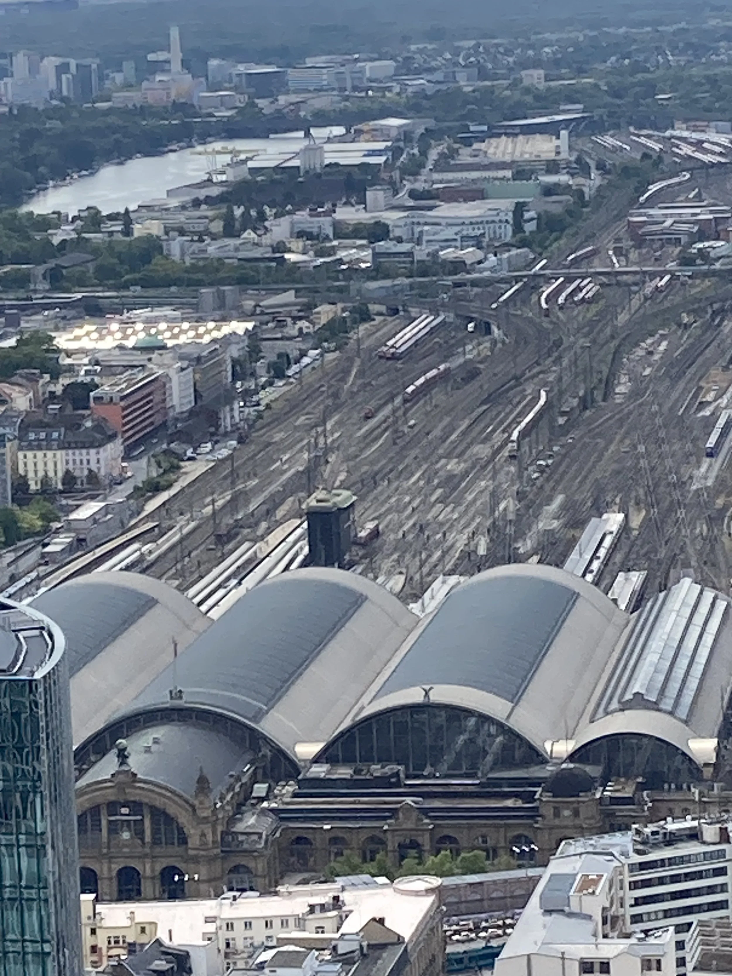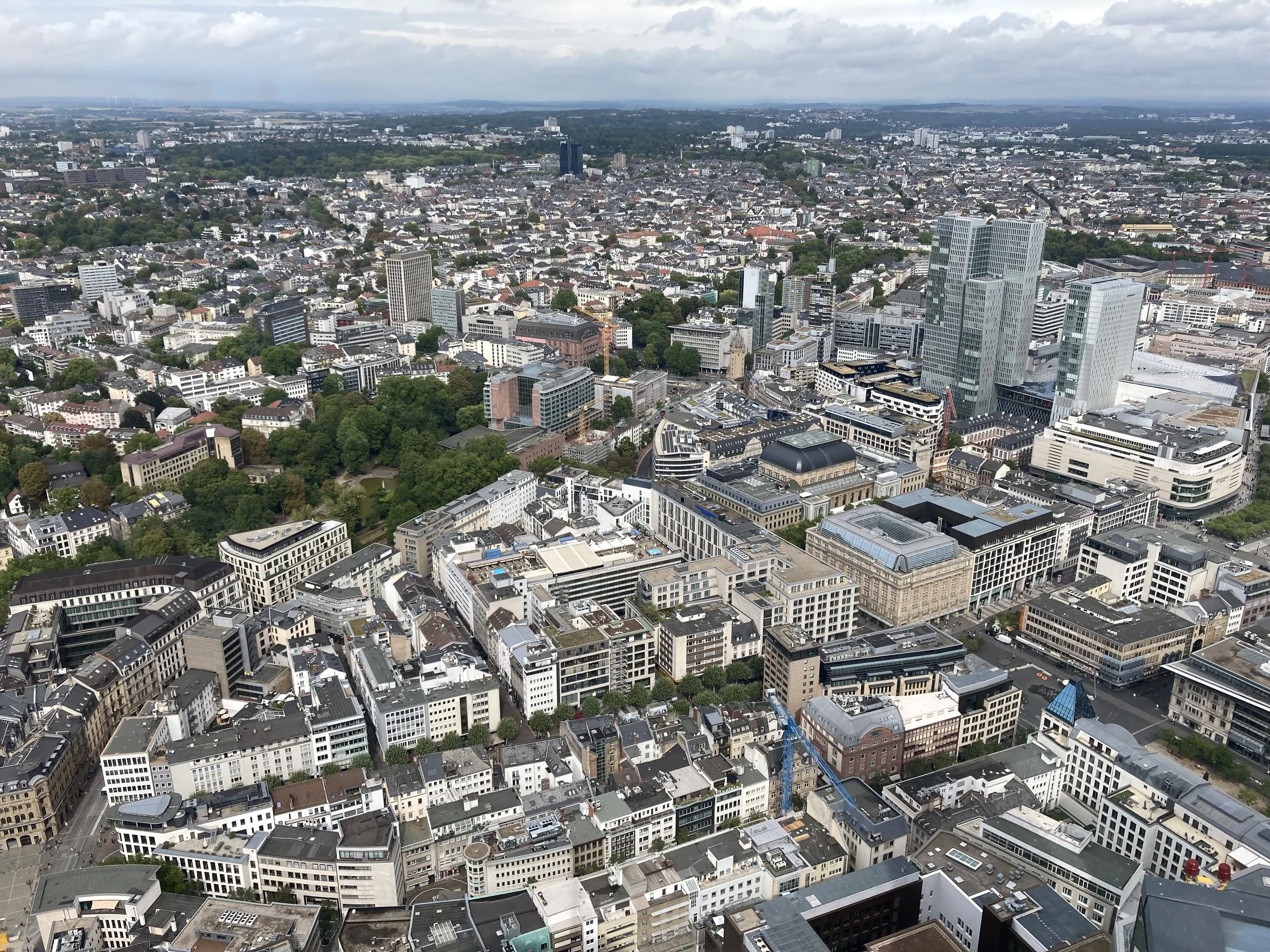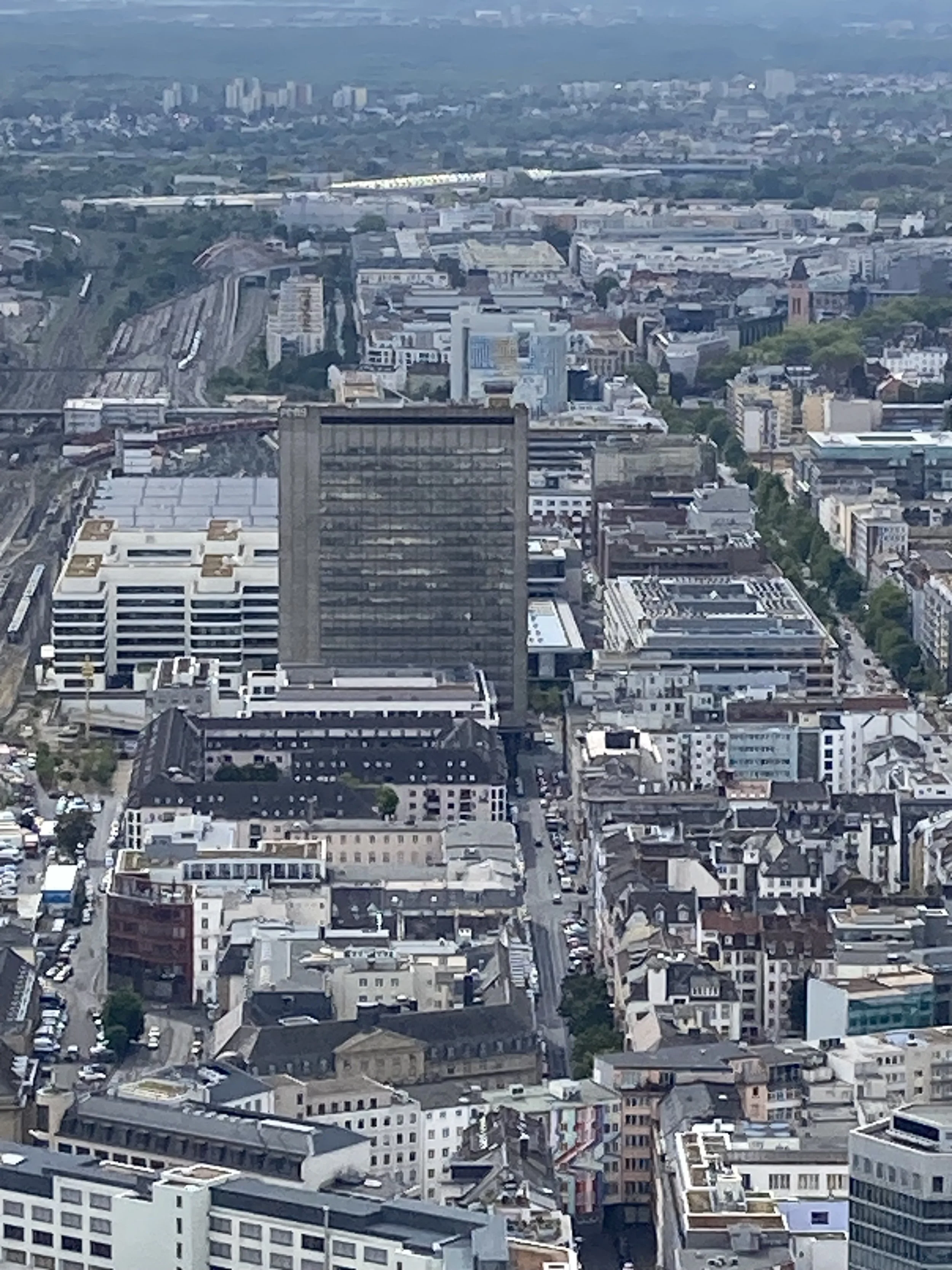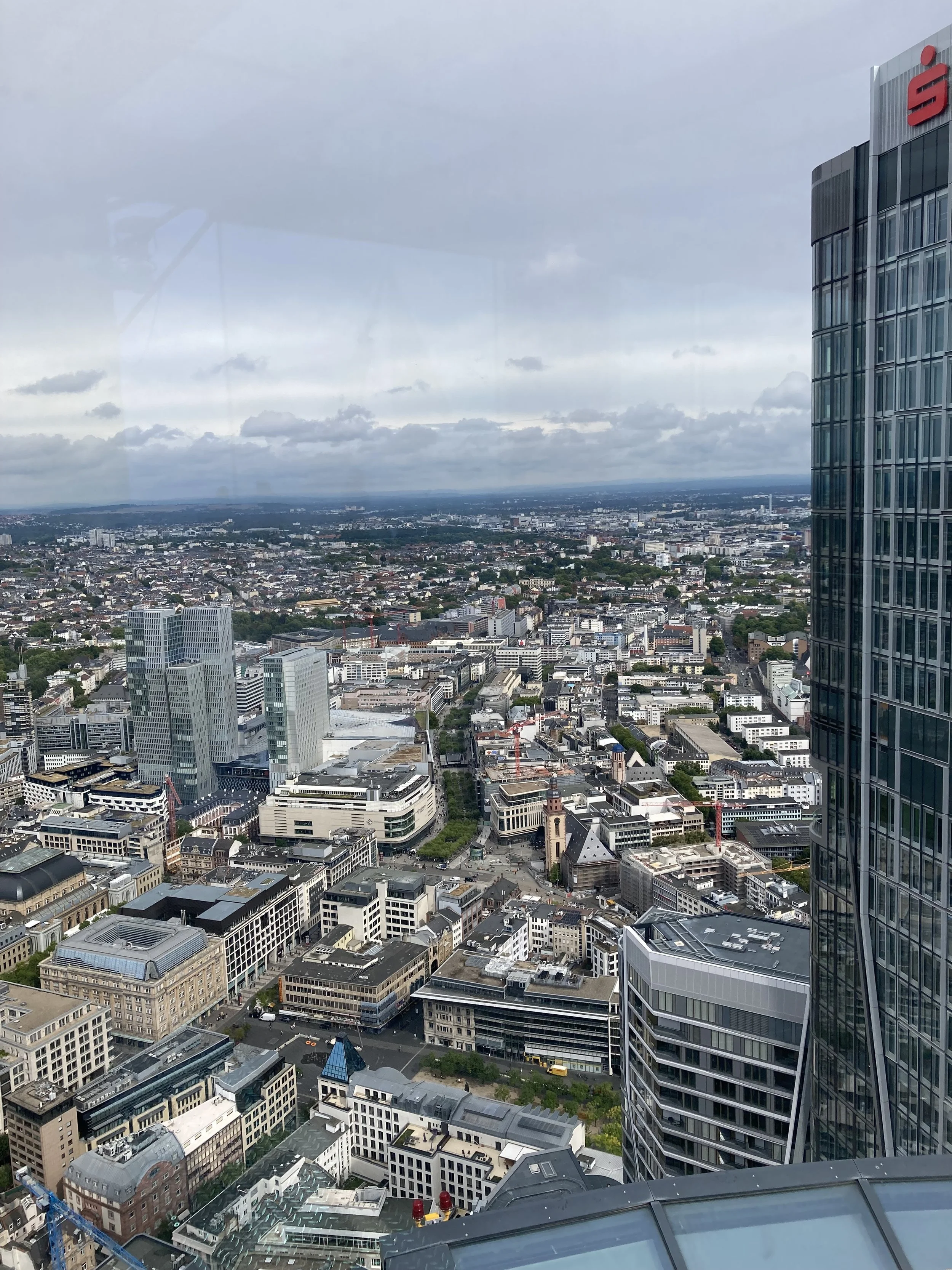 And what a view from the top. We went up 54 floors to the top of the Main Tower in Frankfurt and got the full 360 degree look at the city from one of the highest points. From every vantage point, you could see for miles … all the way to the nearby hills or mountains.