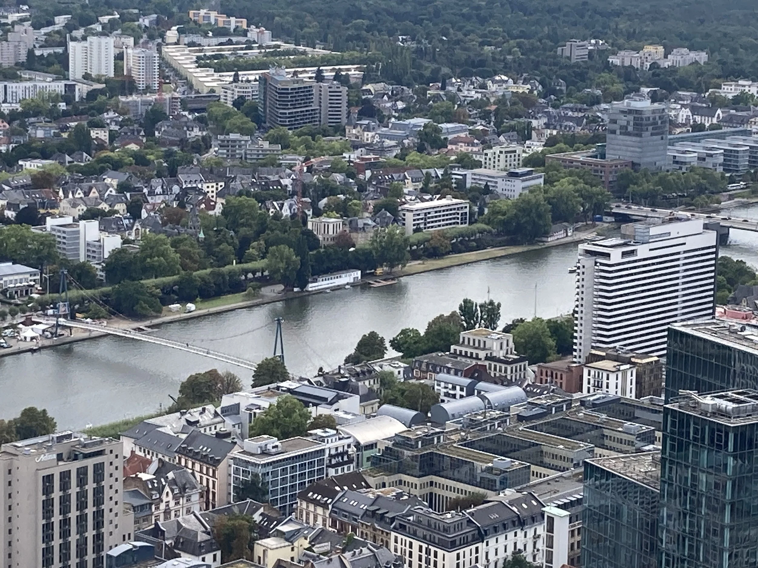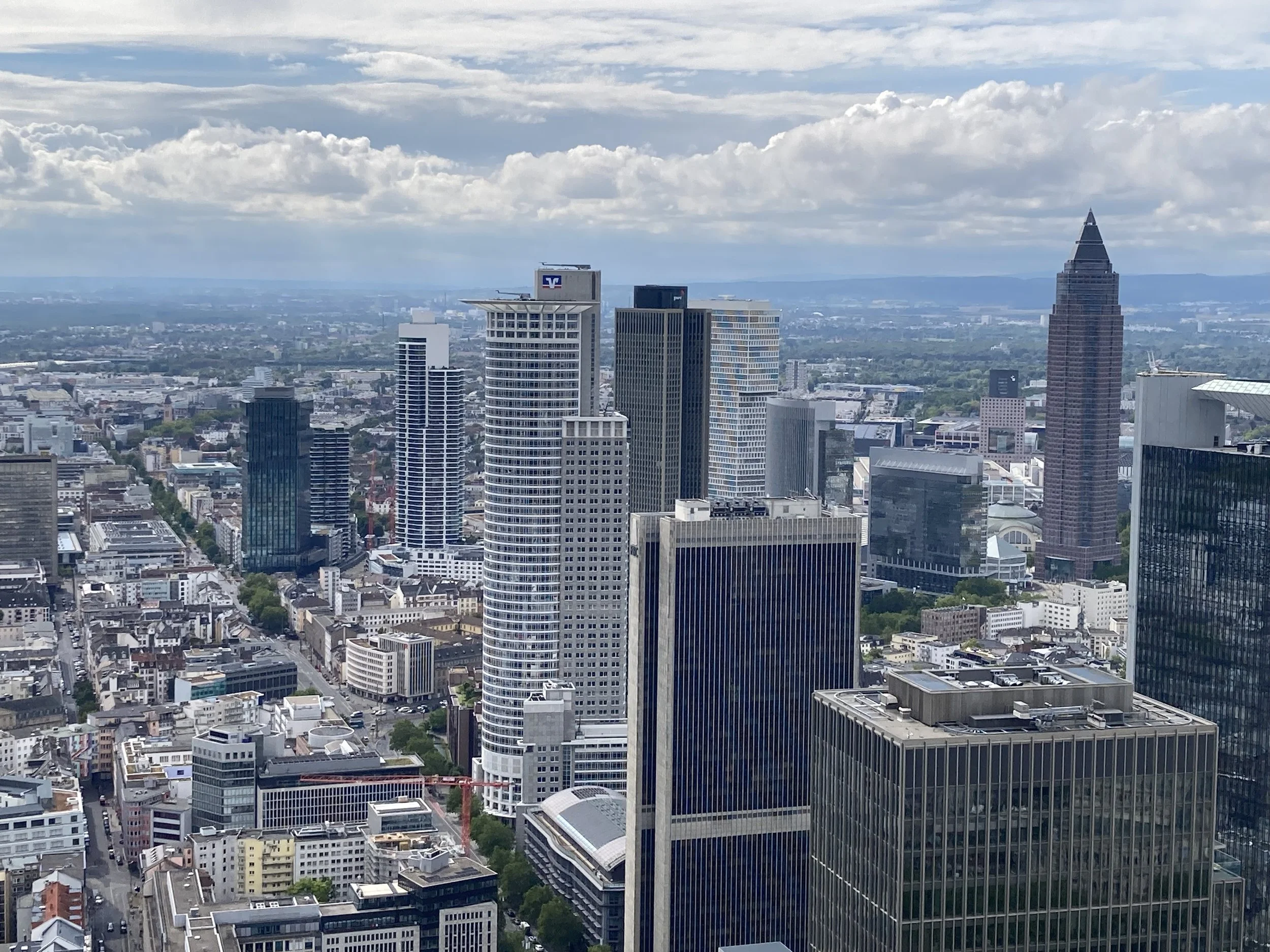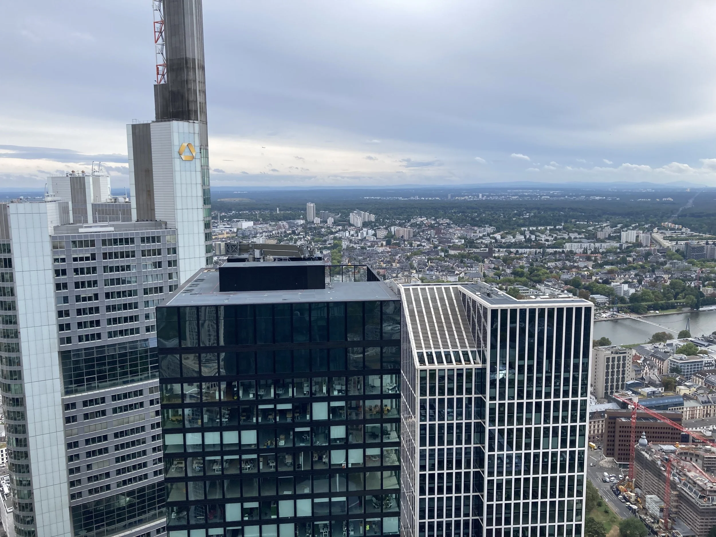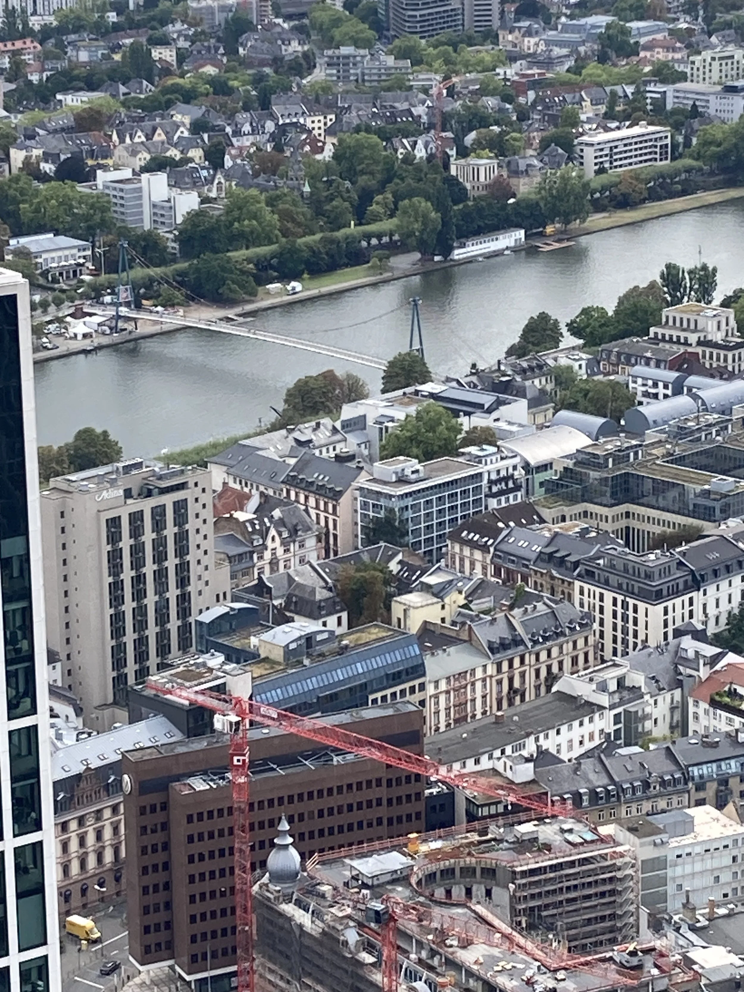 And what a view from the top. We went up 54 floors to the top of the Main Tower in Frankfurt and got the full 360 degree look at the city from one of the highest points. From every vantage point, you could see for miles … all the way to the nearby hills or mountains.