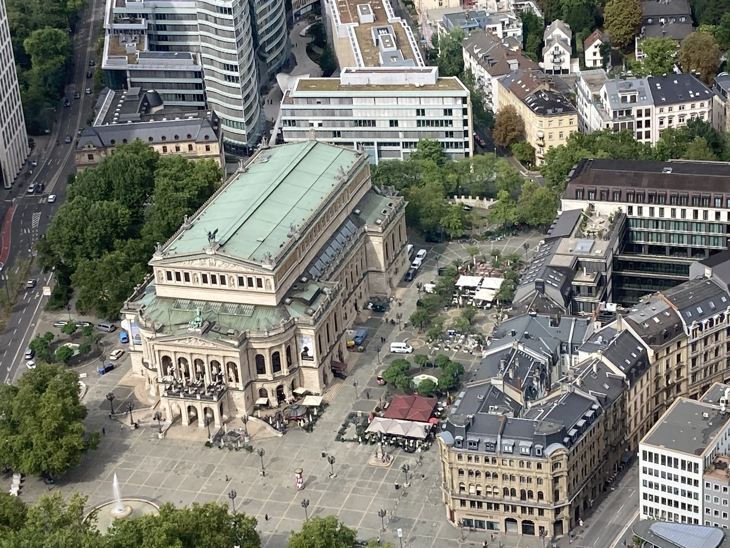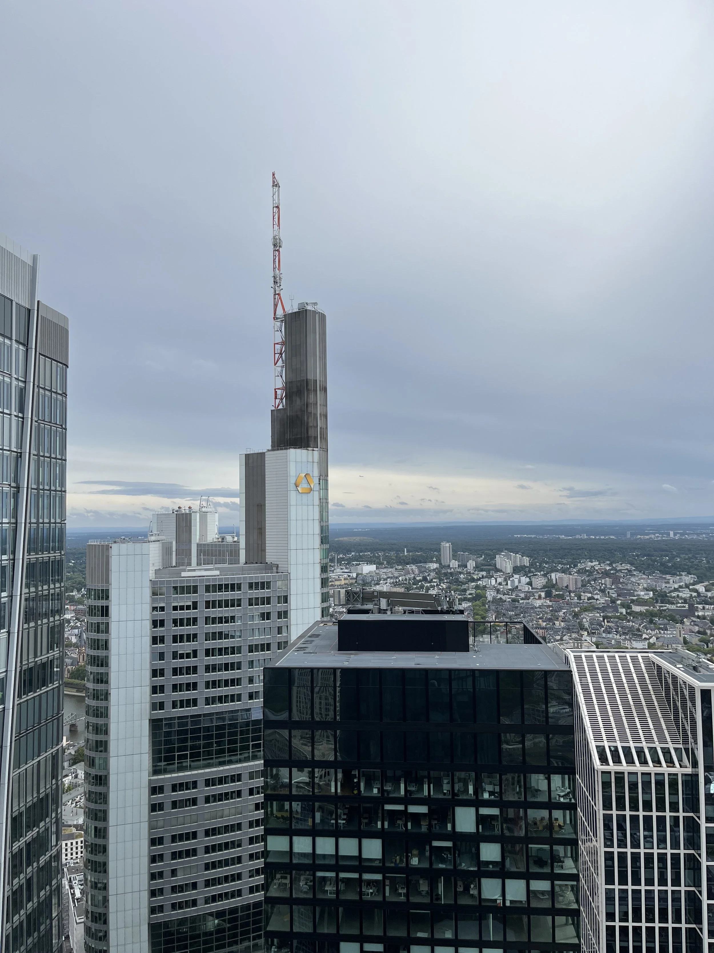 Main Tower view of the top of Frankfurt, Germany with Iv and Ramune