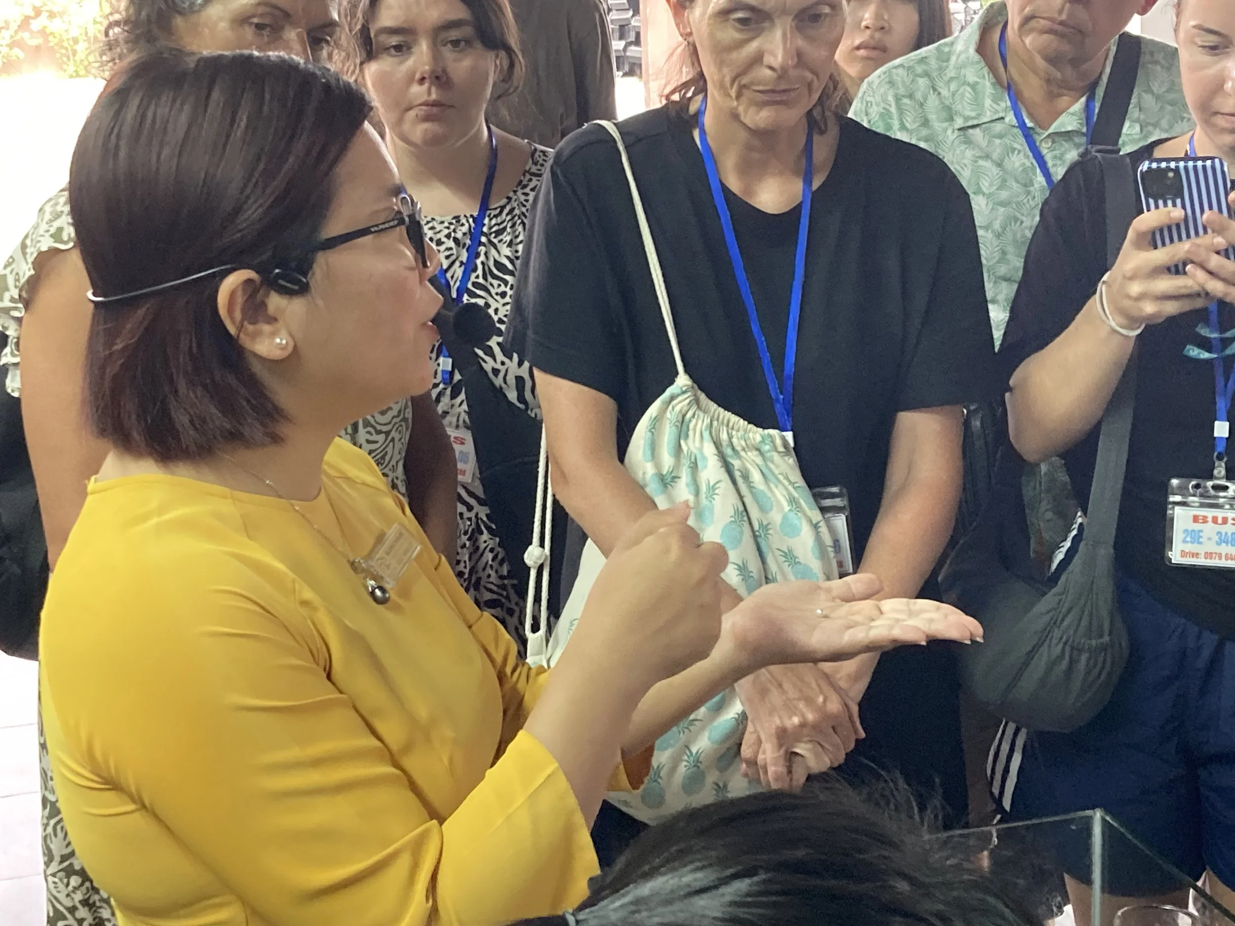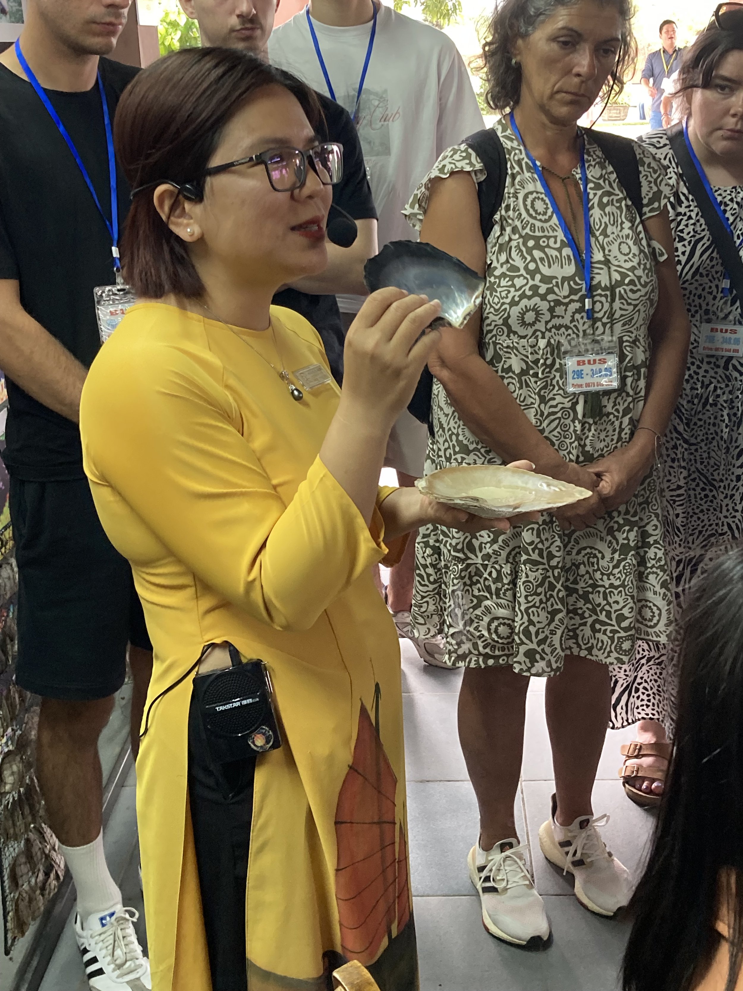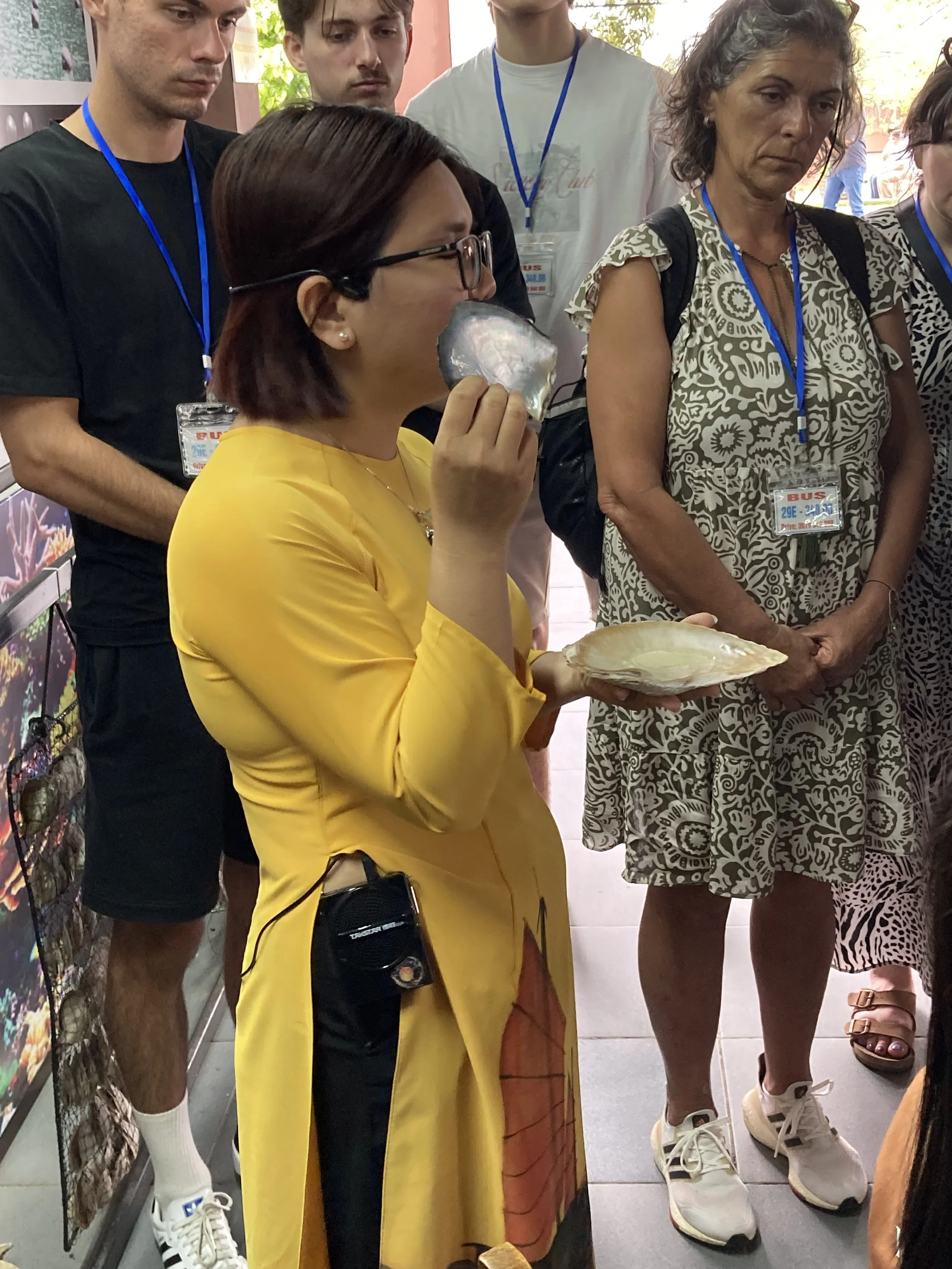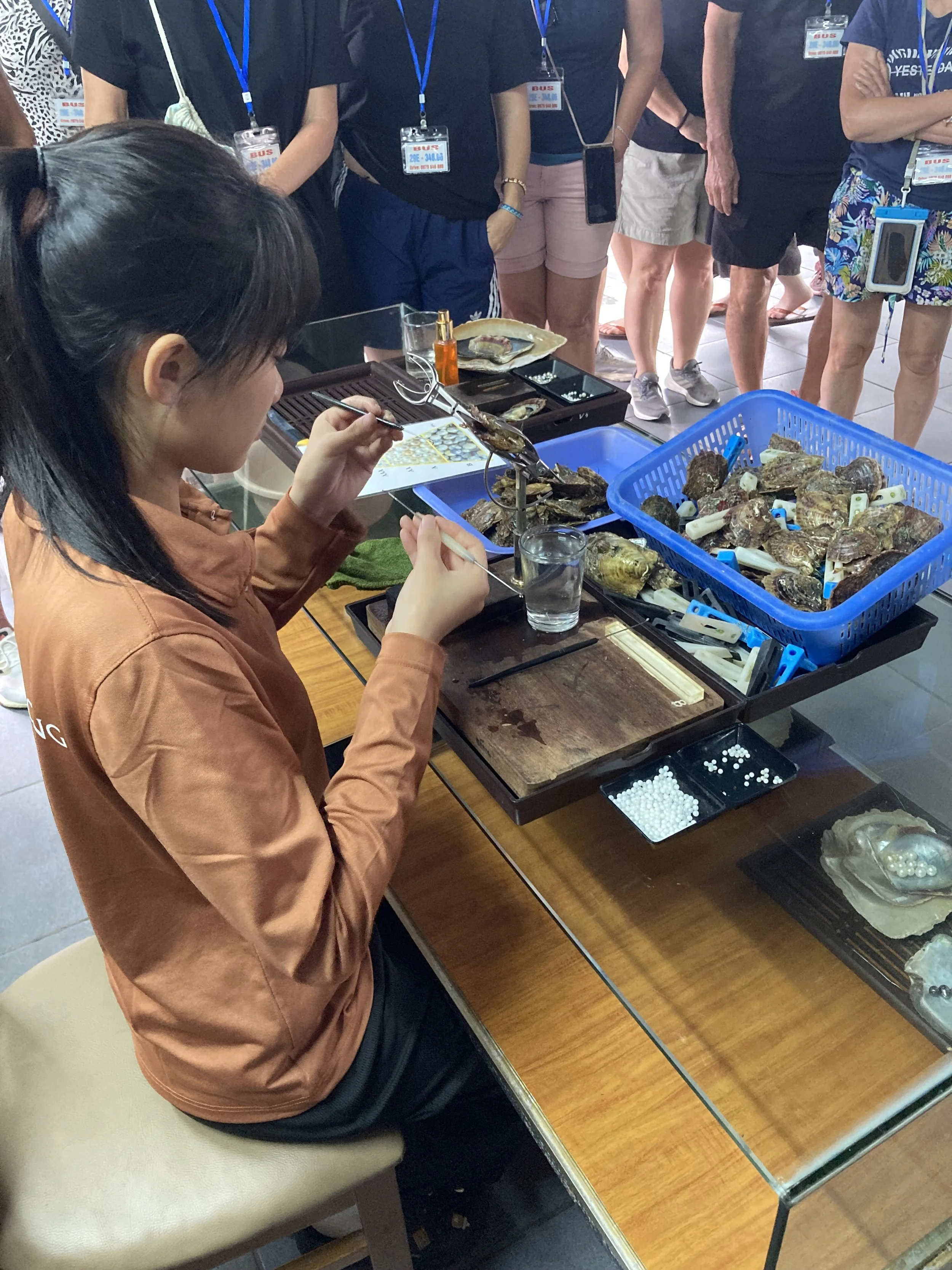 Demonstrating how pearls are formed locally in Ha Long Bay