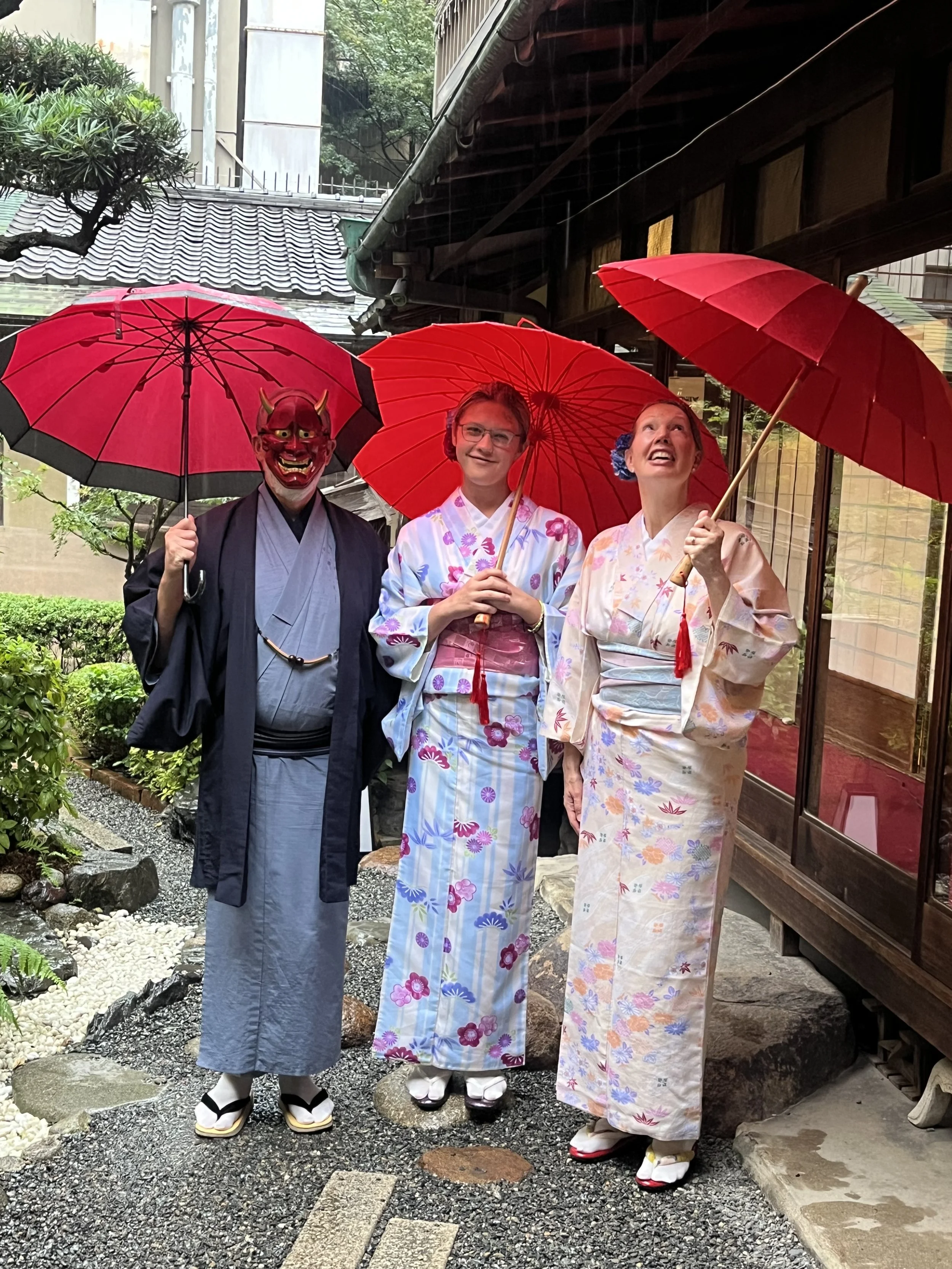 I know we didn’t have “professional” photographers, but we sure did take a to of pictures dressed in these kimonos. Each of us picked out our favorites from the ones we were able to choose from. As a bonus, both Elena and Violet had their hair put up by the costume professionals helping all of us get “ready” for the tea ceremony. I love how it all turned out. A fabulous experience all around.