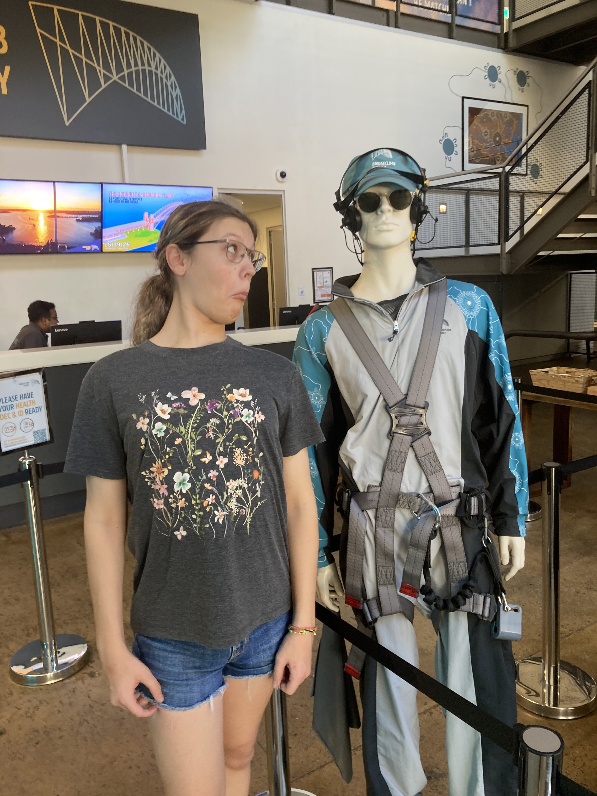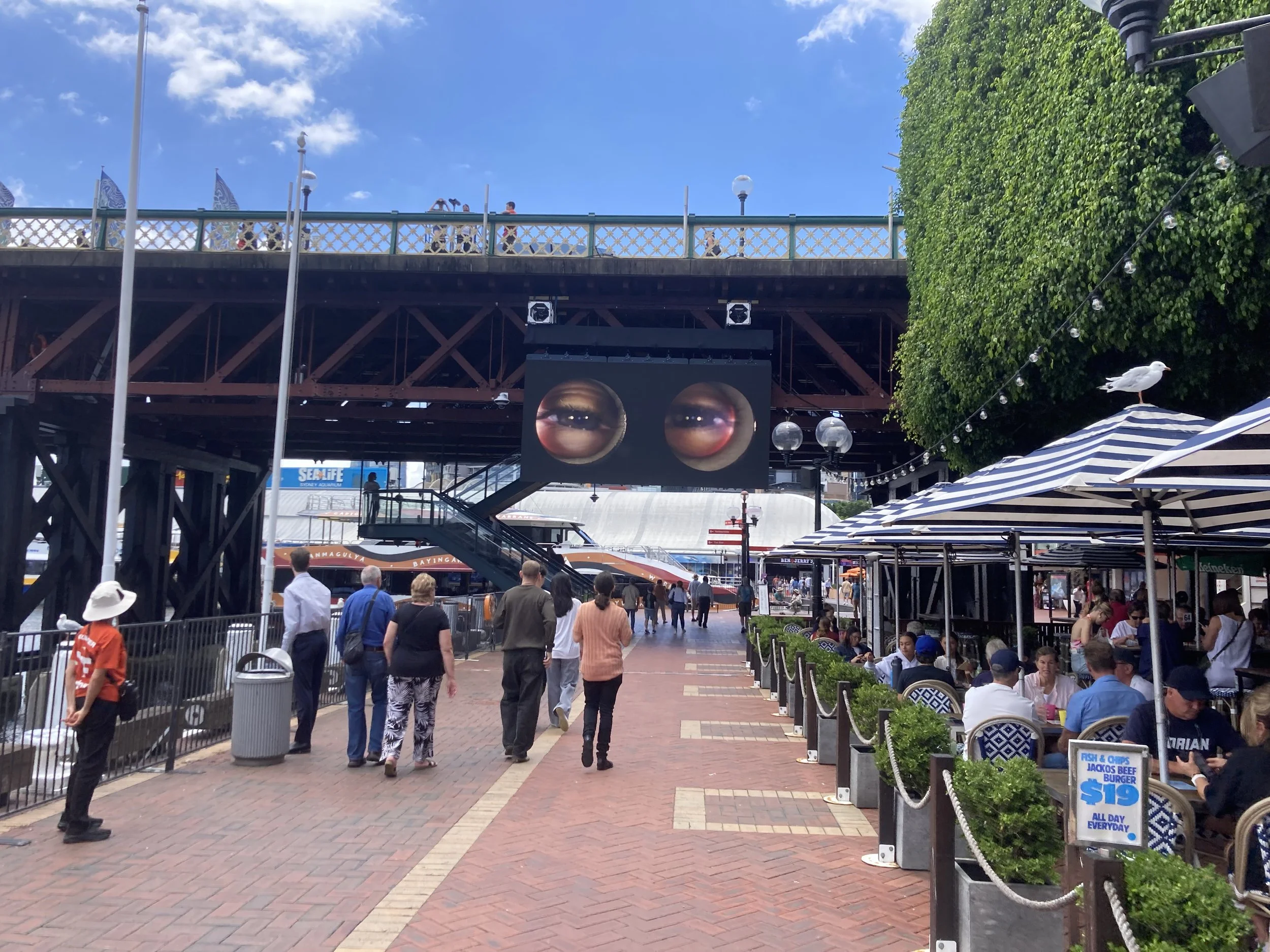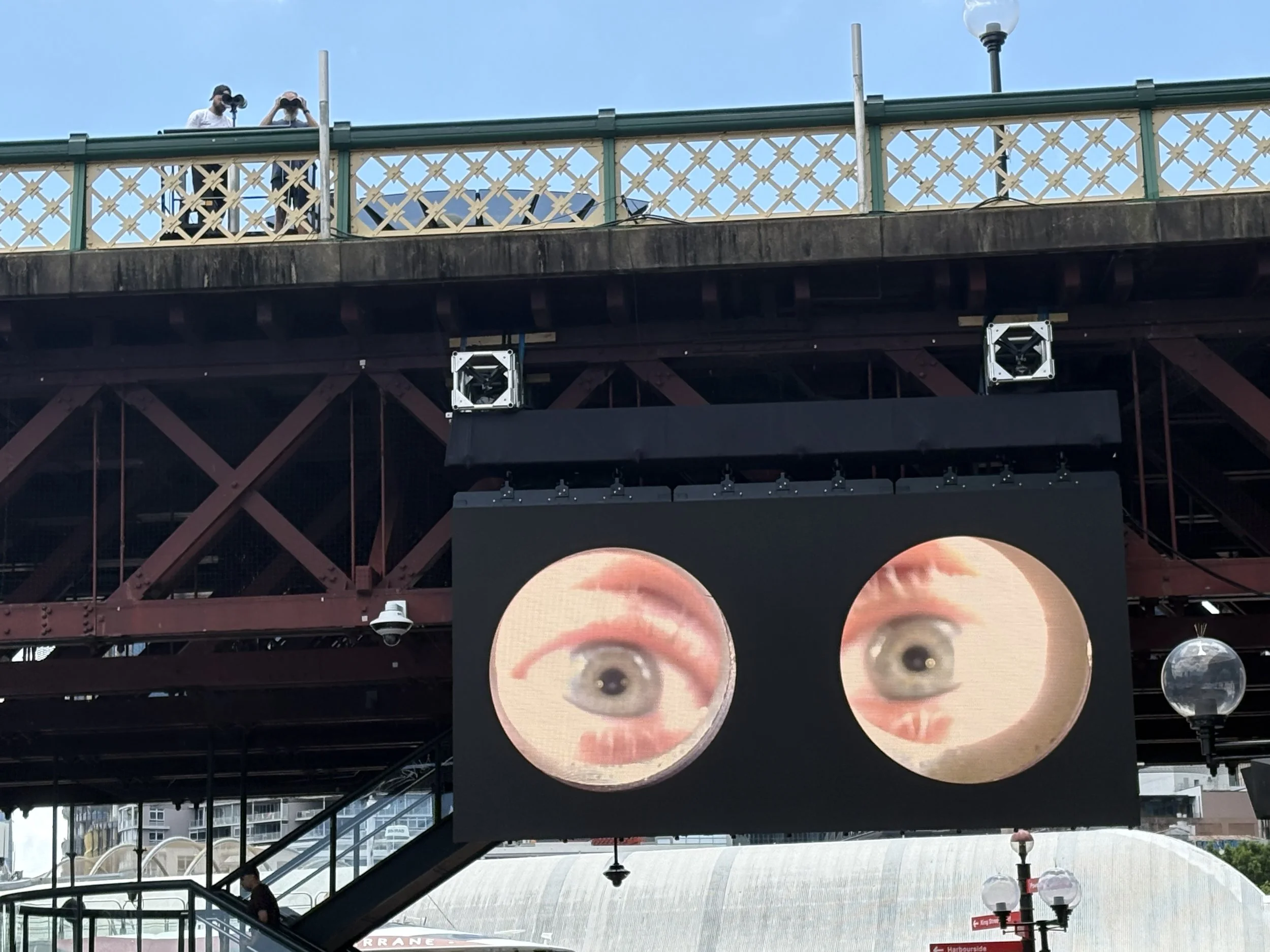 So, we head back to our hotel so that she can drop her stuff off and, now that I know she has energy, we book ourselves for the next available group at the Sydney Harbor Bridge Summit. But we have time before we go there, so I show her this really fun exhibit I referenced when I first got here two days ago as part of the Sydney Festival.