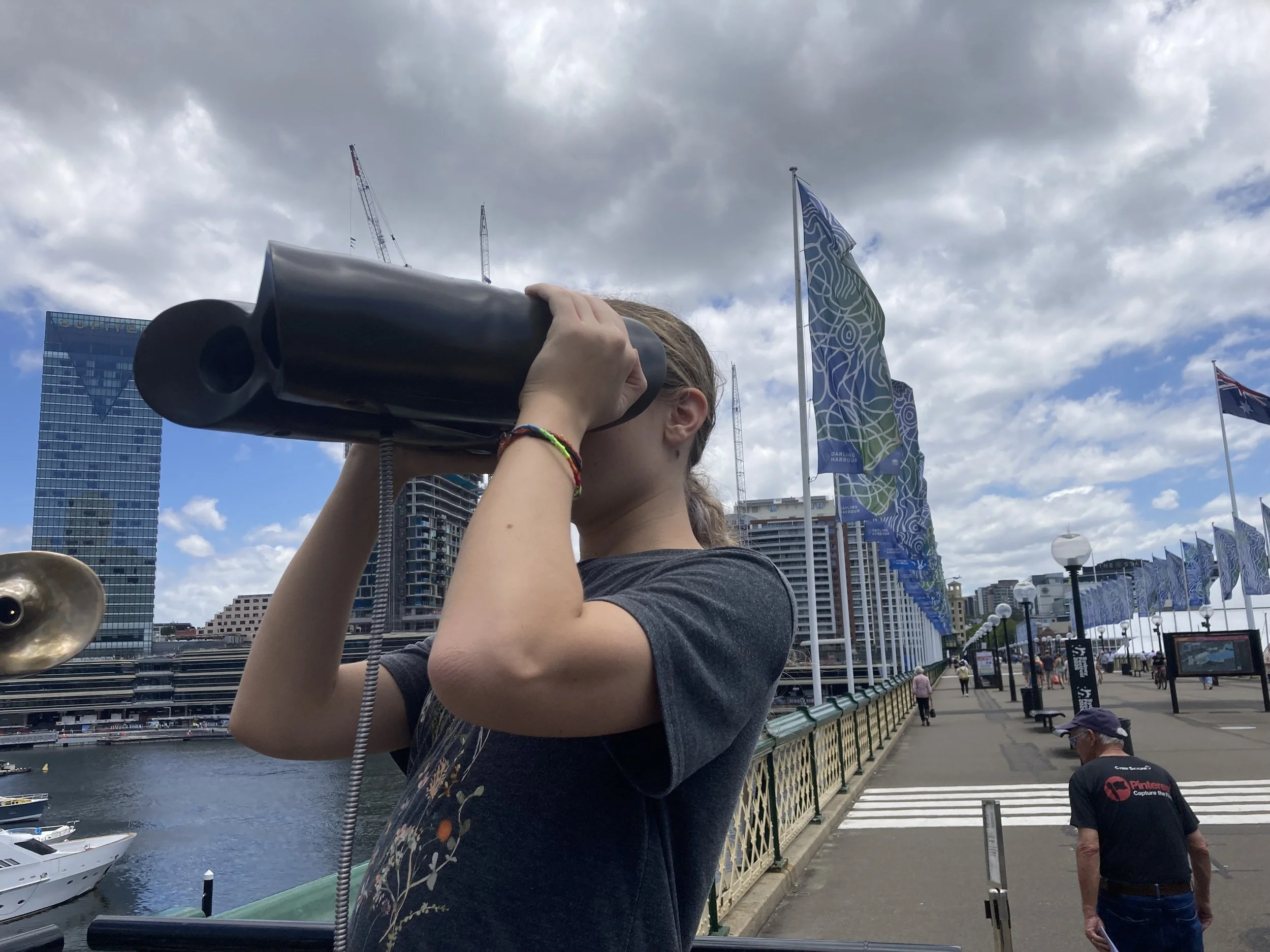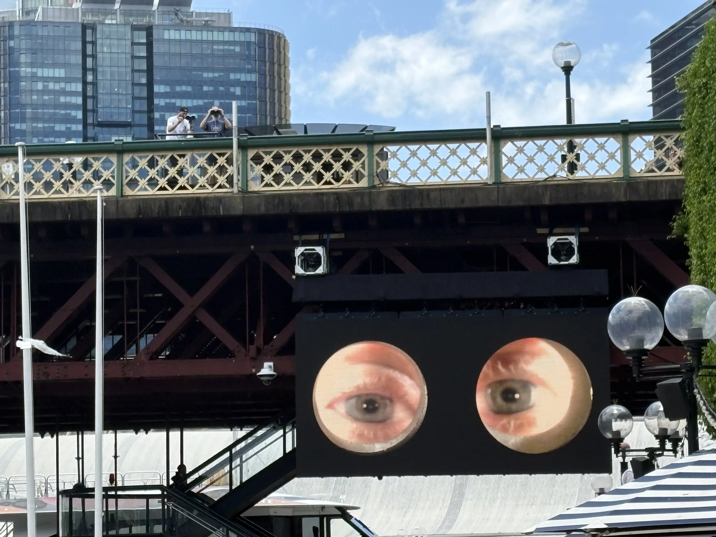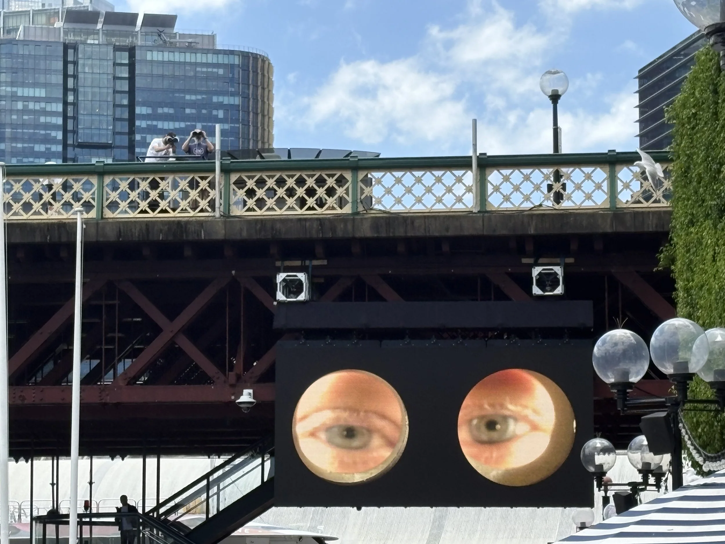So, we head back to our hotel so that she can drop her stuff off and, now that I know she has energy, we book ourselves for the next available group at the Sydney Harbor Bridge Summit. But we have time before we go there, so I show her this really fun exhibit I referenced when I first got here two days ago as part of the Sydney Festival.