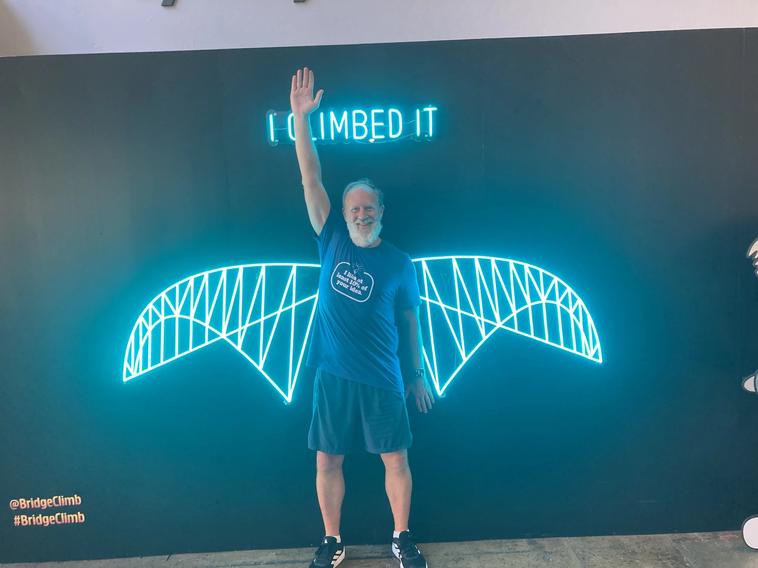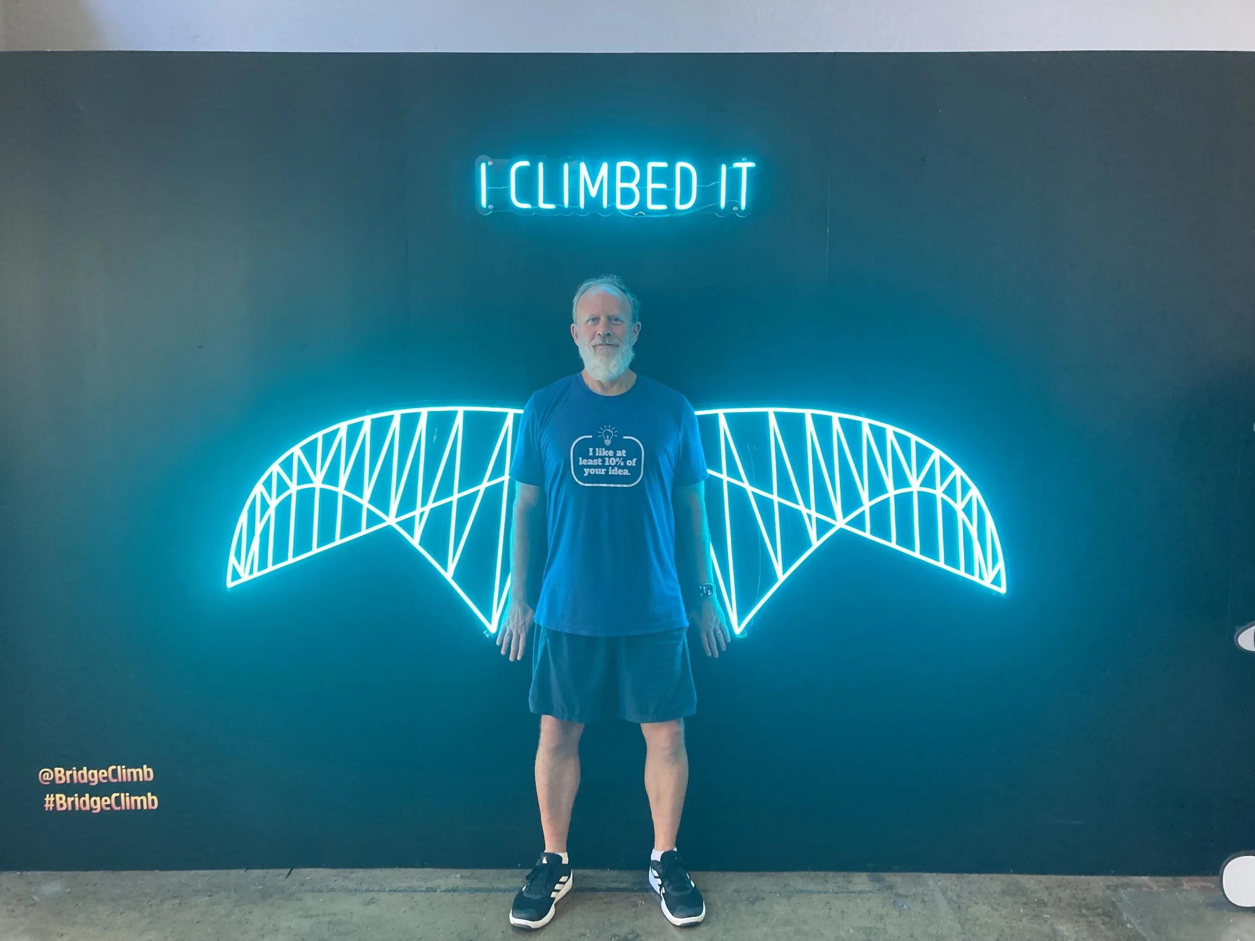 We got there an hour early and what we didn’t realize is that getting there early is part of the fun! We found that they had installed a free arcade center including free Super Mario Cart (“versus”) full arcade style game, air hockey, foosball, corn hole, and a HUGE connect 4 among several other games. We loved this and needed to set an alarm so we didn’t miss our slotted time to hike the bridge. There were also plenty of “selfie spots” throughout and even a celebrity wall of all the movie stars and famous people who have summited the bridge.