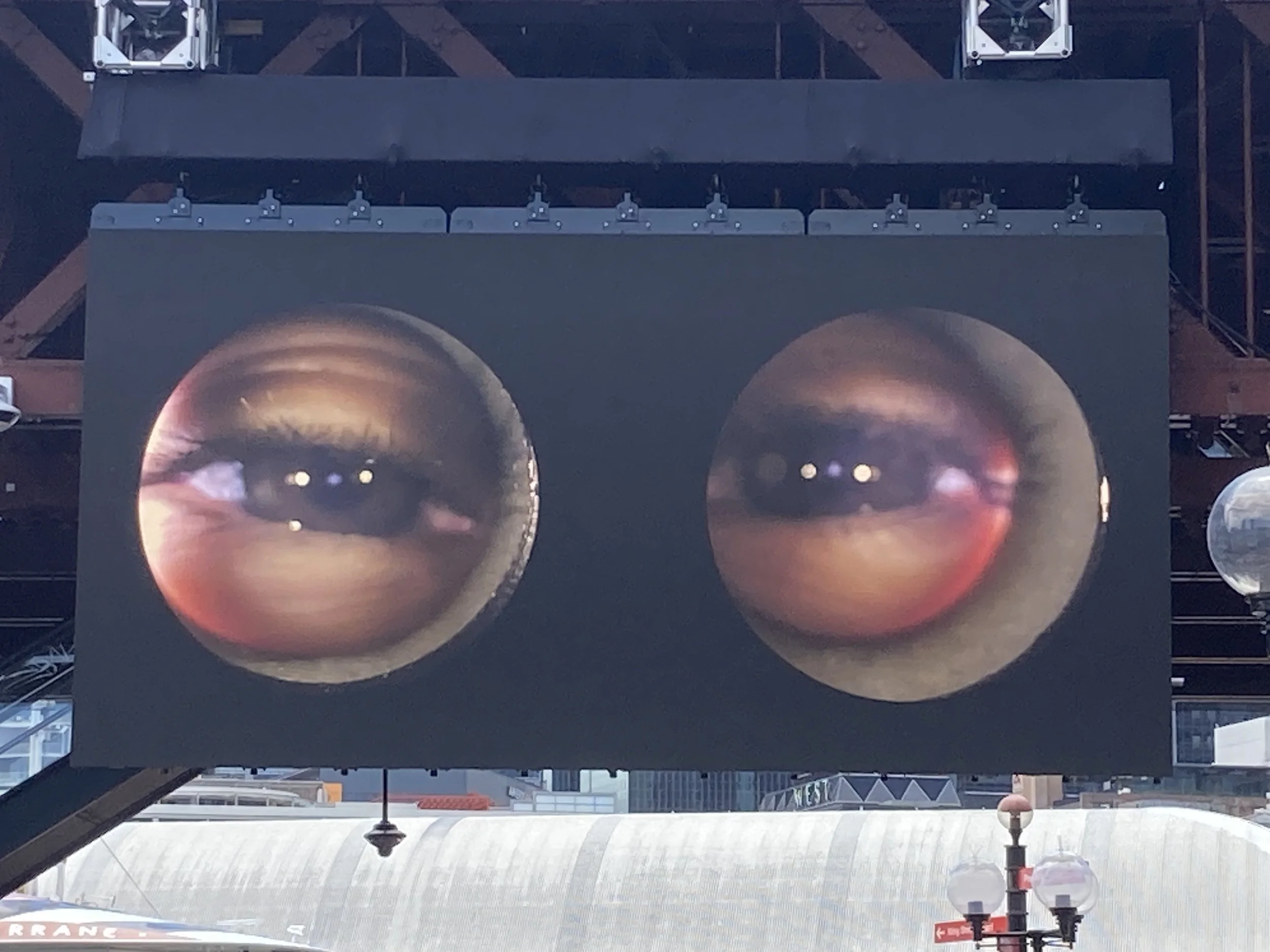 This exhibit is called, “Observe while being observed” and I love it. As you look at others down below, they are seeing an EYE-MAX version of your eyes looking at them, like so:
