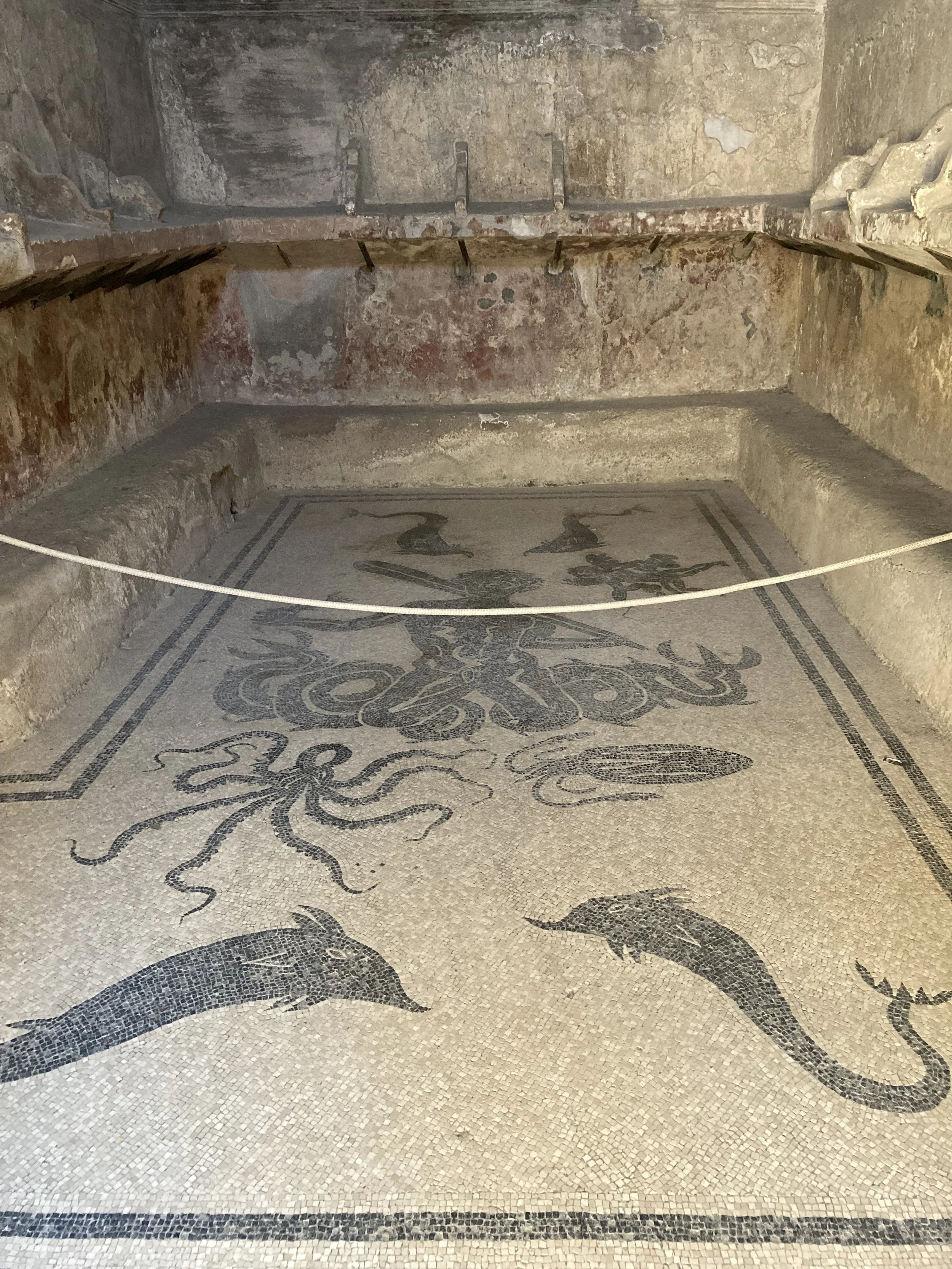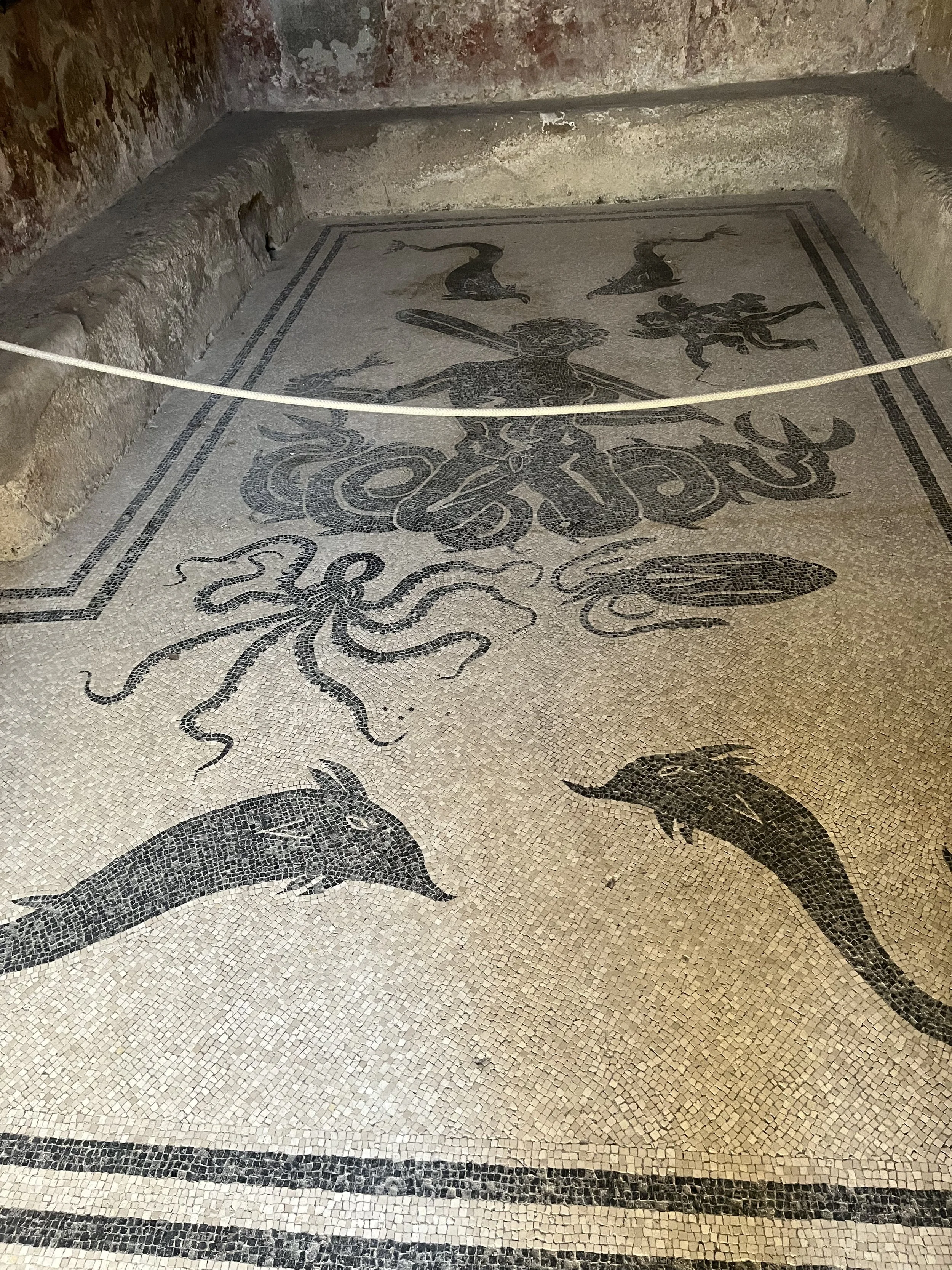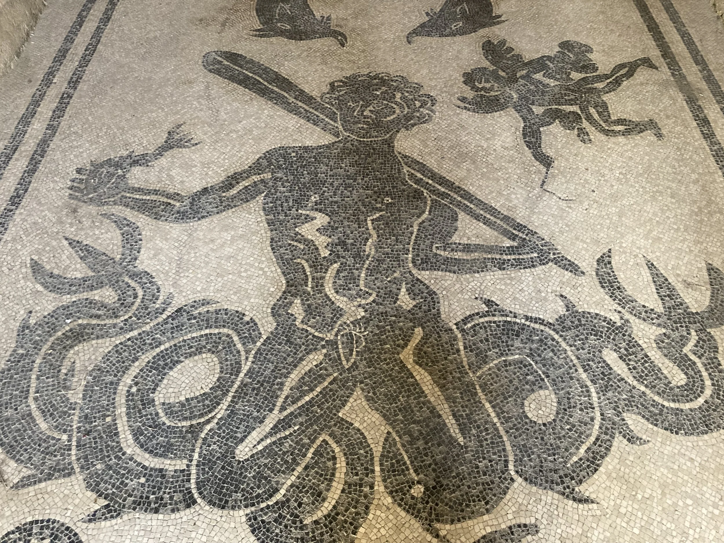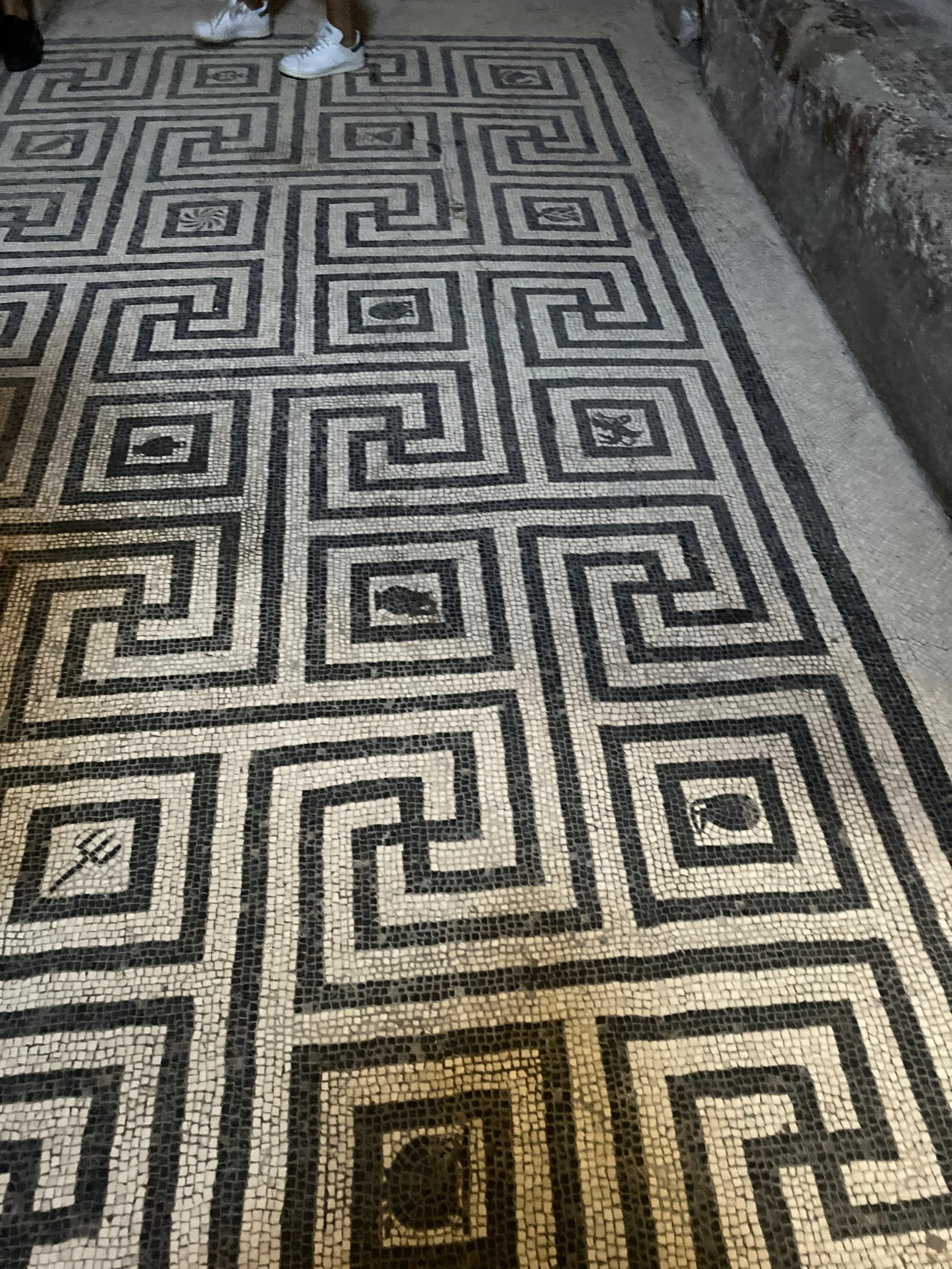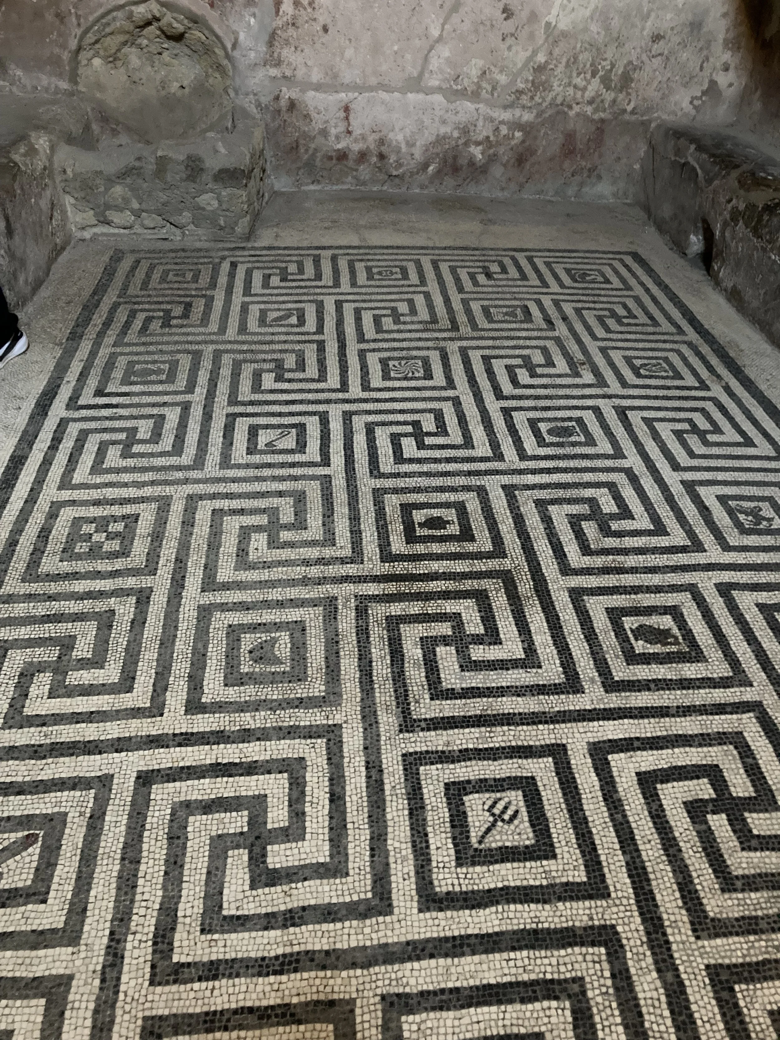 I’m still blown away by the mosaic floor artwork that seemed to live in just about every home we visited. Sure, most of these homes were for the rich living in this area, but still. The fine attention to detail was (and is) astonishing. So much care into these intricate patterns and so much visual storytelling with floor tiles.