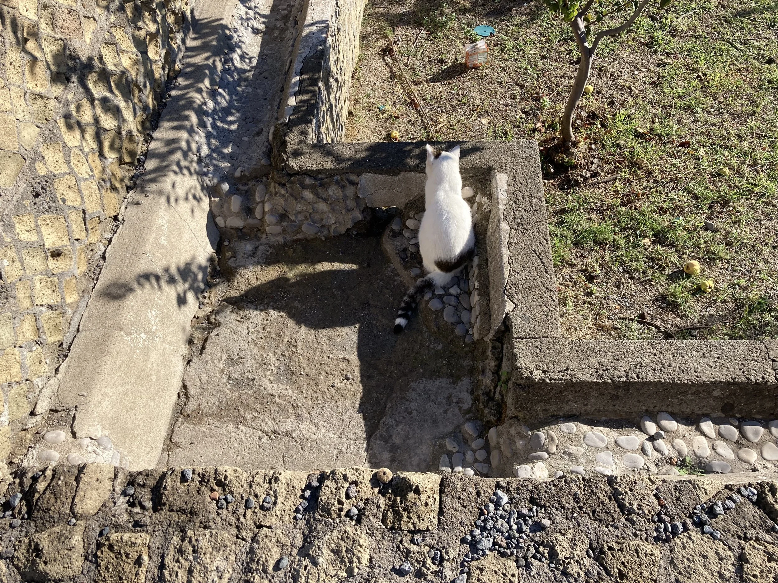 And of course, kitties. We saw lots of cats roaming free throughout Herculaneum. This adds to the adventure as these cats are friendly and enjoy being pet (for the most part). They’ll let you know if they are “done” or no longer wish to have your affection. That starts by them moving away from you and then a gentle (no claw) warning pat. If you don’t get the hint after that, it’s on you, buddy.